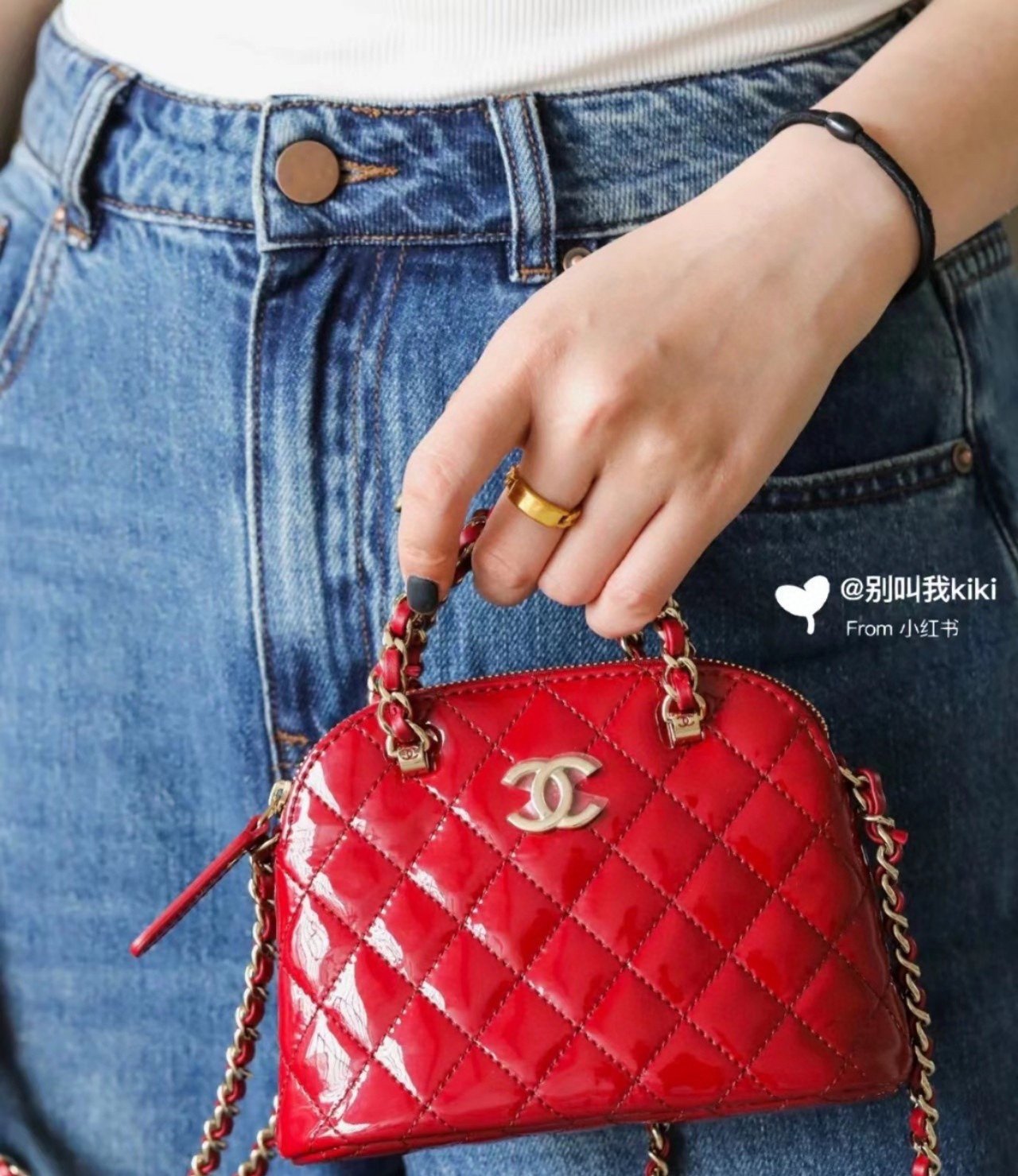 This season’s very eye-catching and lovely king fried small shell, the body is made of shiny patent leather, which is just right, practical and beautiful, unique charm ~ both fashionable and exquisite. Although you can’t fit your phone, but the capacity is still very, there is a card layer in the inner bag, and the leather chain is also very comfortable to carry. If you haven’t bought it, please quickly arrange it. [Smart] Size: Small 11 *16*5.5cm large size 20.5*28*7cm