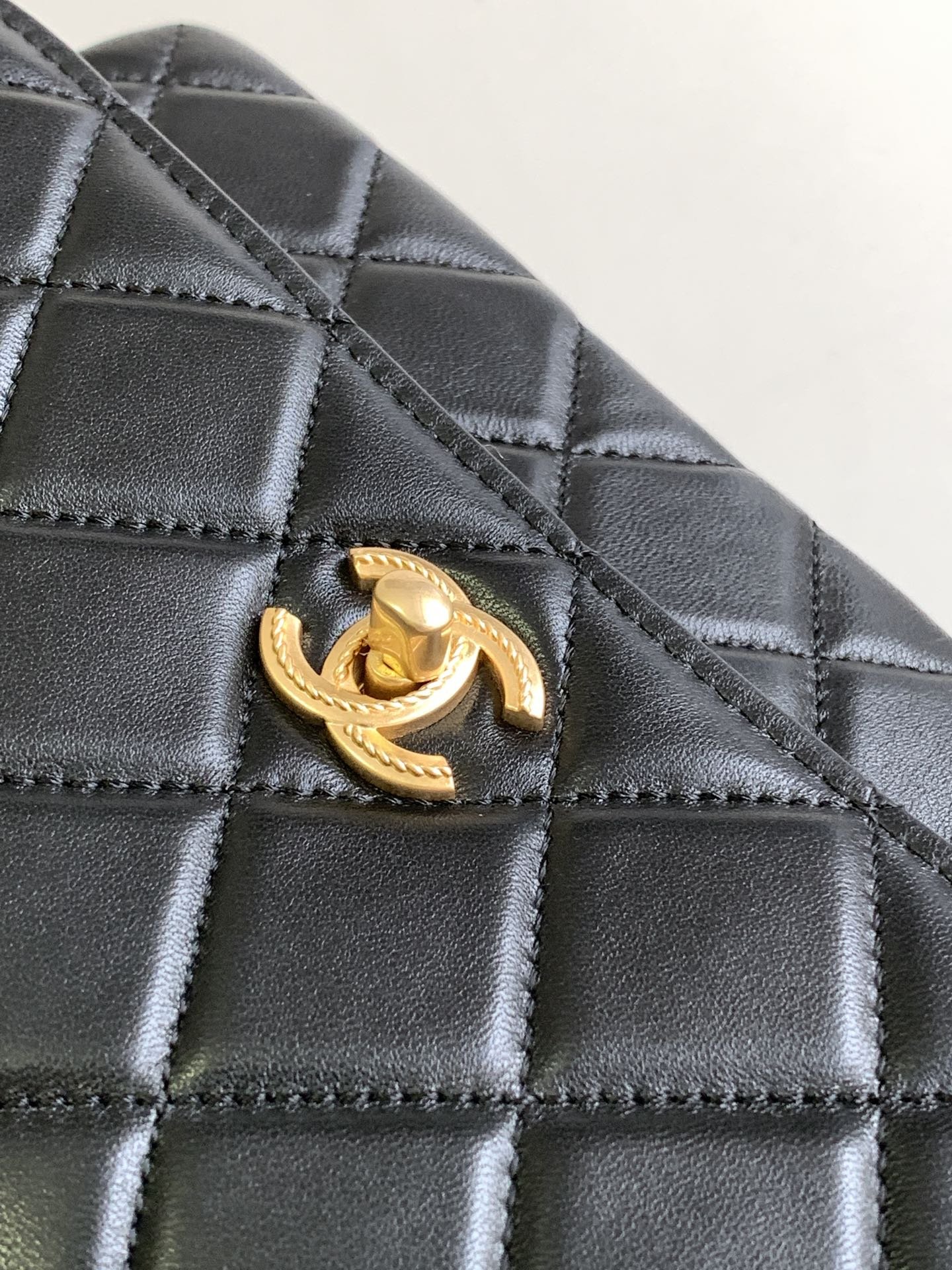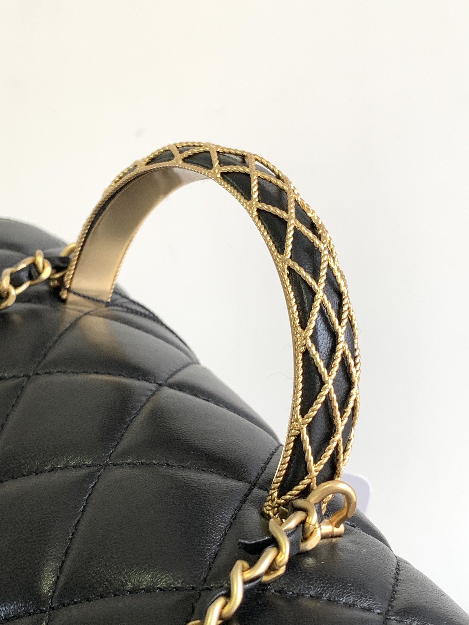 The most practical clamshell bag with hollow handle, the handle and logo design are so exquisite, you can put down the iphone 14 pro max, the weight is super light [strong][strong] black gold super high-grade and versatile. Exclusive original genuine calfskin.
