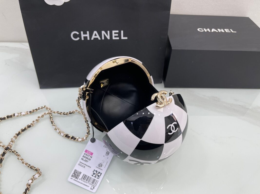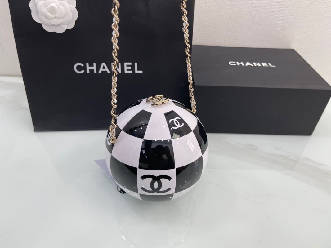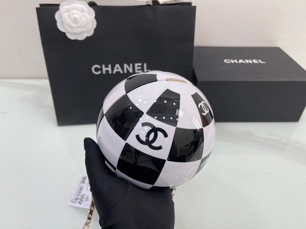 𝘾𝙝𝙖𝙣𝙚𝙡 •23C early spring new style 🆕🆕🆕⚽️Spherical hard evening bag The shape is resin, enamel craft, the inside is lambskin 🐑Size: 12cm