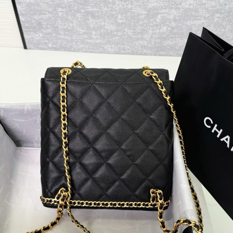 A new season backpack, the bucket-shaped liner has a large capacity! The bottom circle has a medieval style chain, which is very durable. The camellia on the logo is also a very special little design. Although the backpack is made of cowhide, it feels very soft and comfortable.