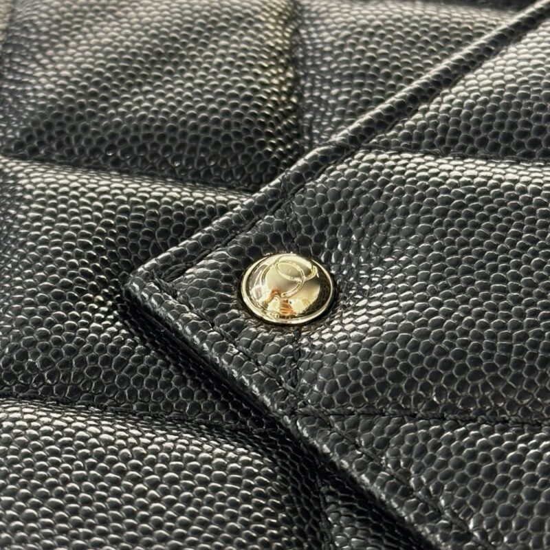 This one is black with light gold buckle, relatively softer. Although it is cowhide, the overall feel is relatively soft, and the bag shape is not as stiff as maxi ones! The bag is big but the weight is light.