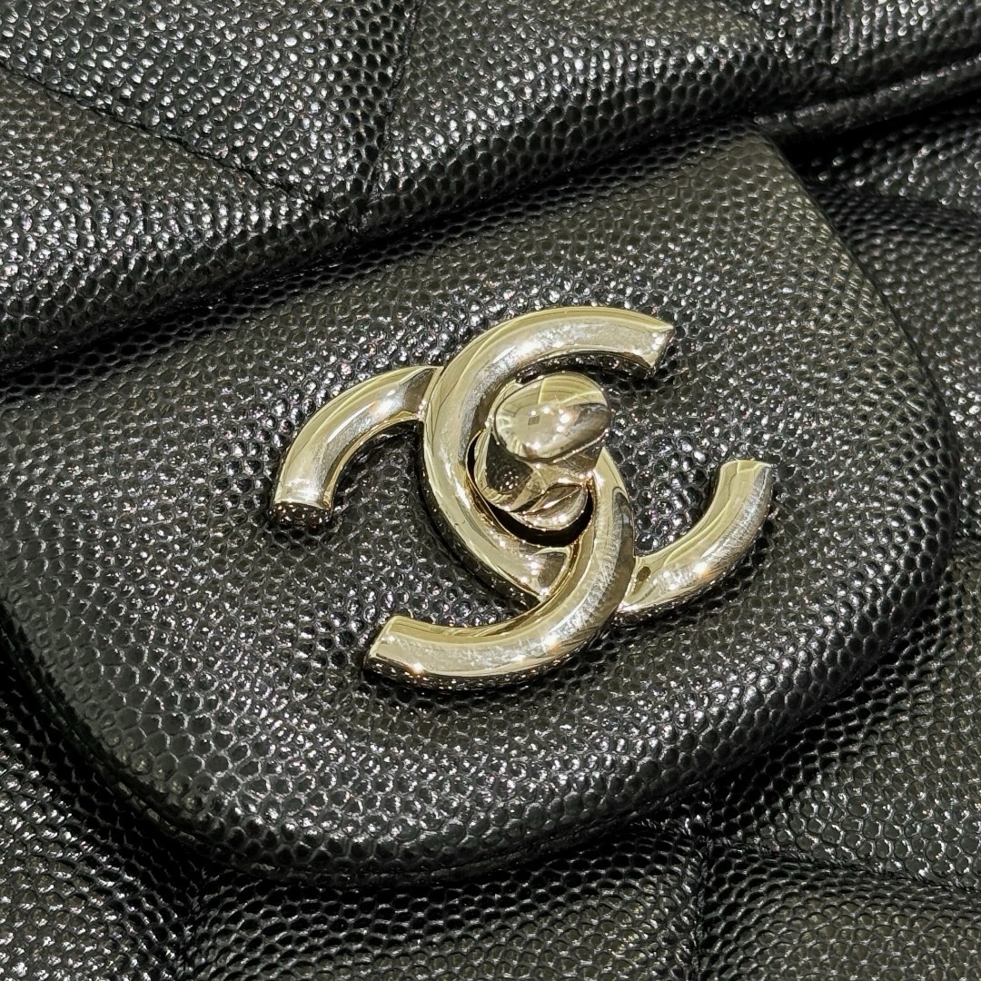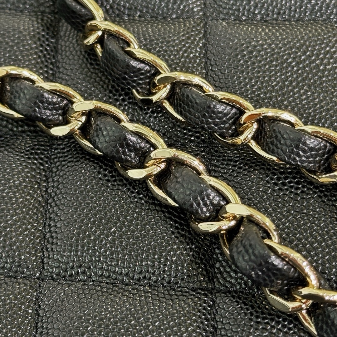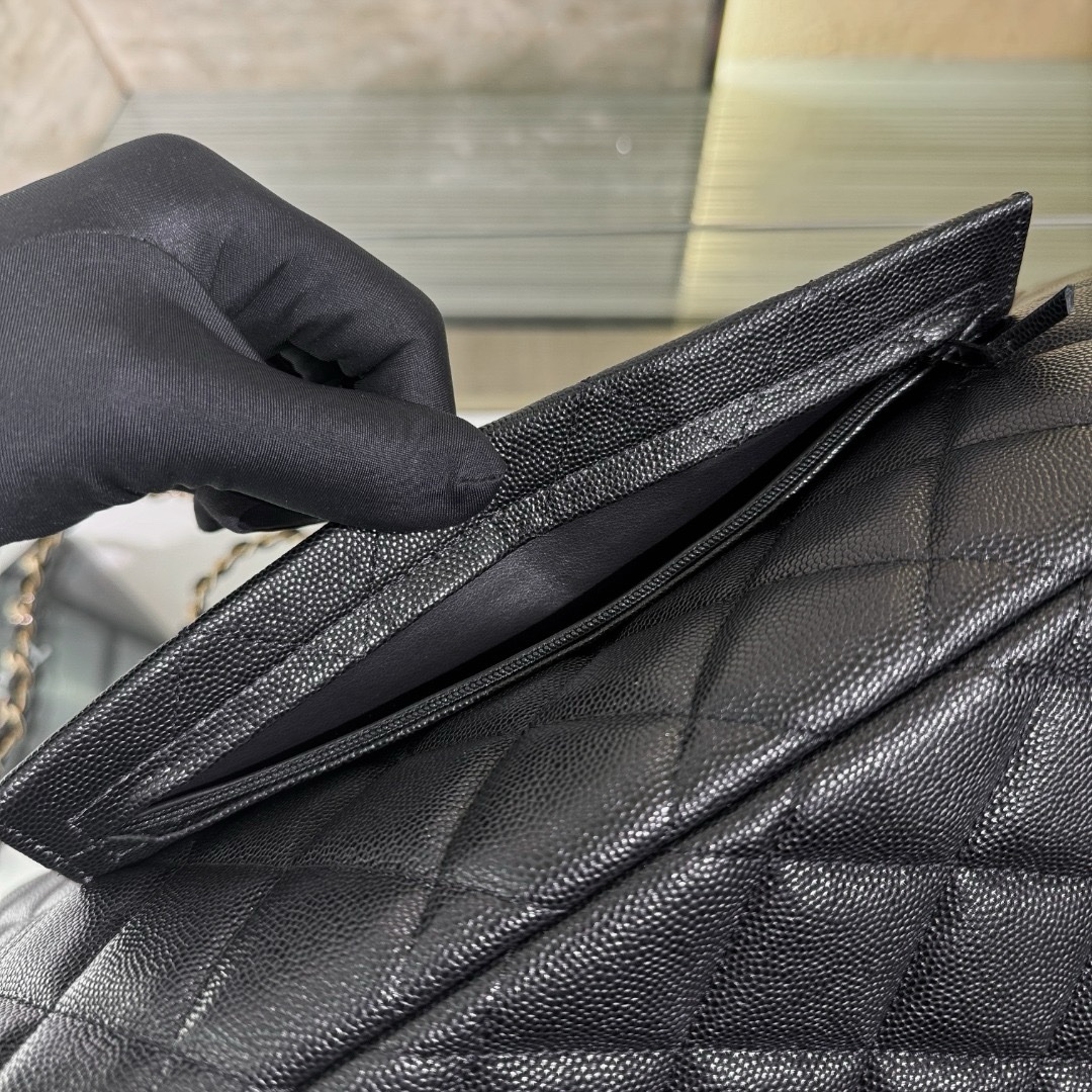 This one is black with light gold buckle, relatively softer. Although it is cowhide, the overall feel is relatively soft, and the bag shape is not as stiff as maxi ones! The bag is big but the weight is light.