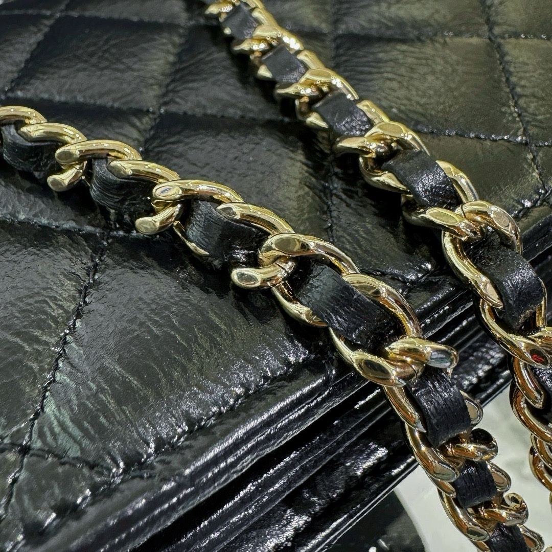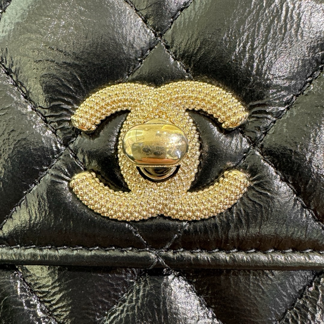 Chanel 24P Pearl Handle Flap Bag original oil waxed cowhide. The texture is great, the accordion bag shape is square and straight, very stylish!