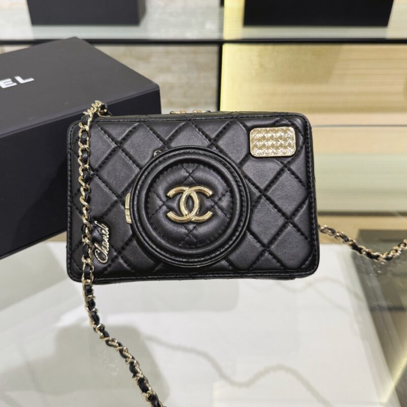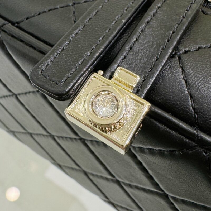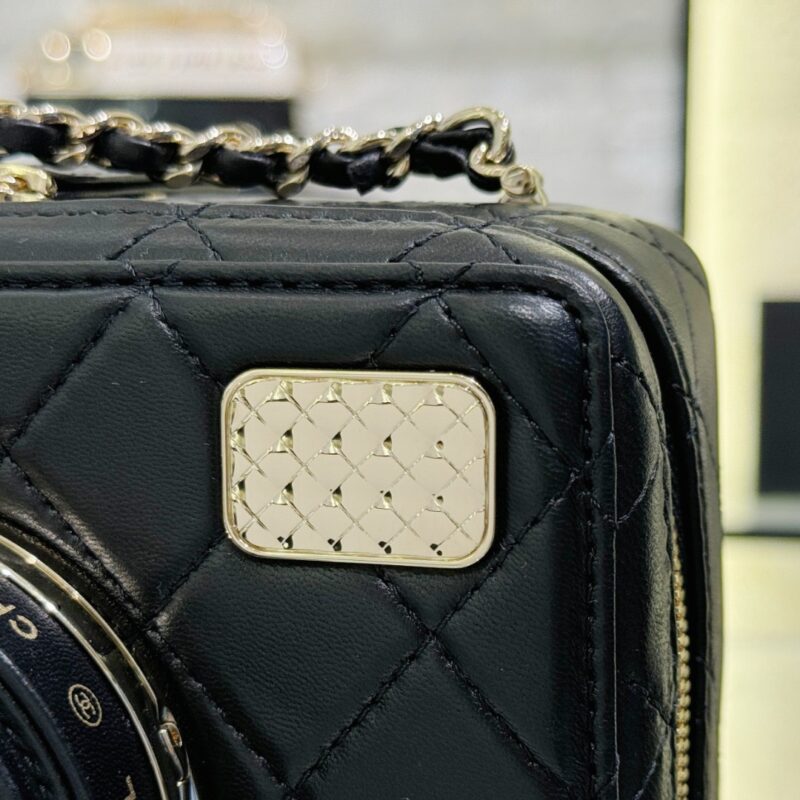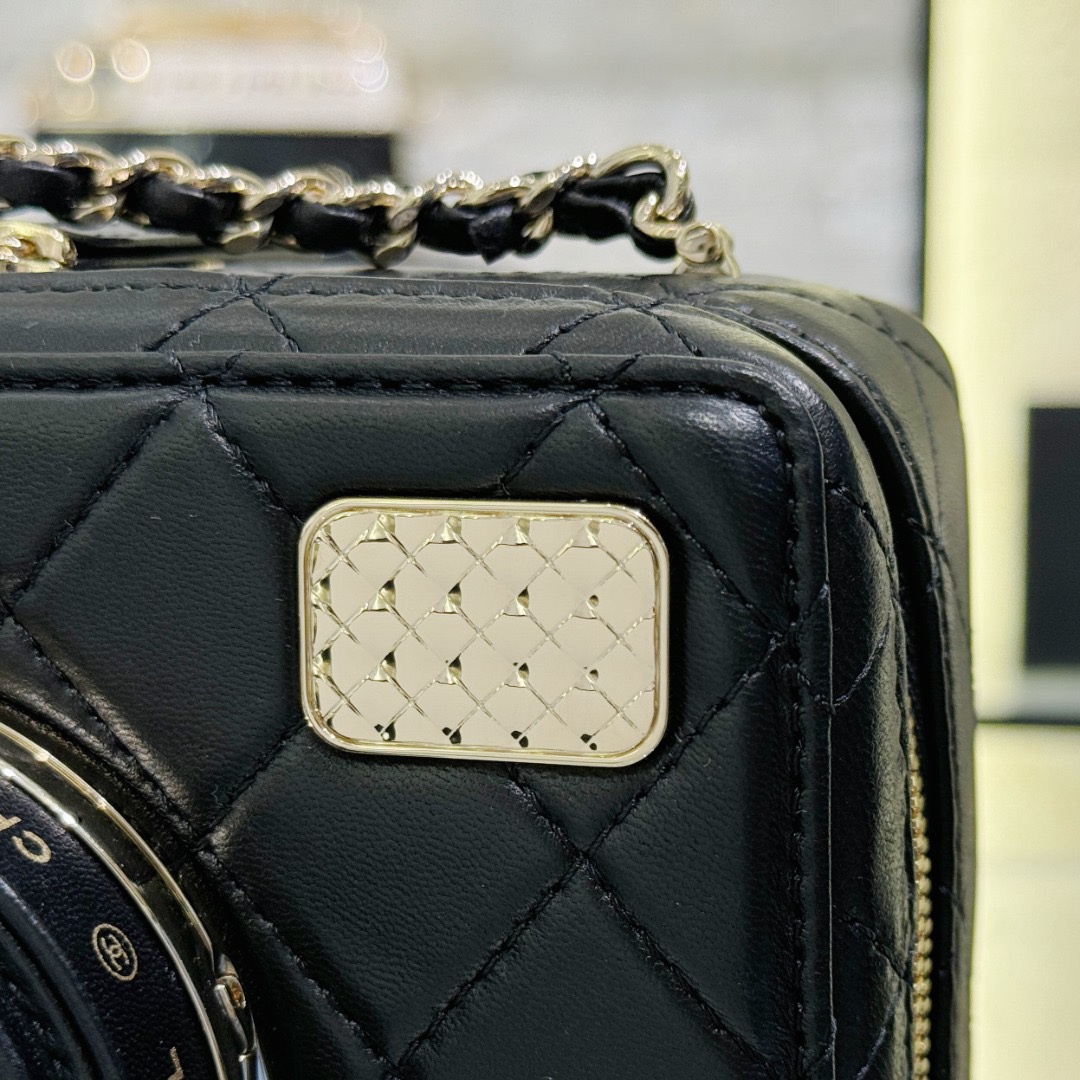 The shape imitates the retro camera, which is unique and exudes unadorned elegance~ Delicate sheepskin leather with light gold hardware, the front camera hides a small mirror, and the crossbody is modern and high-end.