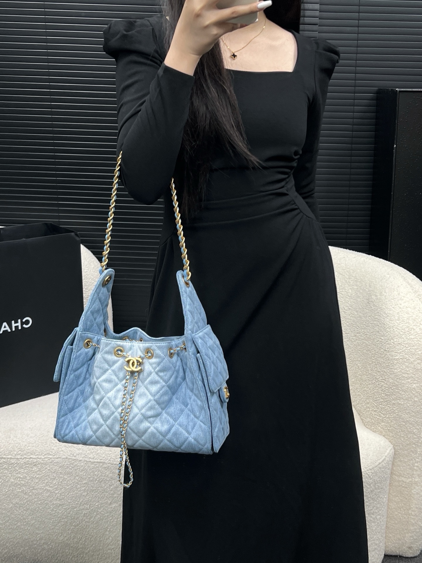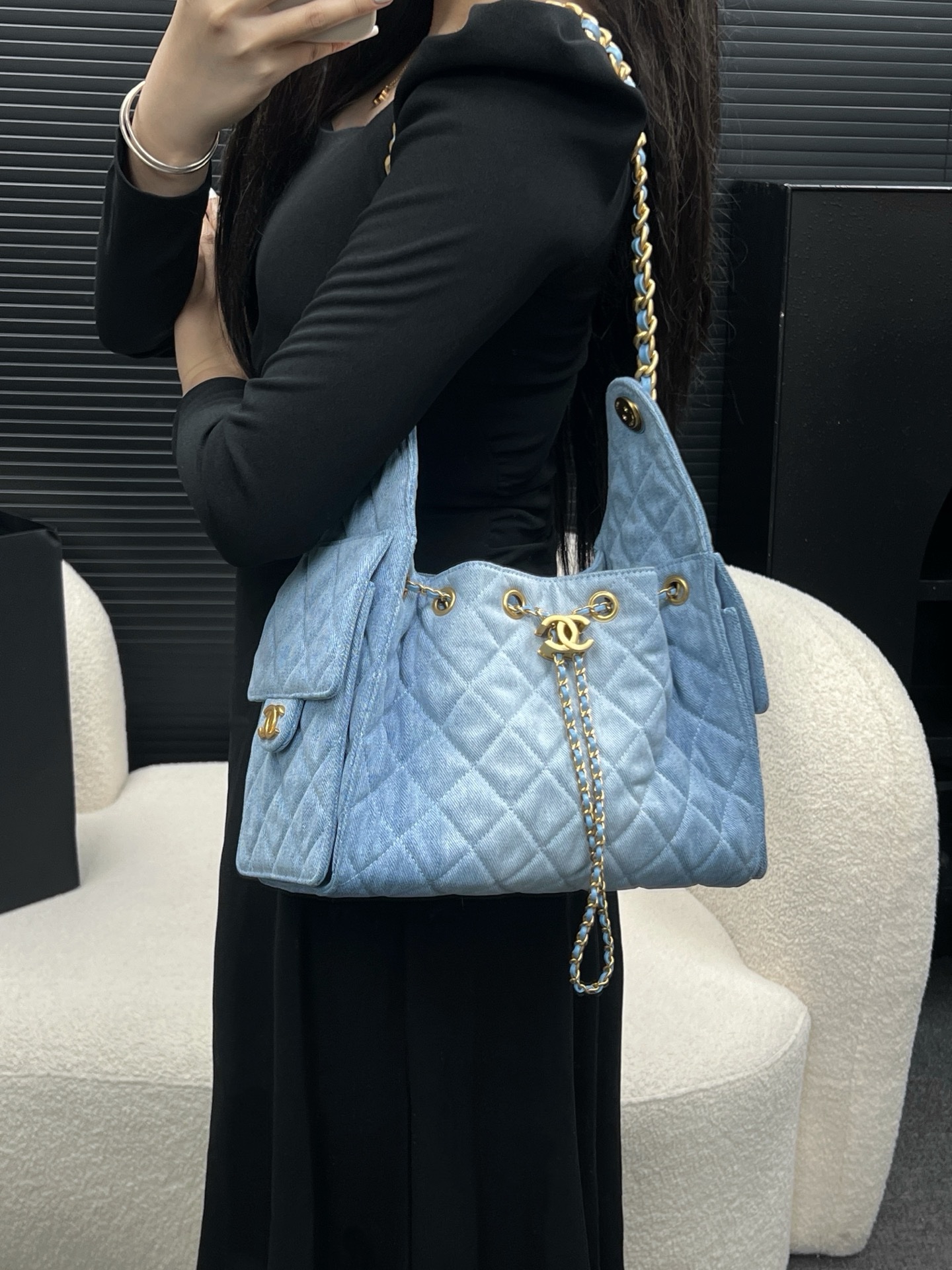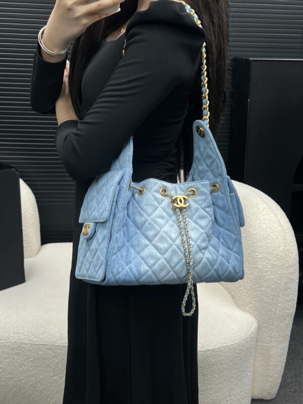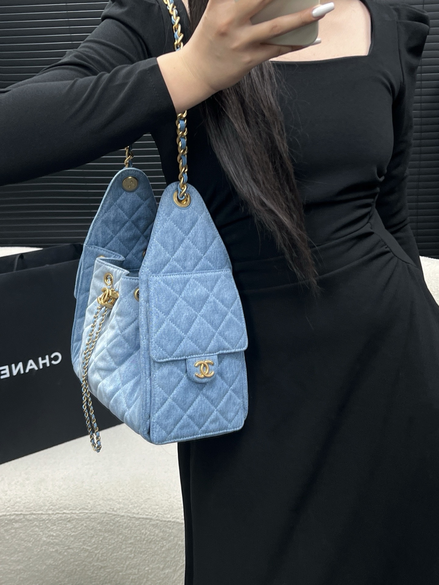 Chanel 25 small handbag blue authentic quality 2025 jeans
