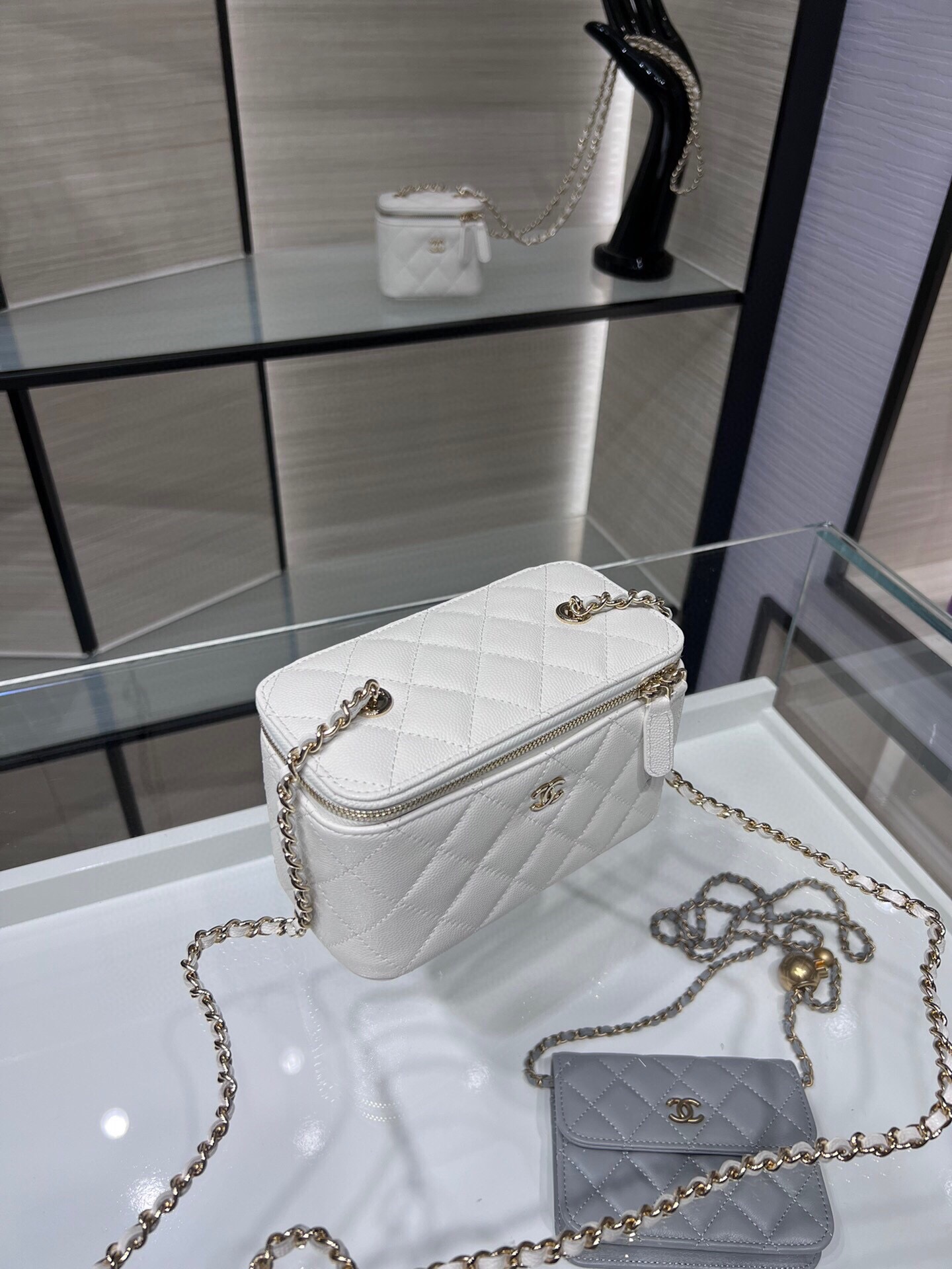 22A Long Caviar Box Bag Upgraded Version Full Leather Inside with Small Mirror Cosmetic Size: 16×8×10cm. AP1341Y