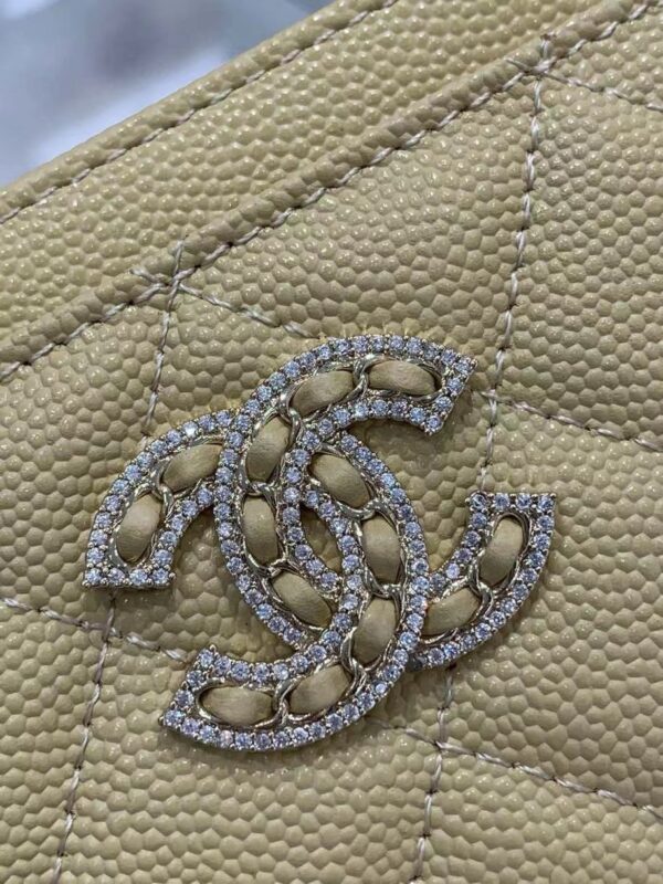 Purely handcrafted full diamond double 𝖼 buckle shining 𝖻𝗅𝗂𝗇𝗀𝖻𝗅𝗂𝗇𝗀 effect. Caviar cowhide leather wears a chain