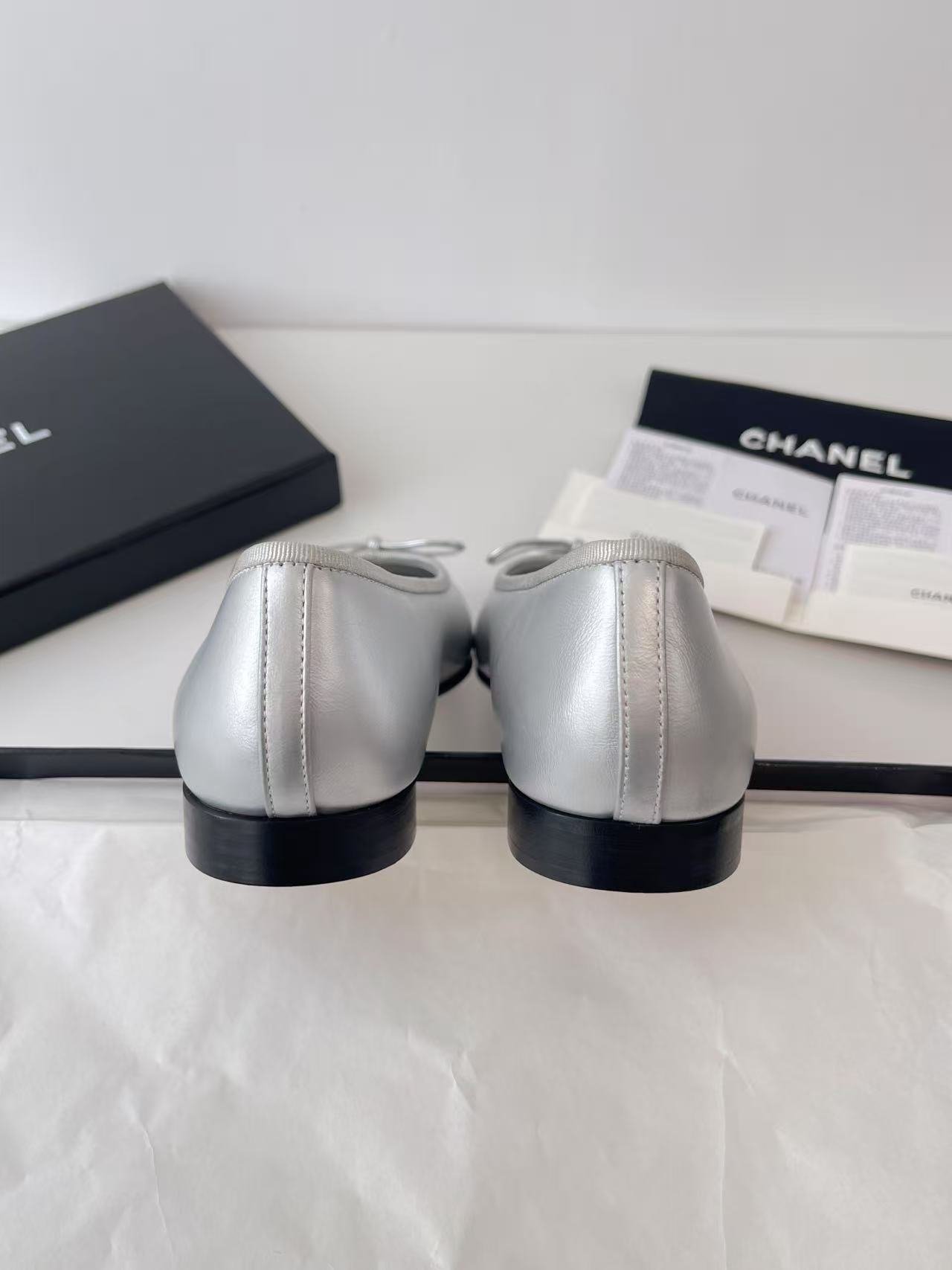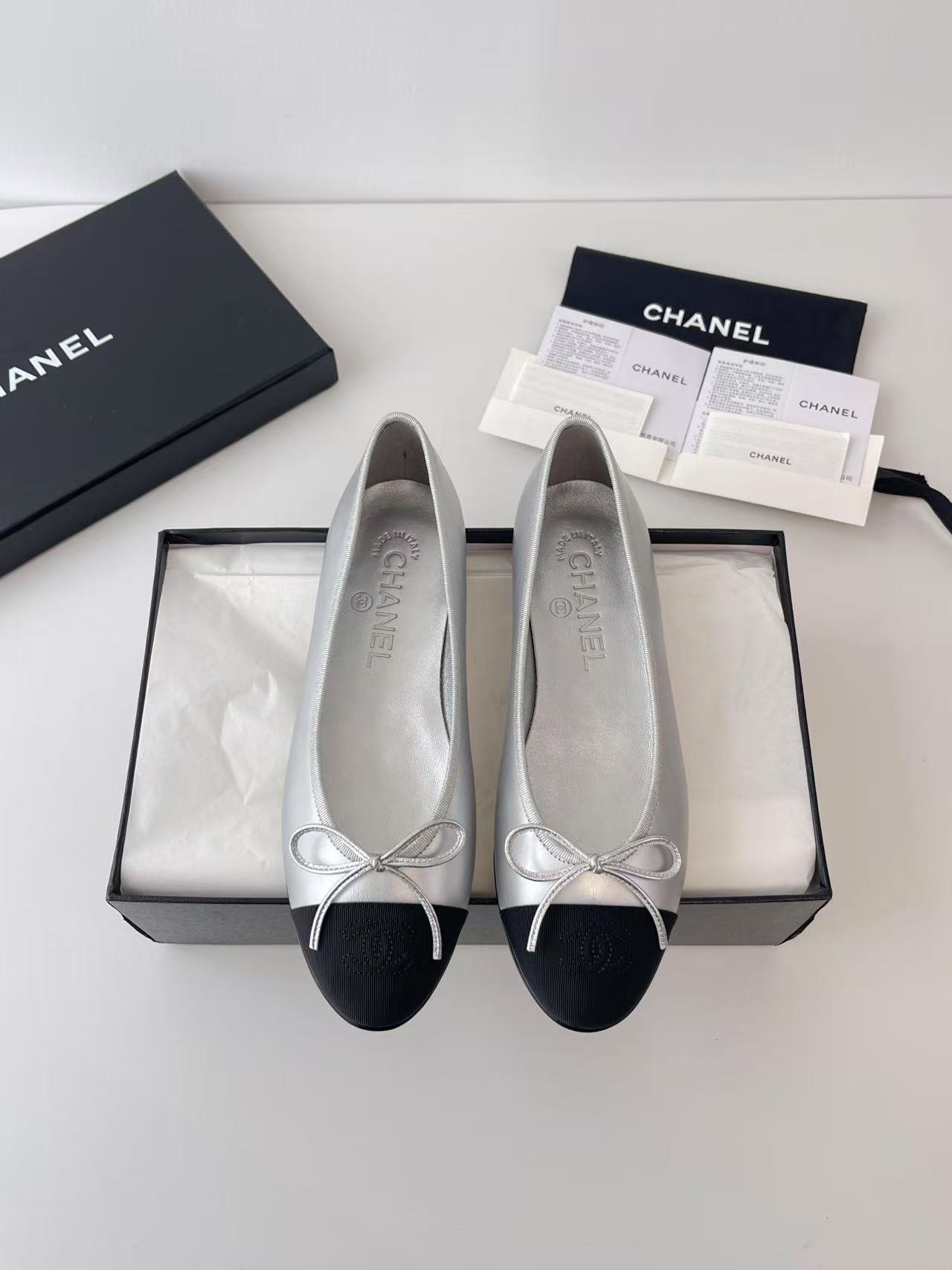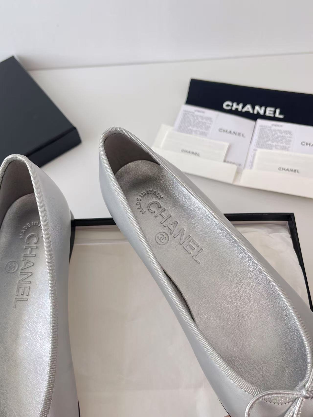 Chanel Ballerines silver color authentic quality shoes 2025