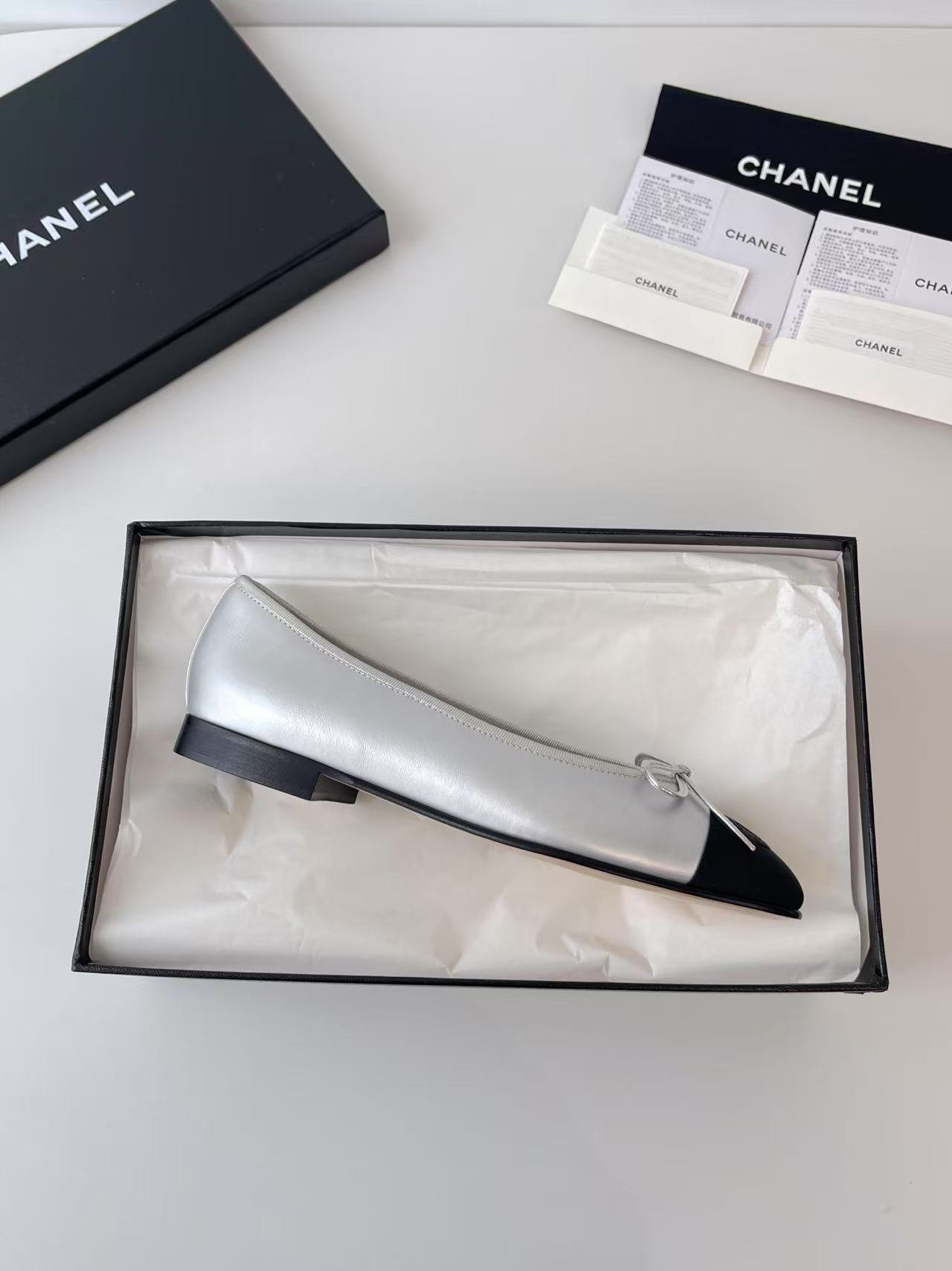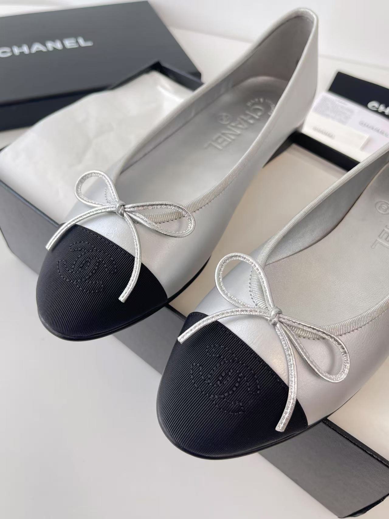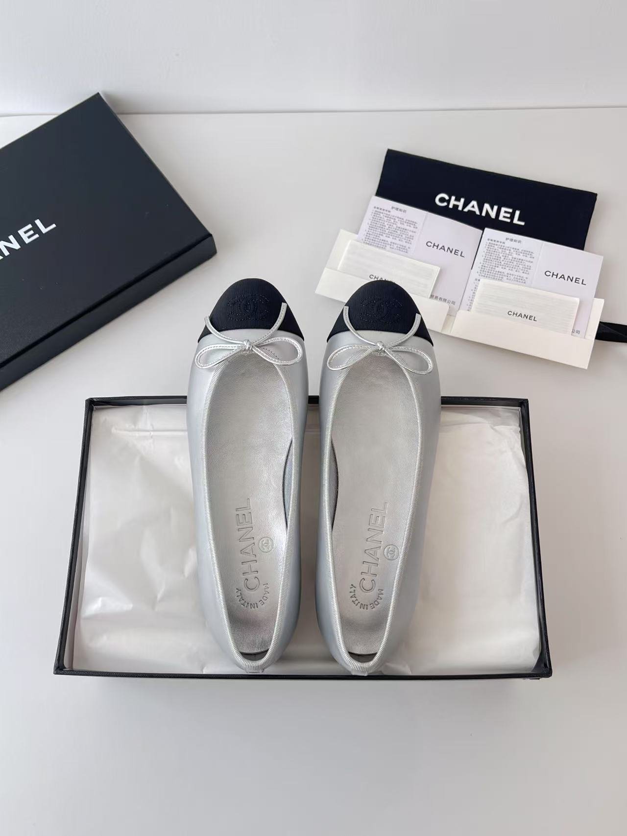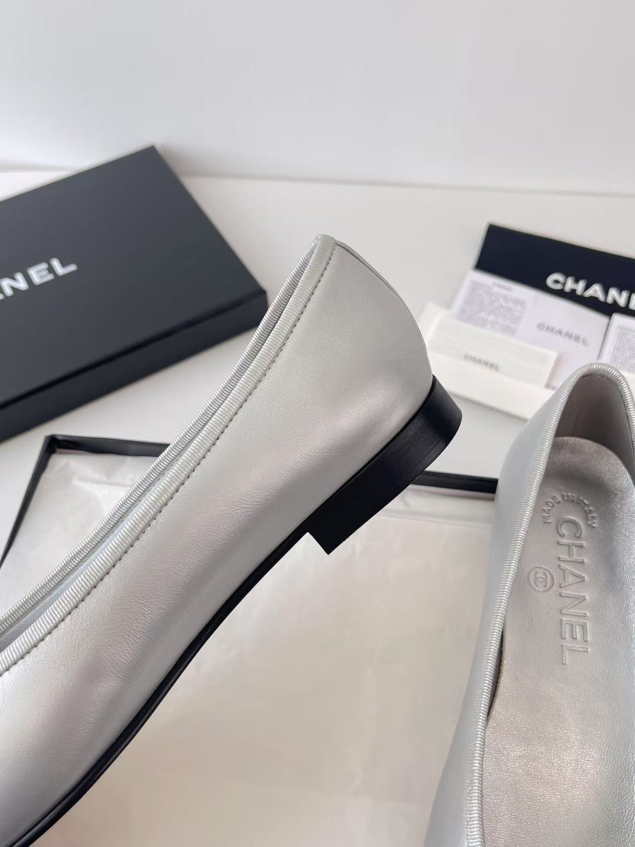 Chanel Ballerines silver color authentic quality shoes 2025