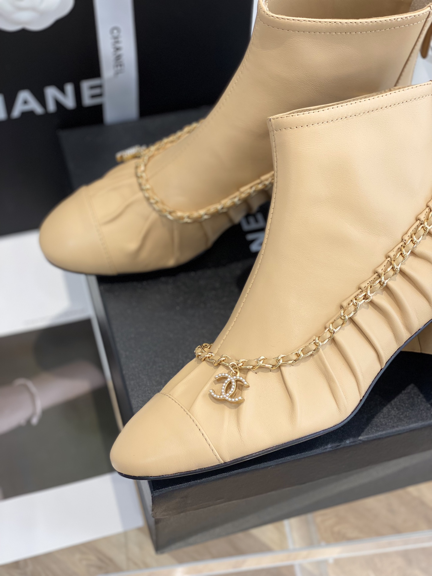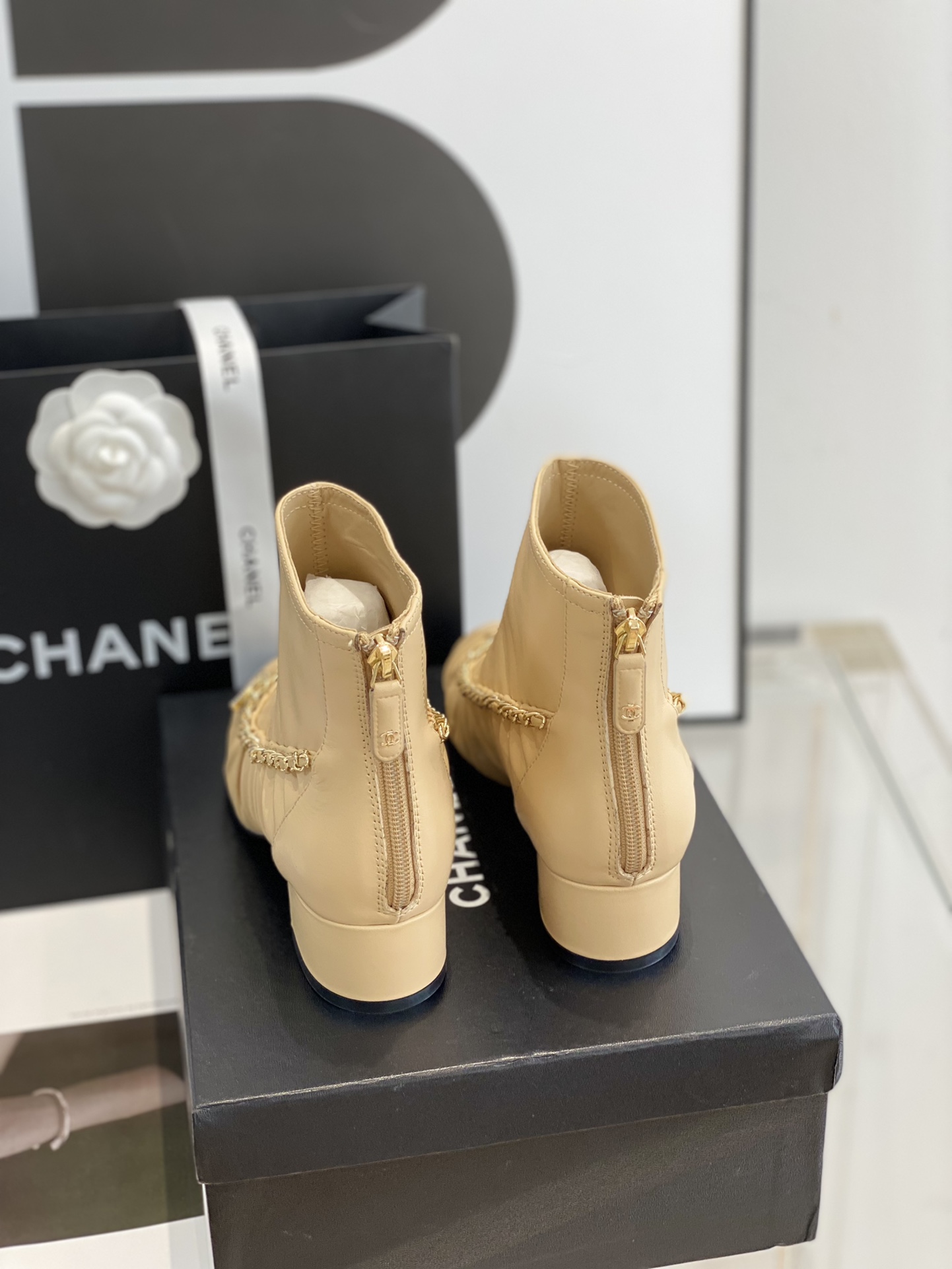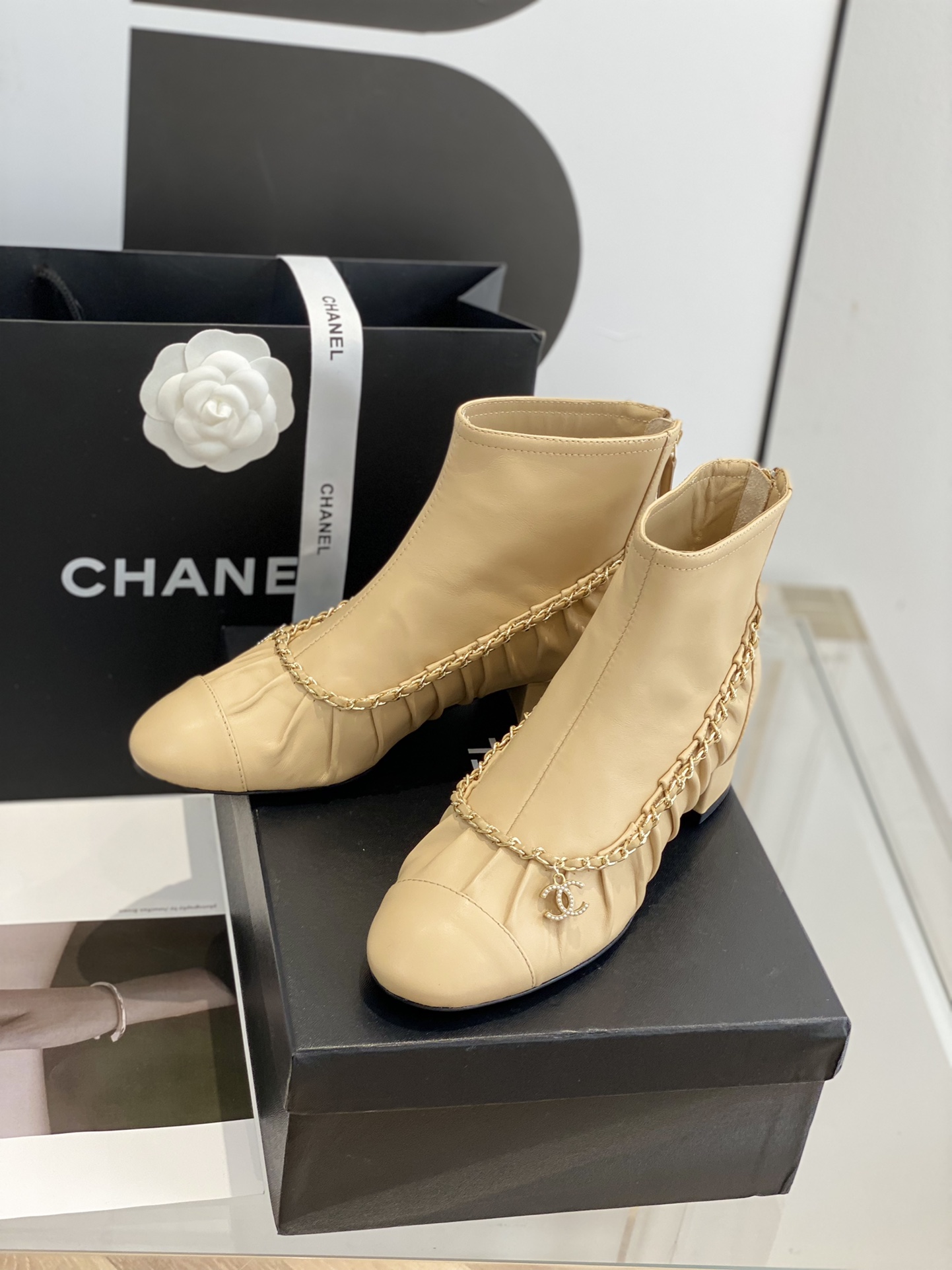Chanel autumn and winter new chain elastic boots Classic chain shape. Sheepskin inside the upper, genuine leather outsole. Size: 35-39