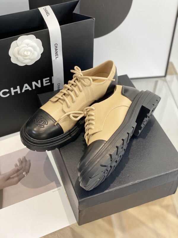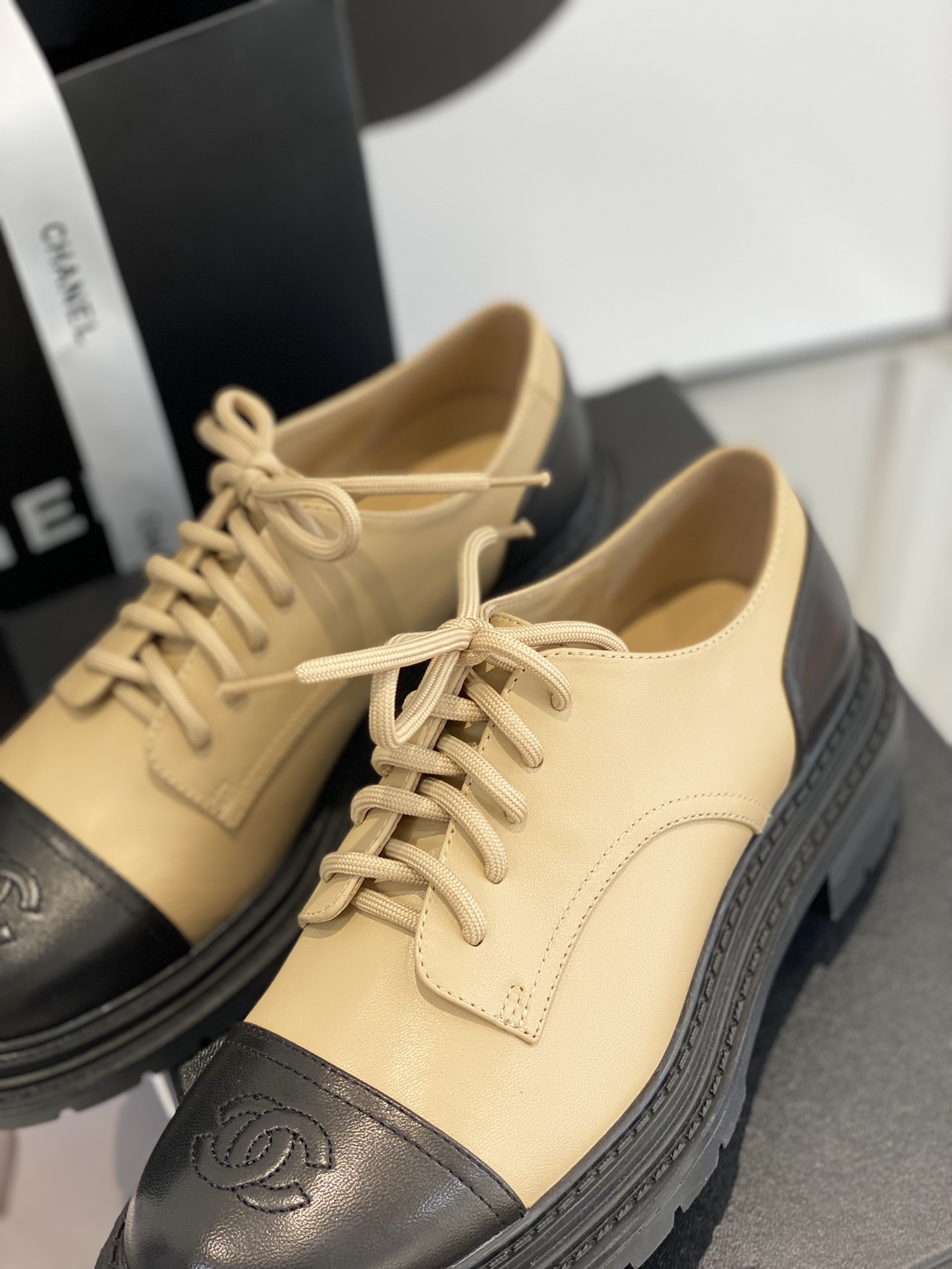 Chanel Autumn and Winter Classic Chunky Shoes Small square head splicing design, radian control is in place. The upper is customized original lambskin, very soft and comfortable, not tight. Imported sheepskin inside, super delicate foot feeling, 100% comfort. Italian leather outsole, non-slip and wear-resistant, high safety performance. With thick heel design, the proportion of visual elongate. Size: 35-39 (40/41 customized non-refundable)