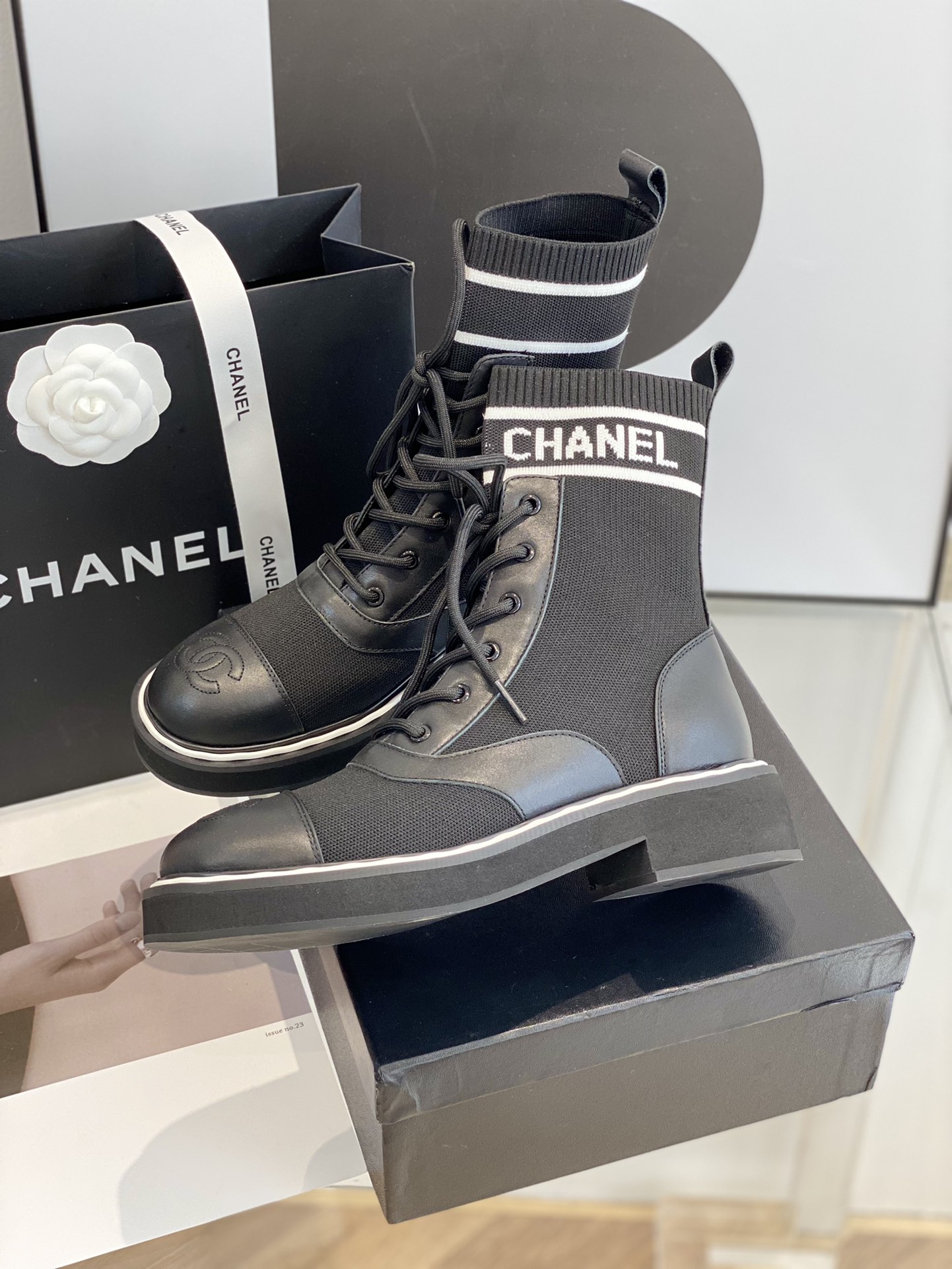 Chanel Black Sock Boots
