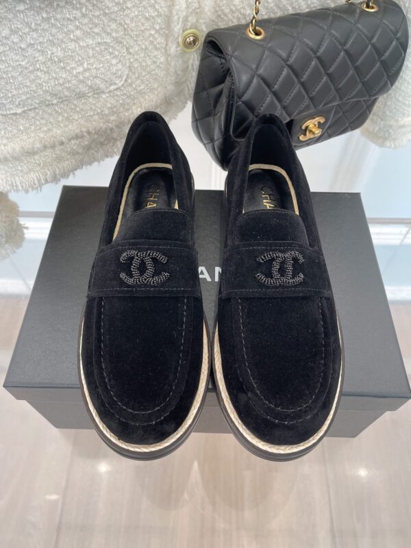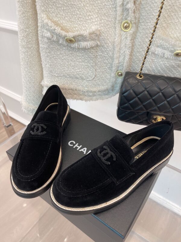 CHANEL 𝟐𝟎𝟐𝟐/𝐒𝐒 𝐧𝐞𝐰 new spring and summer fisherman velvet loafers_______________________________ This season’s velvet loafers are really beautiful, and the hand-beaded double C is the core theme. Full of sense of luxury. The upper feet are good-looking and comfortable, and they are invincible with skirts and pants.………………………………………………Material:❶ Upper: original custom imported velvet❷Foot: mixed sheepskin❸Accessories: hand-beaded double C❹Heel height: 3cm❺ Outsole: Italian imported cowhide outsole Woven grass border❻ Sizes: 35-39 (40/41 customized)