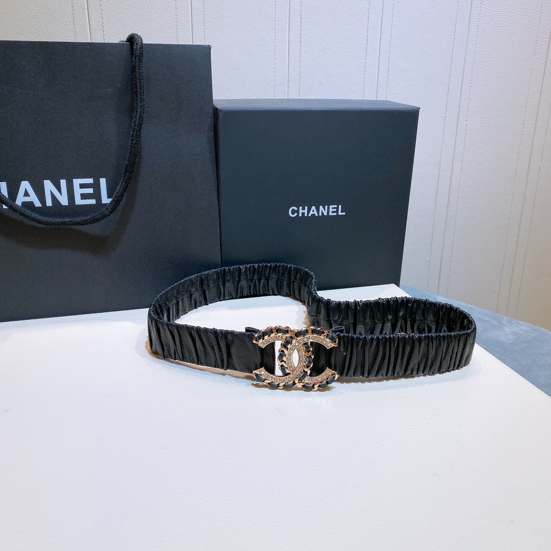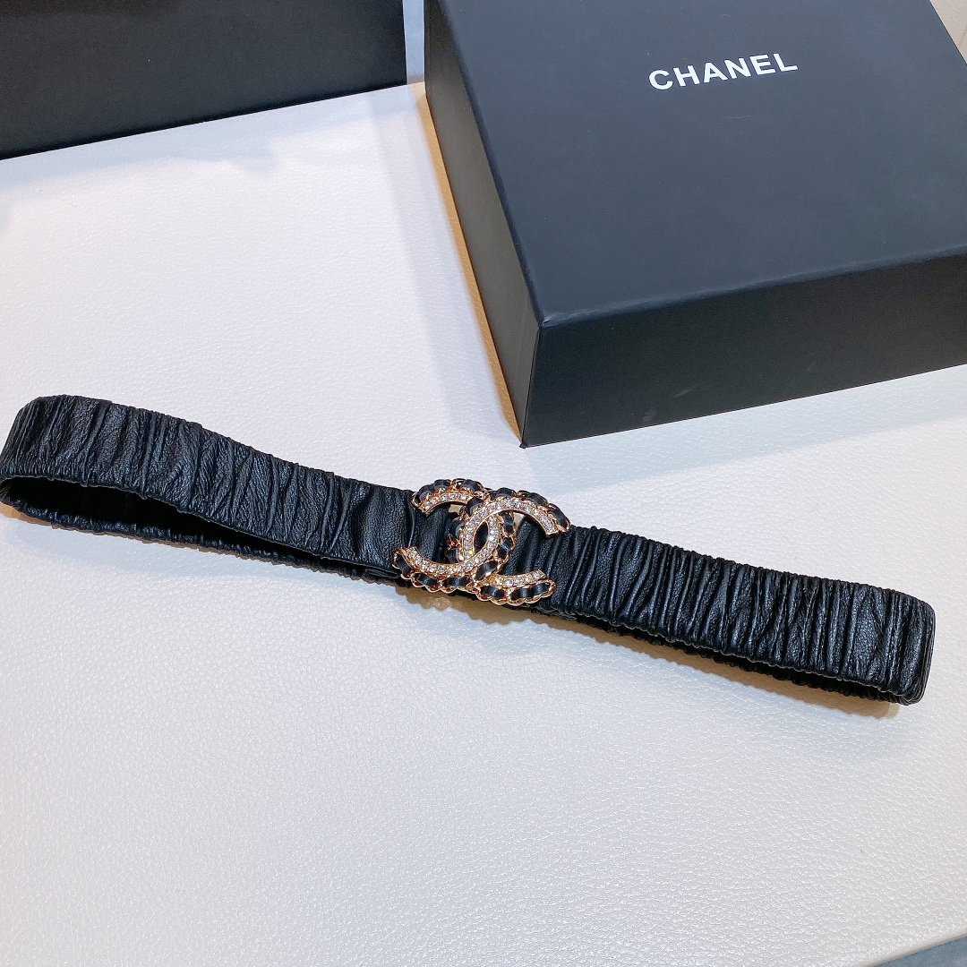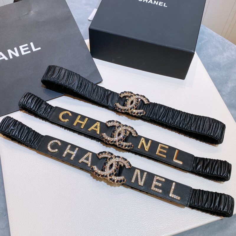 Chanel elastic belt with CC rhinestone metal logo buckle. 3mm wide.