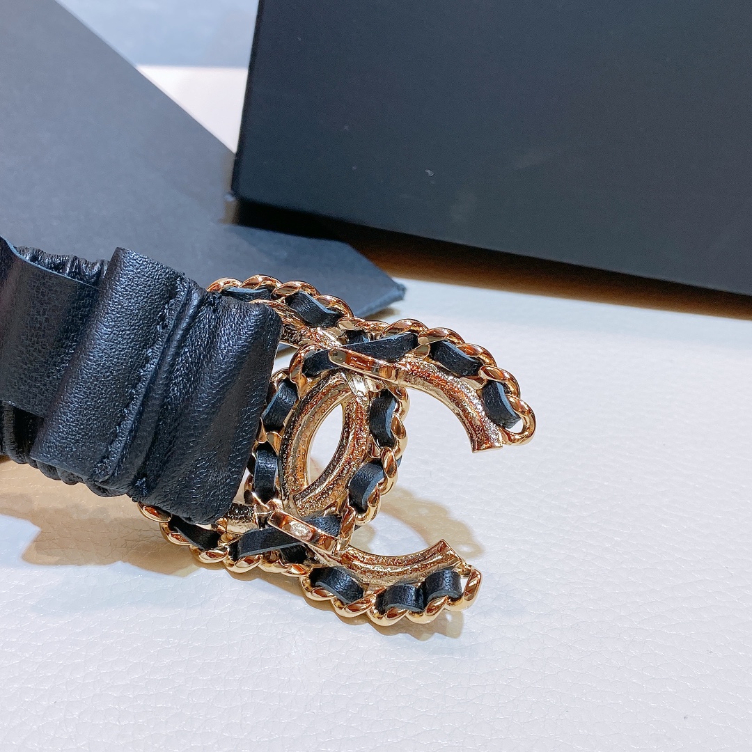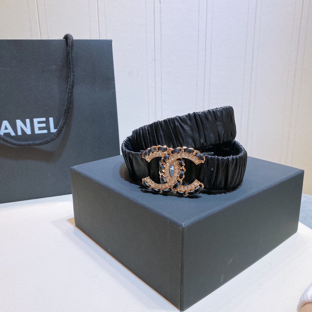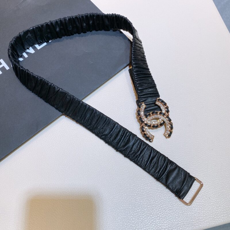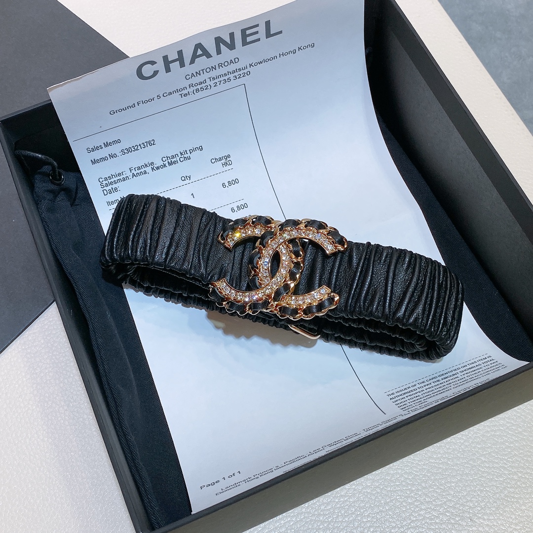 Chanel elastic belt with CC rhinestone metal logo buckle. 3mm wide.