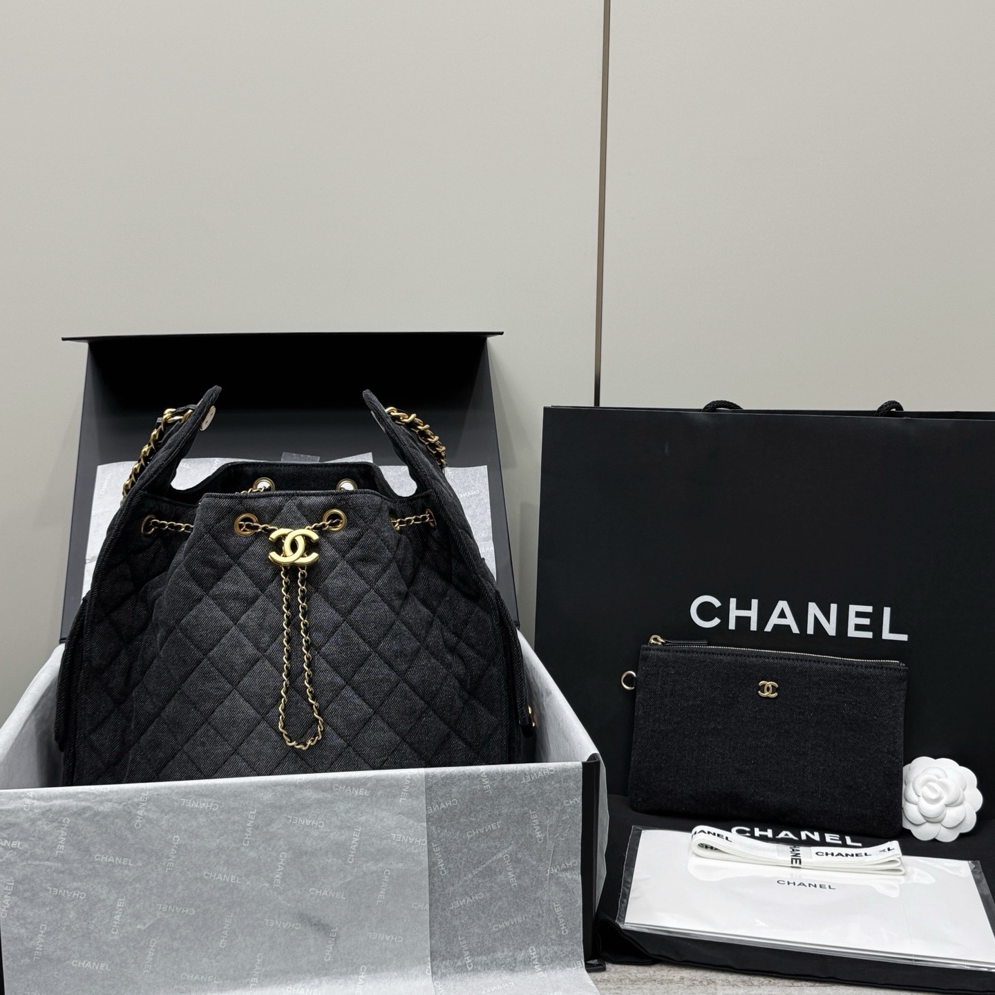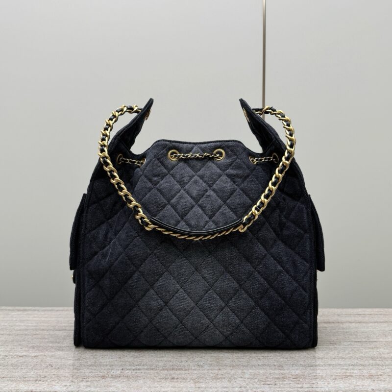 Chanel cc25 black denim handbag medium bag authentic quality 2025