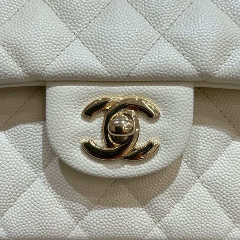 / Chanel CF Small 23cm Fine Caviar Ivory White Light