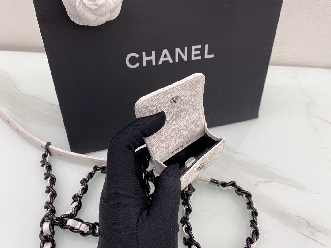๐พ๐๐๐ฃ๐๐ก ๐ฎ๐ญFine Ball Grain Calfskin Chain Waist Bag. AirPods Headphone Bag. Small one is exquisite and cute.