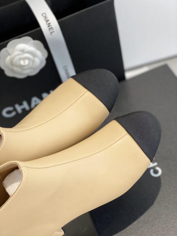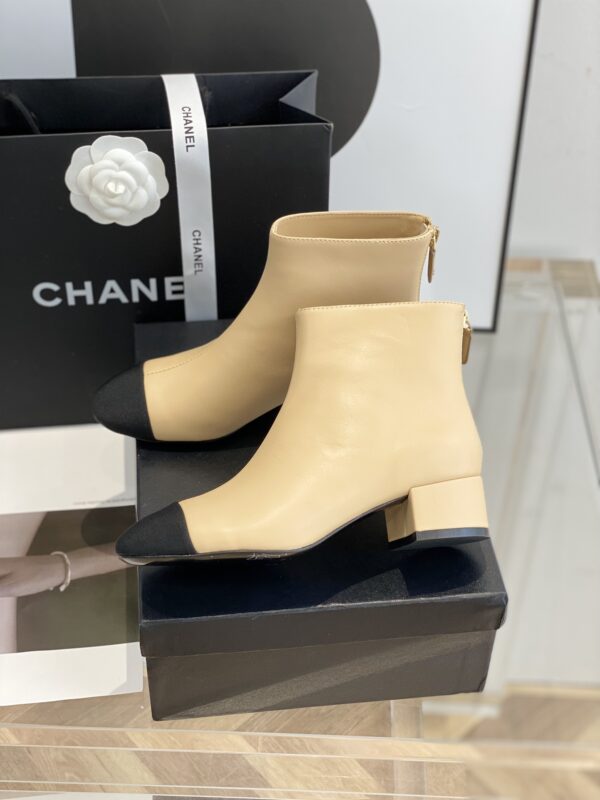 Chanel classic stitching chunky heel boots Interpretation of elegant and small fragrance. Super textured style, low-key but not simple, temperament and extravagant, especially the small double Clogo embellishment on the heel, and the simple collision of different materials on the toe cap. The feet are as flat as the ground and not tired at all. The upper is made of imported Italian lambskin, and the inside is sheepskin. Italian calf leather outsole. Heel height: 5cm.Size: 35-39 (34, 40, 41, 42 can be customized)