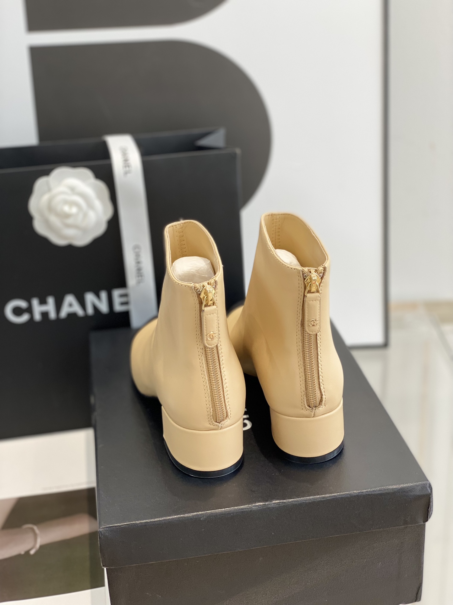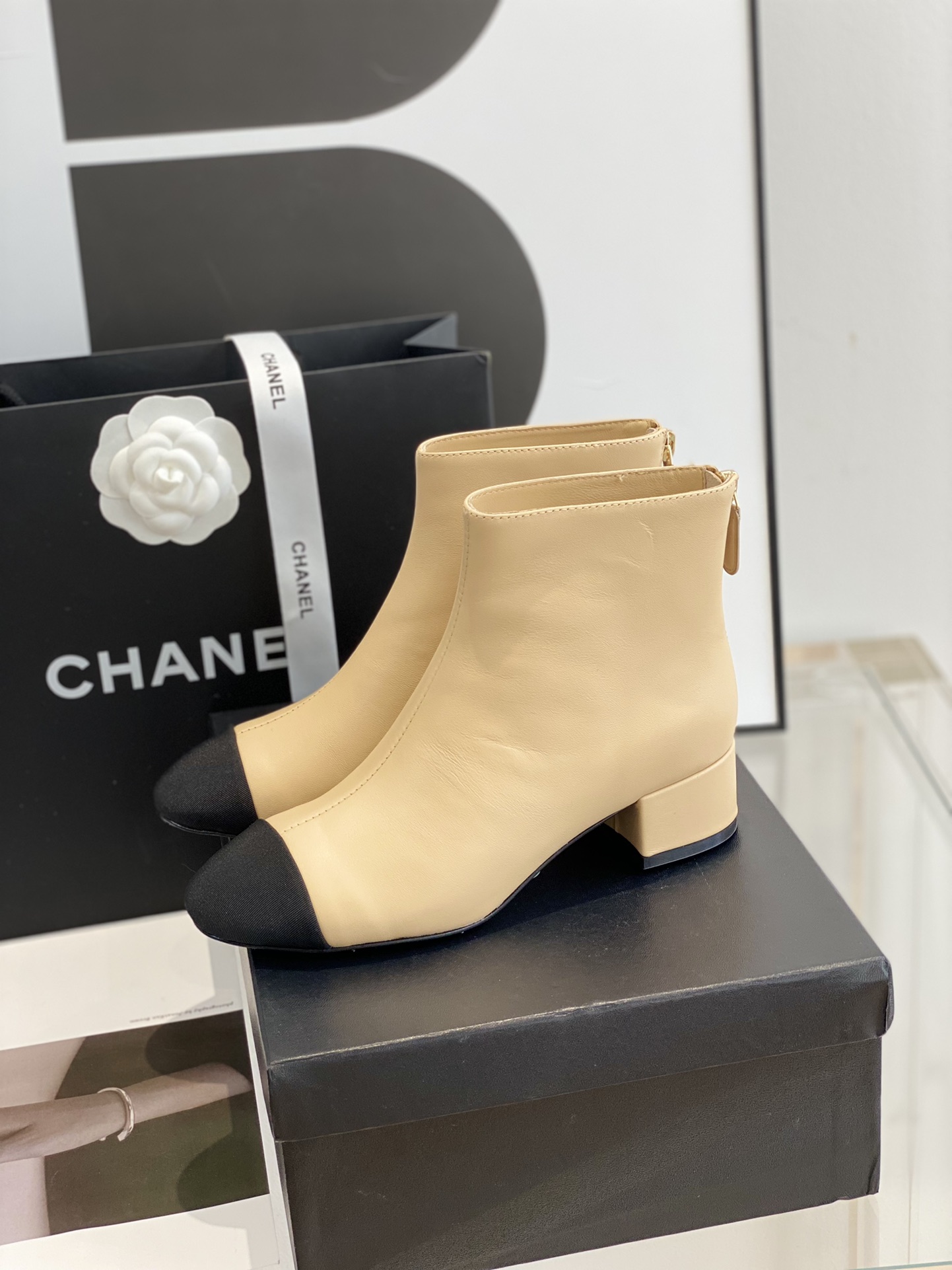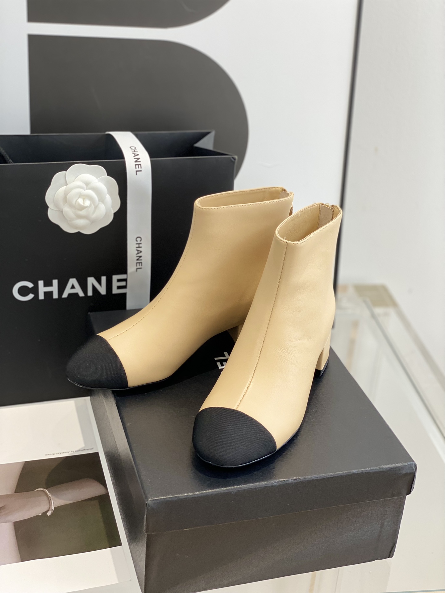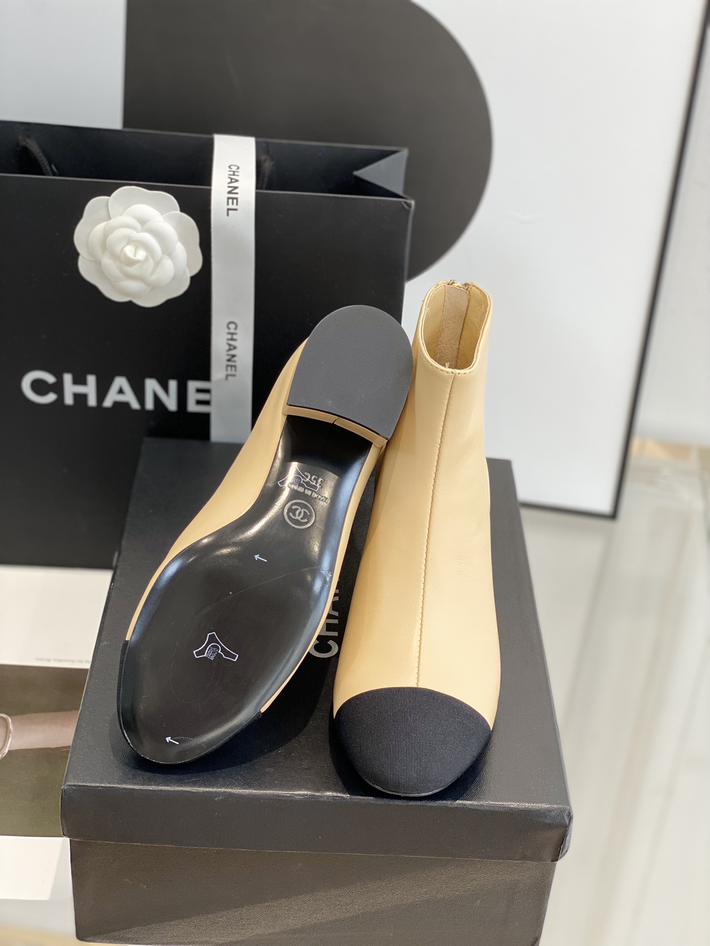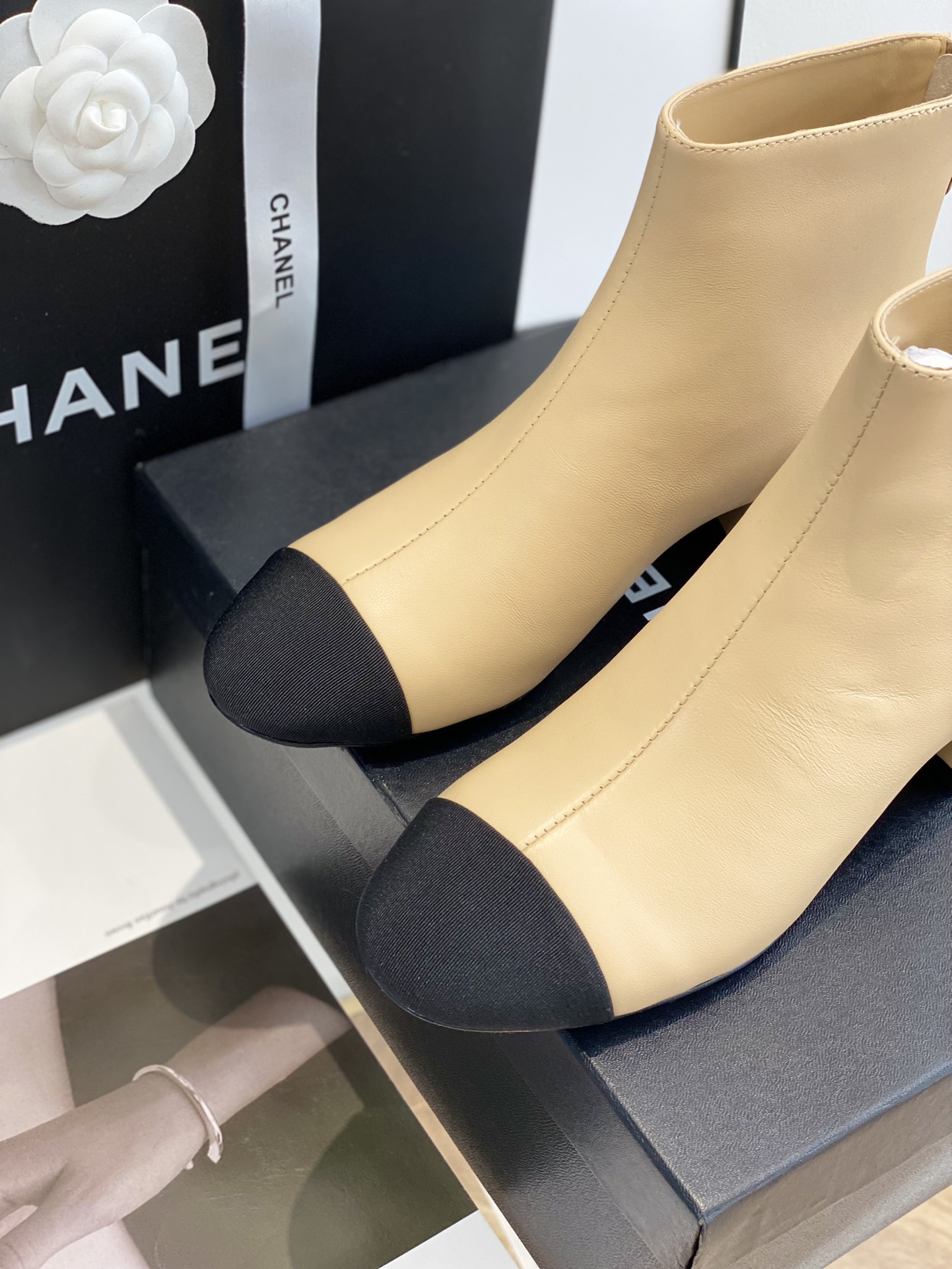 Chanel classic stitching chunky heel boots Interpretation of elegant and small fragrance. Super textured style, low-key but not simple, temperament and extravagant, especially the small double Clogo embellishment on the heel, and the simple collision of different materials on the toe cap. The feet are as flat as the ground and not tired at all. The upper is made of imported Italian lambskin, and the inside is sheepskin. Italian calf leather outsole. Heel height: 5cm.Size: 35-39 (34, 40, 41, 42 can be customized)