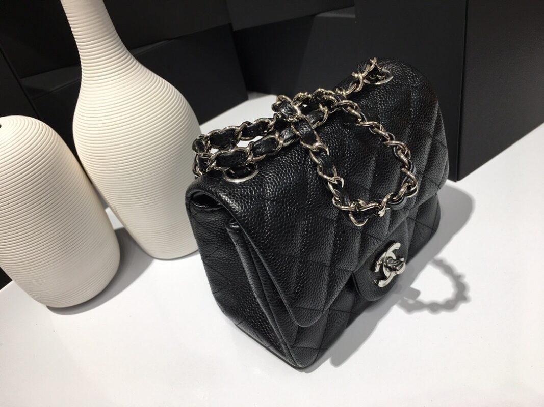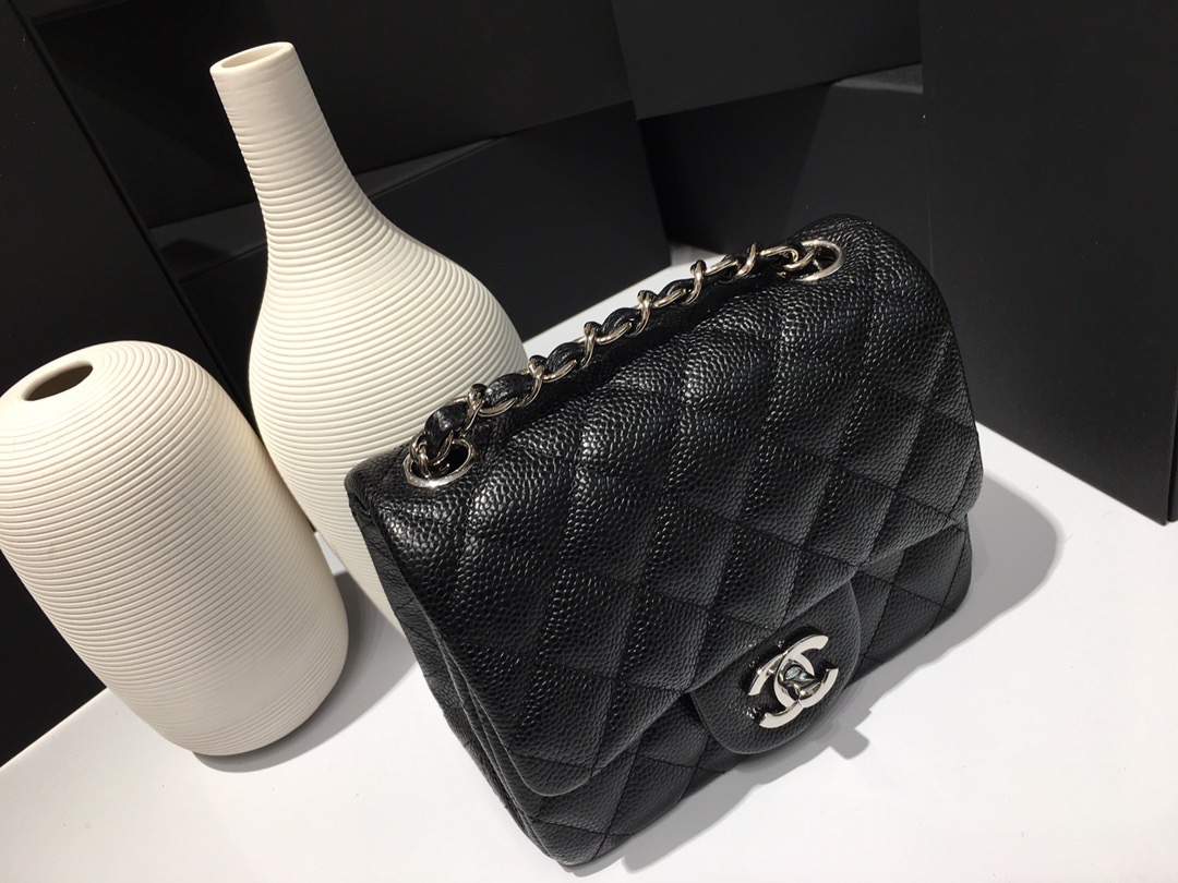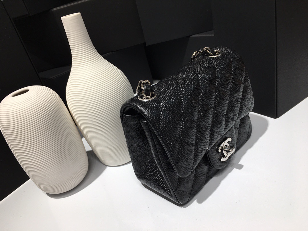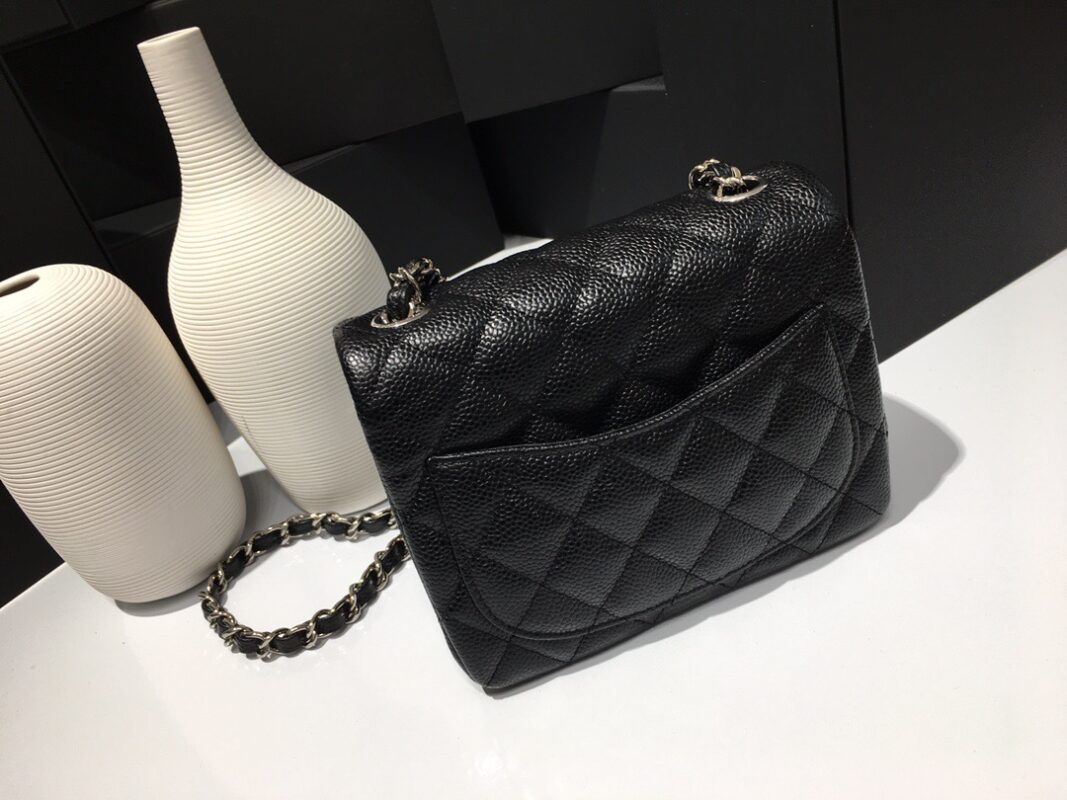Classic Flap Classic Fang Fatzi Caviar. All Copper Hardware. Black. Silver Buckle 17cm