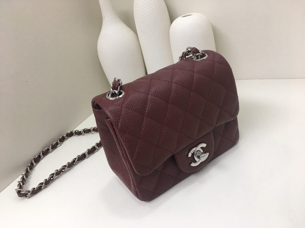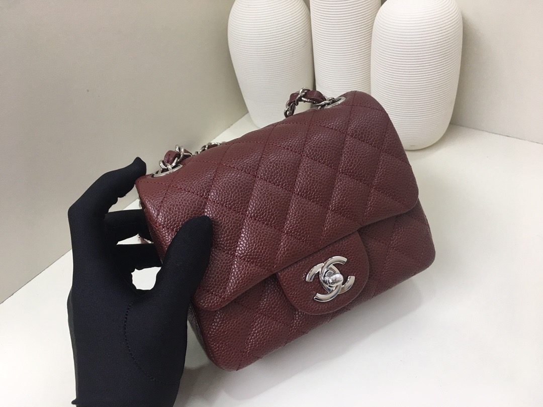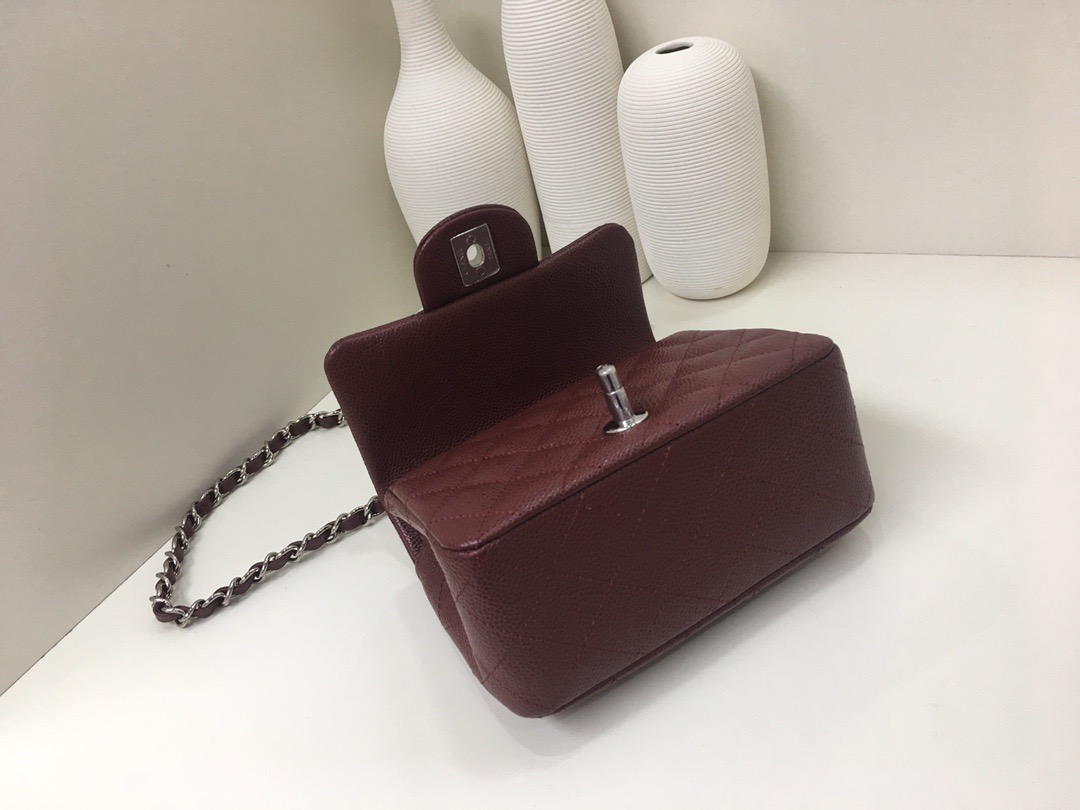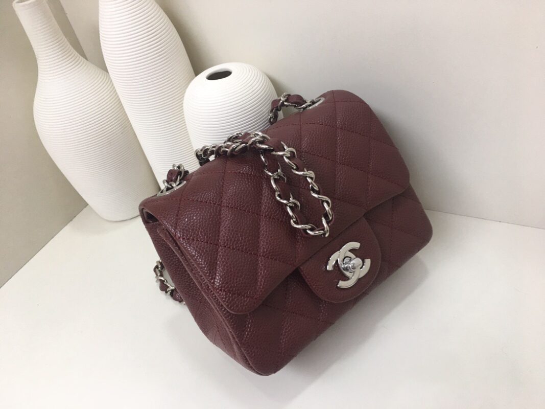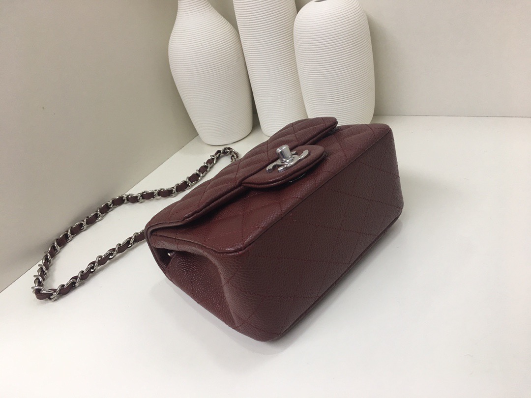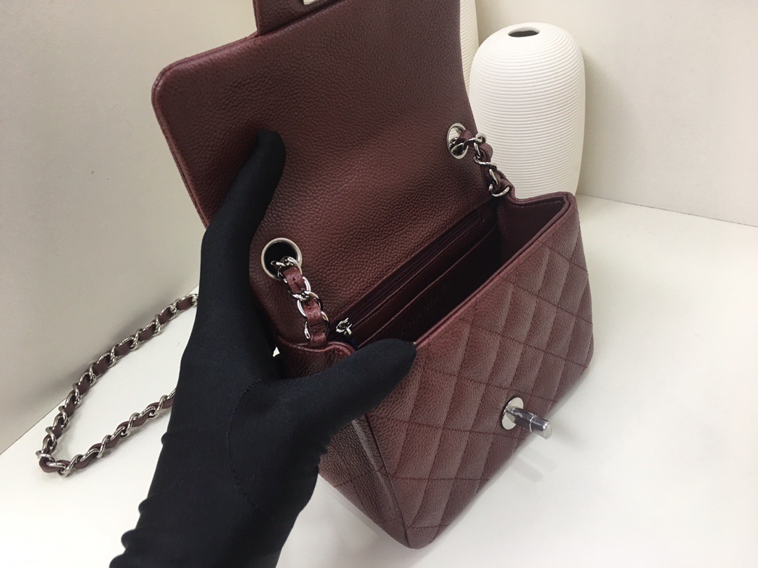 Chanel Classic Flap Calfskin caviar. All copper hardware. Fang Fatzi. Jujube Red. Silver Buckle 17cm