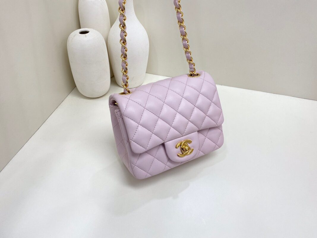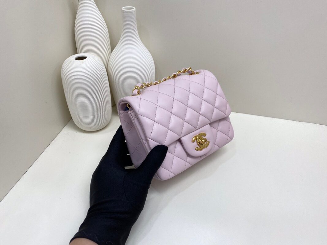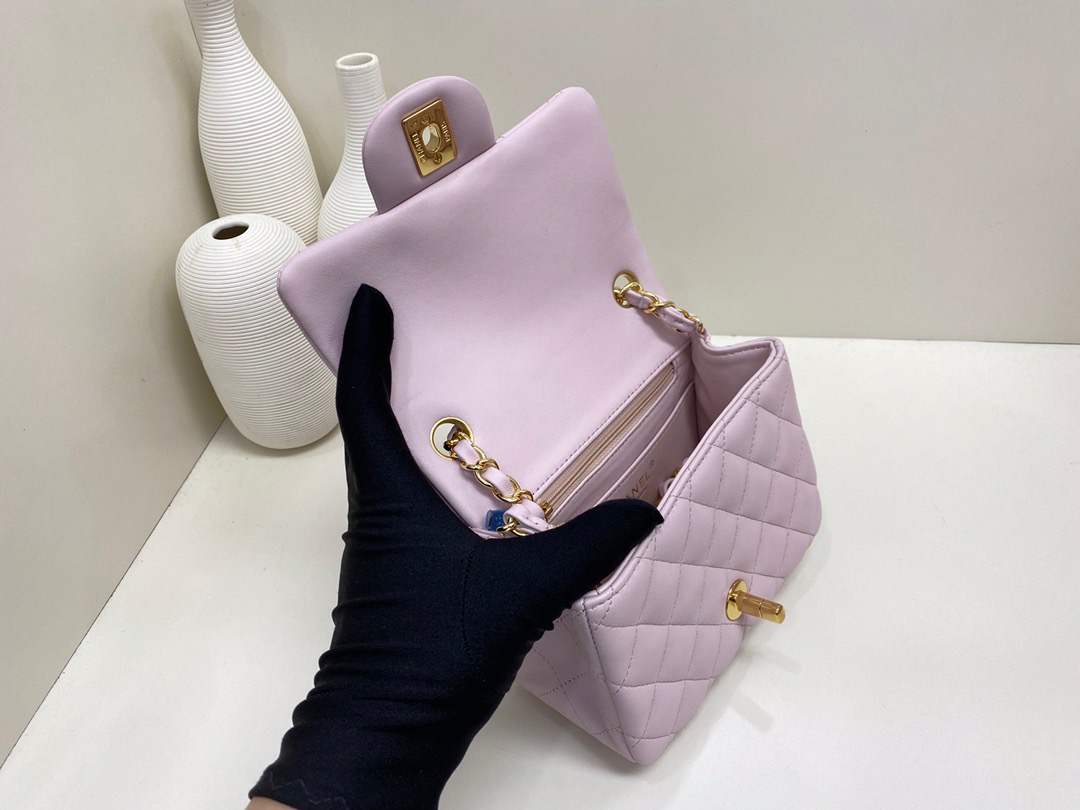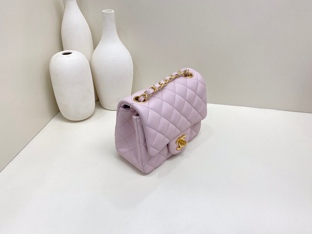 Classic Flap classic Imported lambskin. All copper hardware. Light Pink. Gold Buckle 17cm