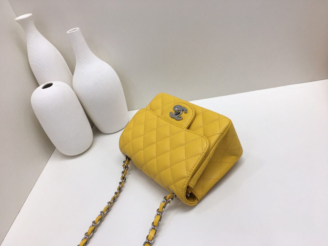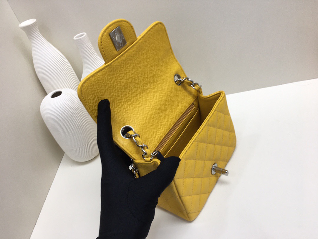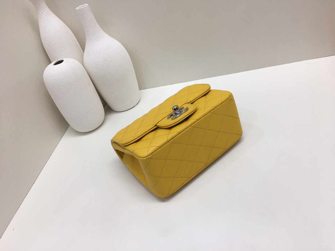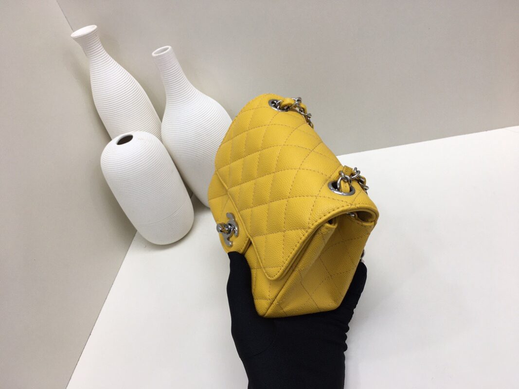 Chanel Classic Flap Lime Calfskin caviar leather. Full copper hardware. Silver Buckle 17cm