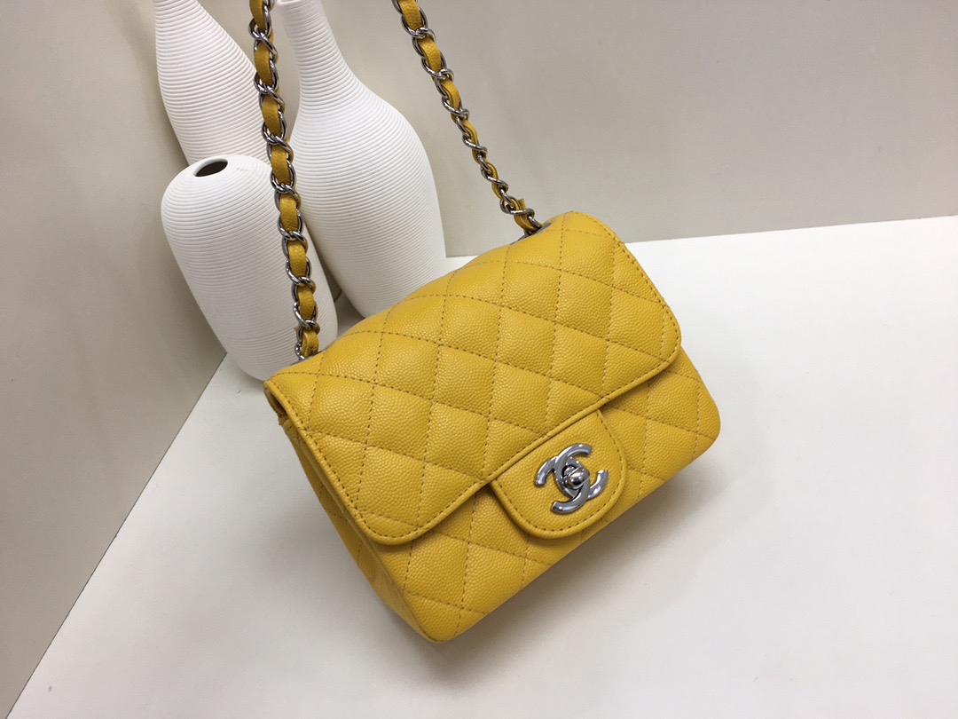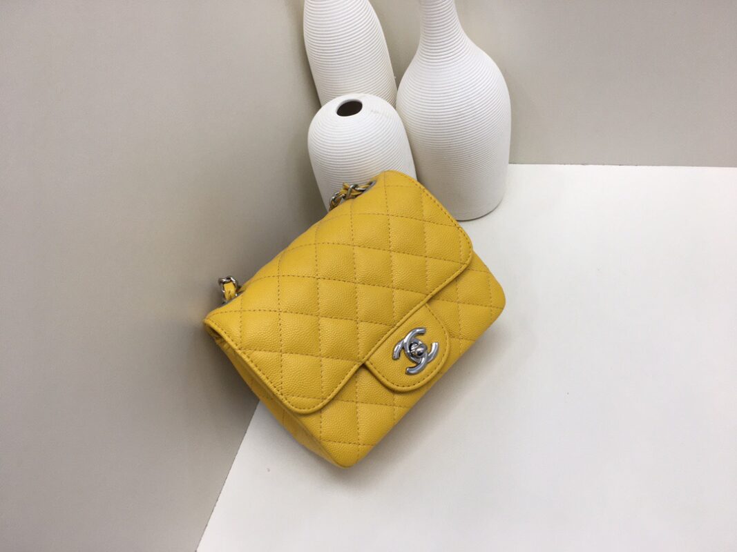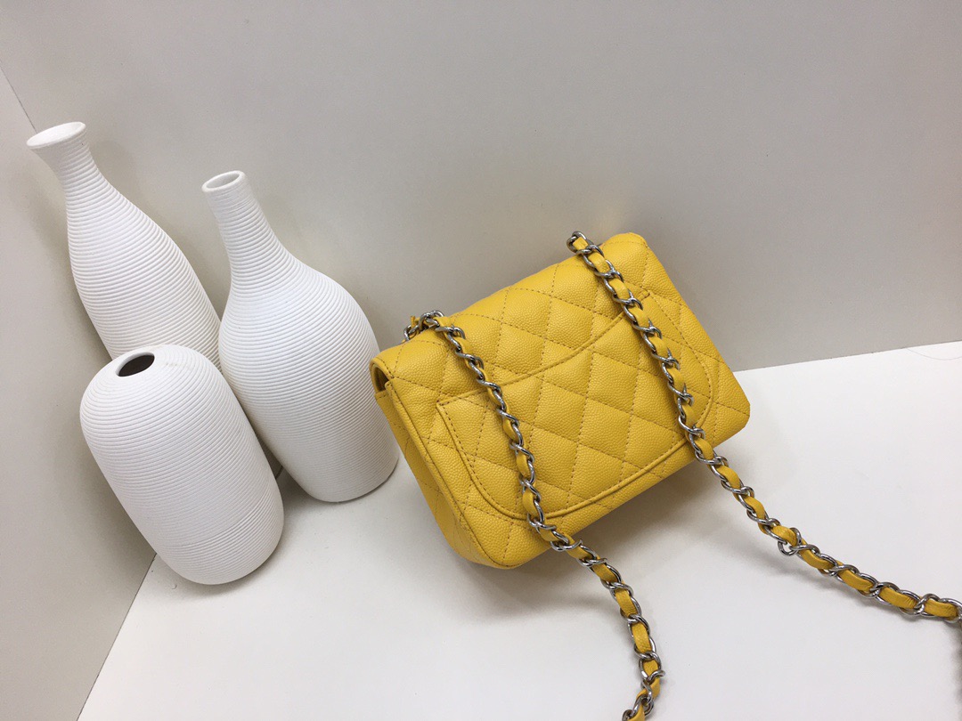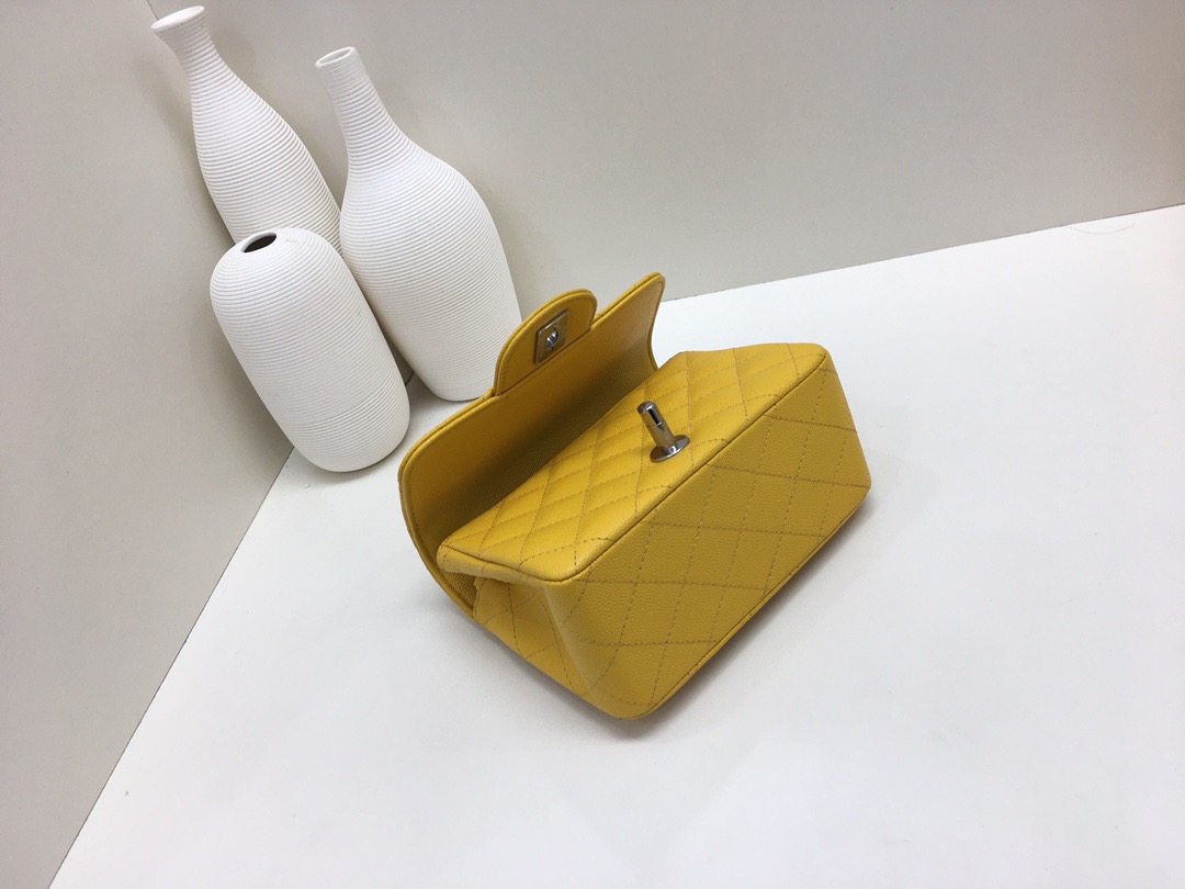 Chanel Classic Flap Lime Calfskin caviar leather. Full copper hardware. Silver Buckle 17cm