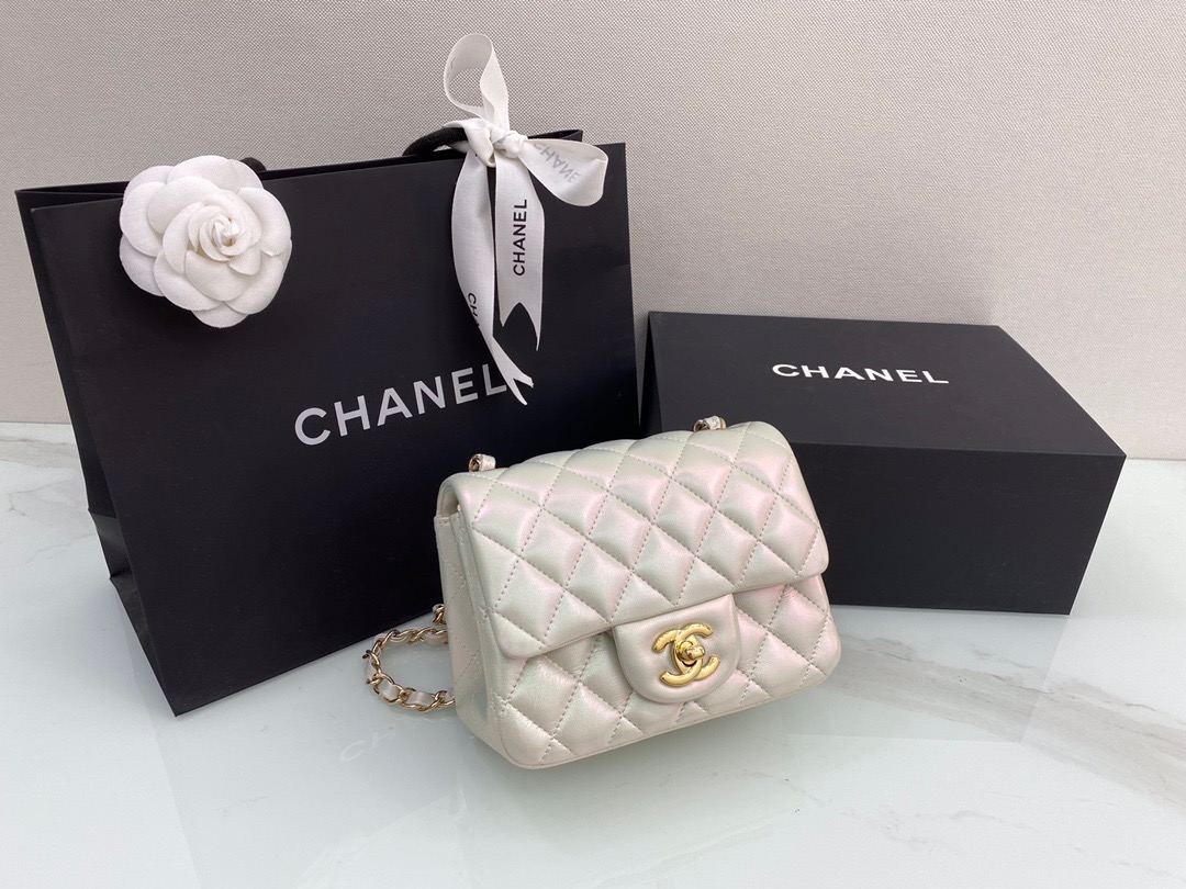 πΎπππ£ππ‘ 21Classic Flap. Pearl Apricot. Lambskin 17cm
