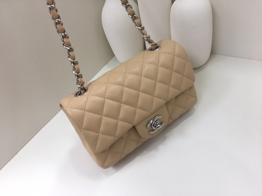 Classic Flap Classic Caviar leather. All copper hardware. Apricot. Silver Buckle 20cm