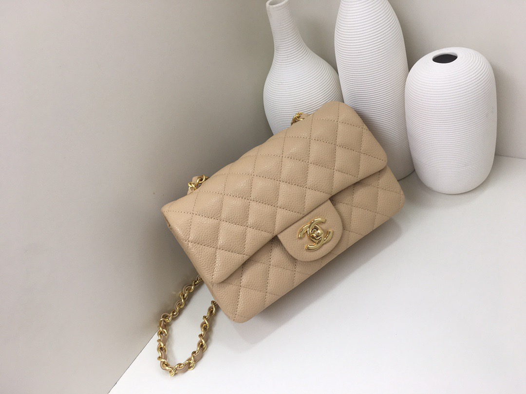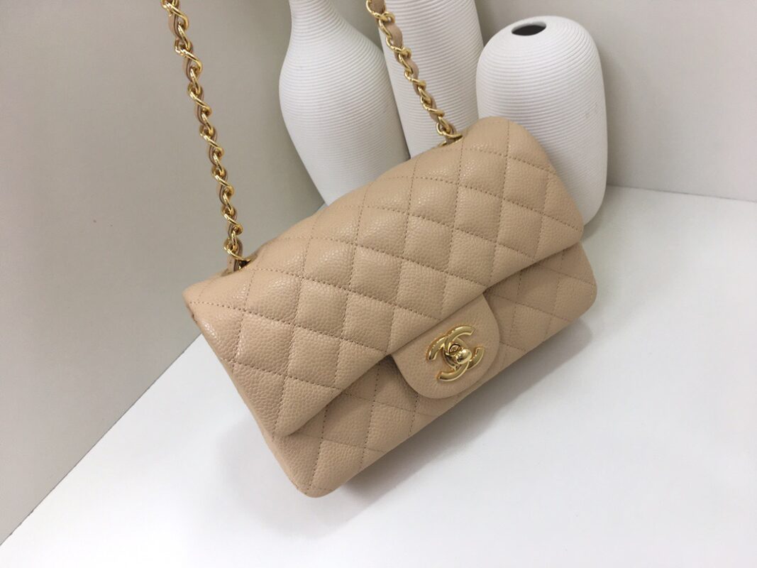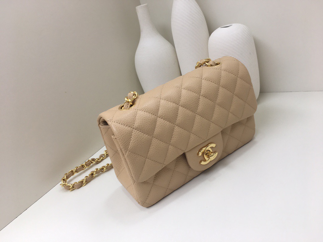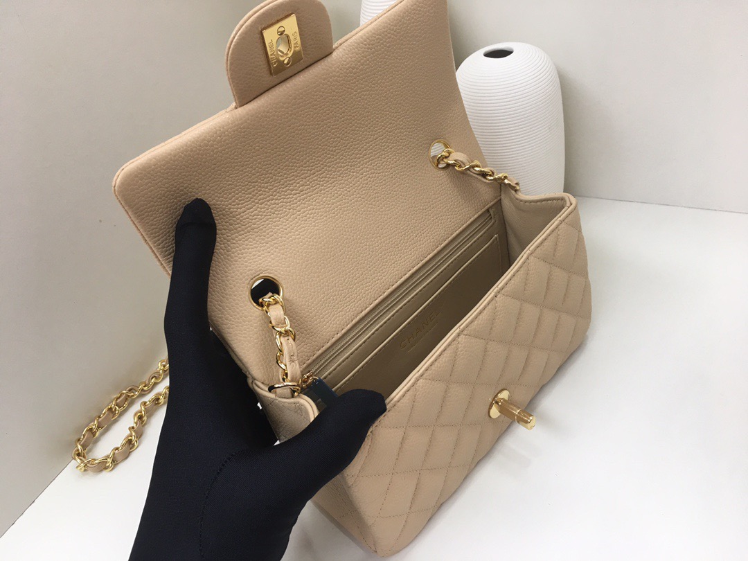 Chanel Classic Flap Calfskin Caviar. Full copper hardware. Apricot. Gold Buckle 20cm