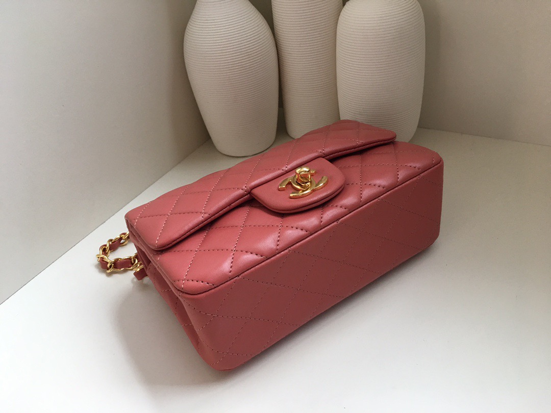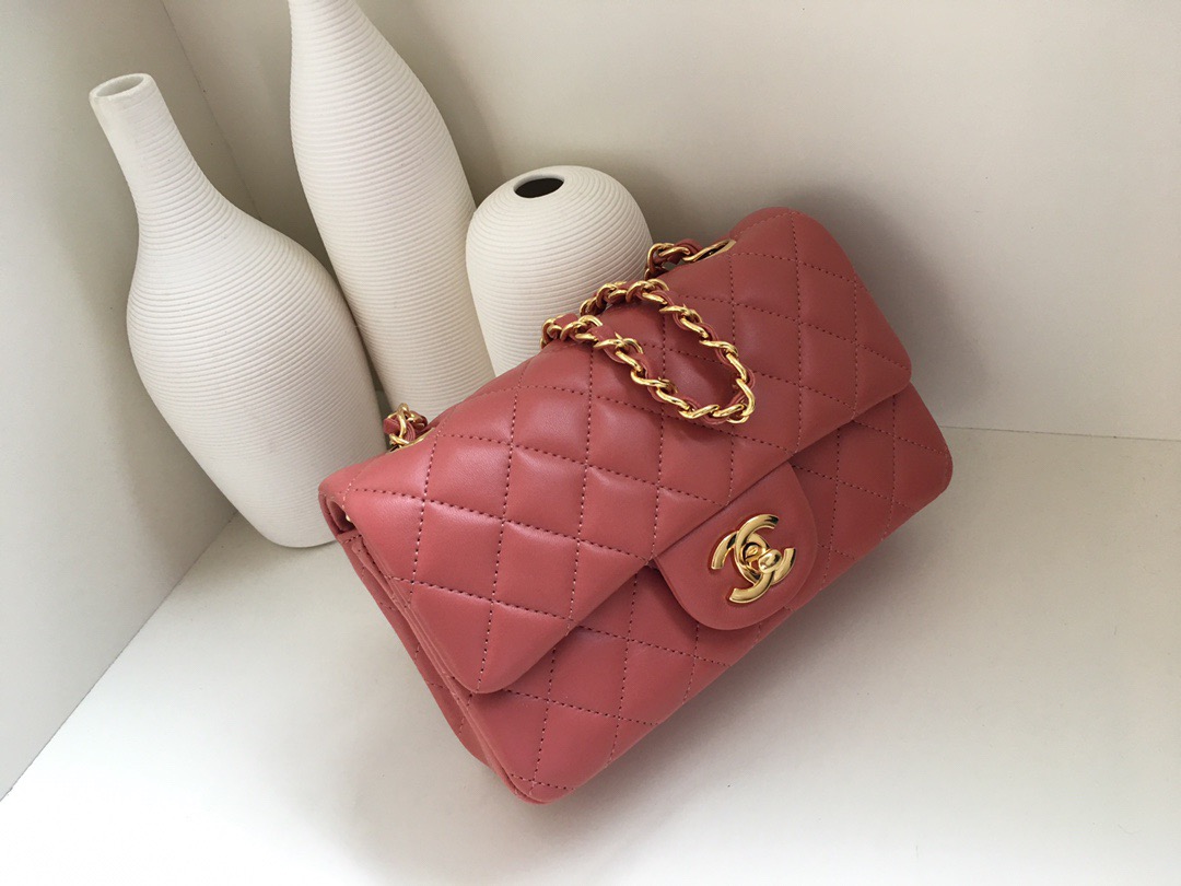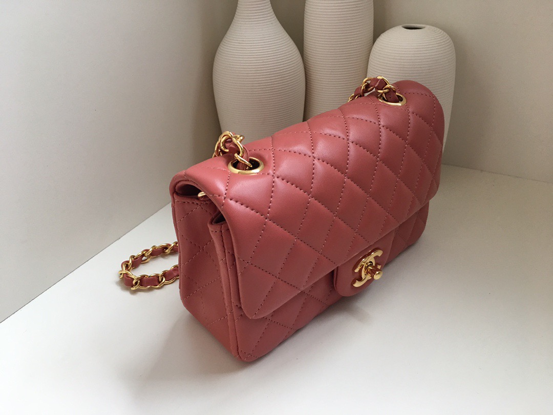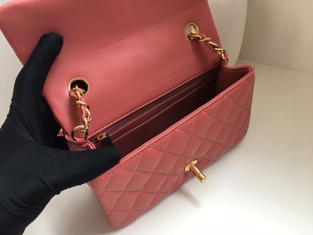 Chanel Classic Flap Lambskin. All copper hardware. New mini. Bean Paste Pink. Gold Buckle 20cm