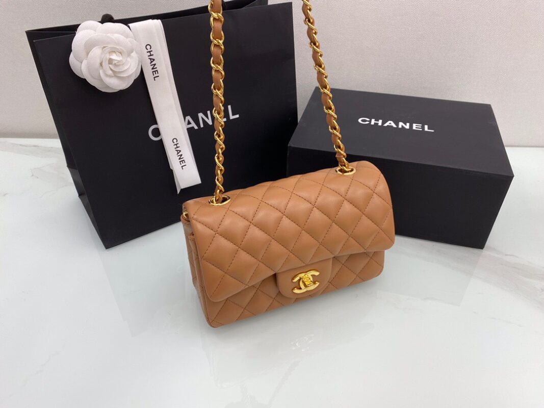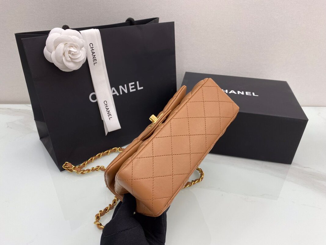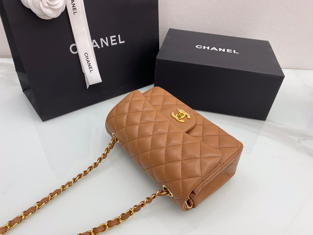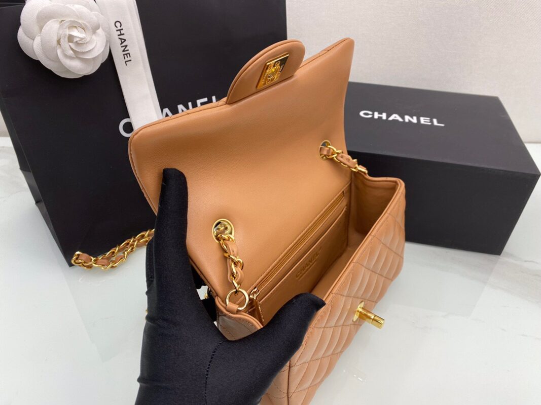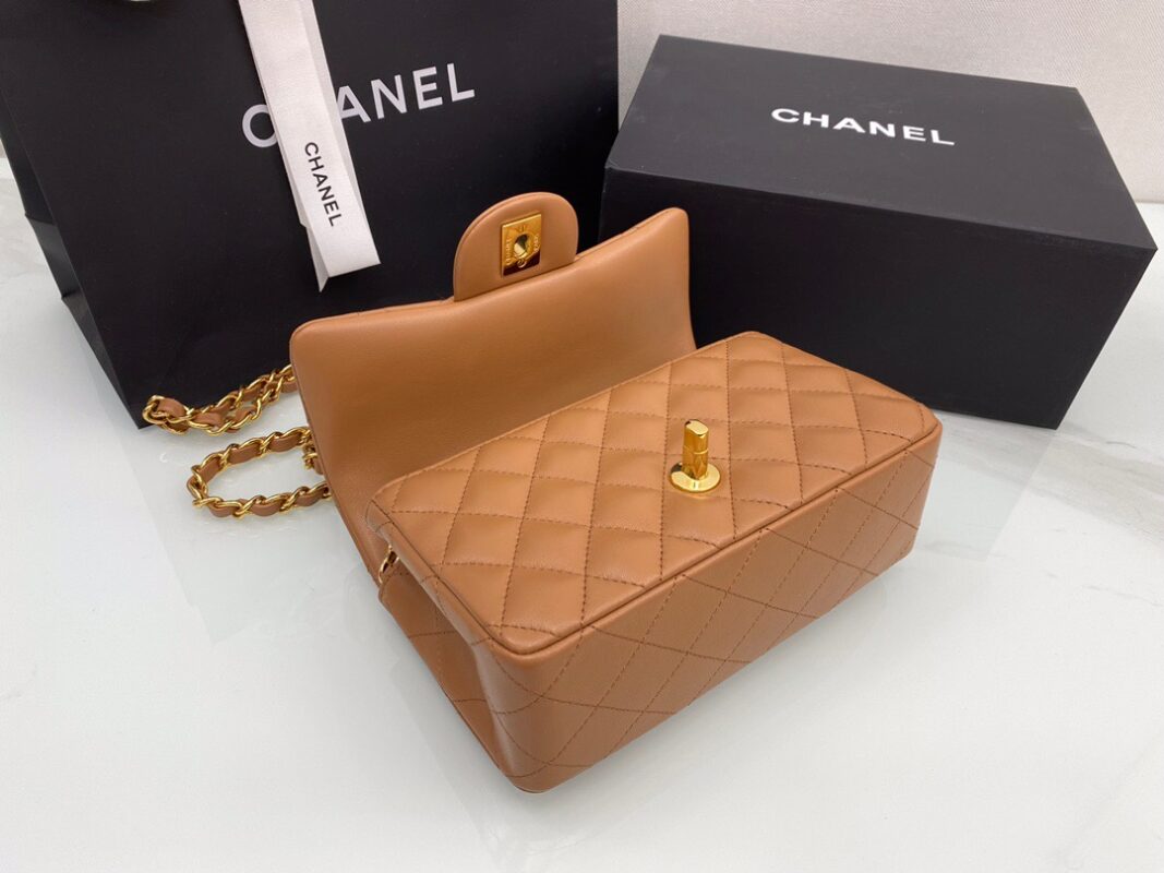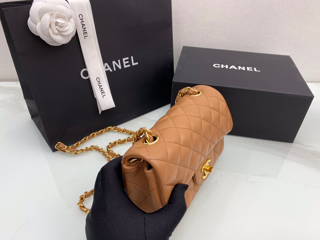 Chanel Classic Flap Imported lambskin. All copper hardware. Caramel. Gold Buckle 20cm