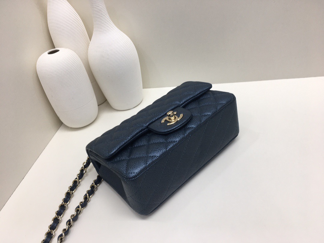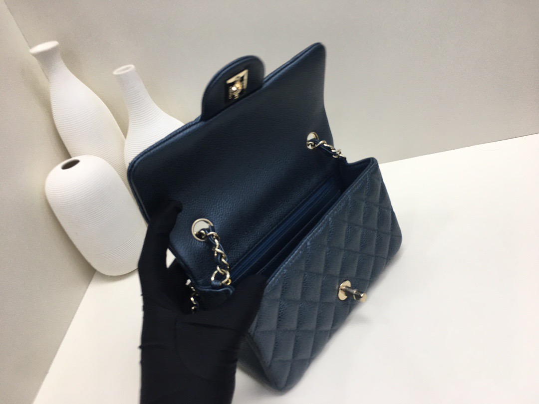 Chanel Classic Flap Calfskin caviar leather. Full copper hardware. Cobalt Blue. Gold Buckle 20cm