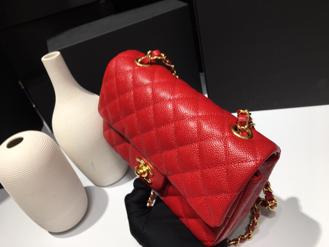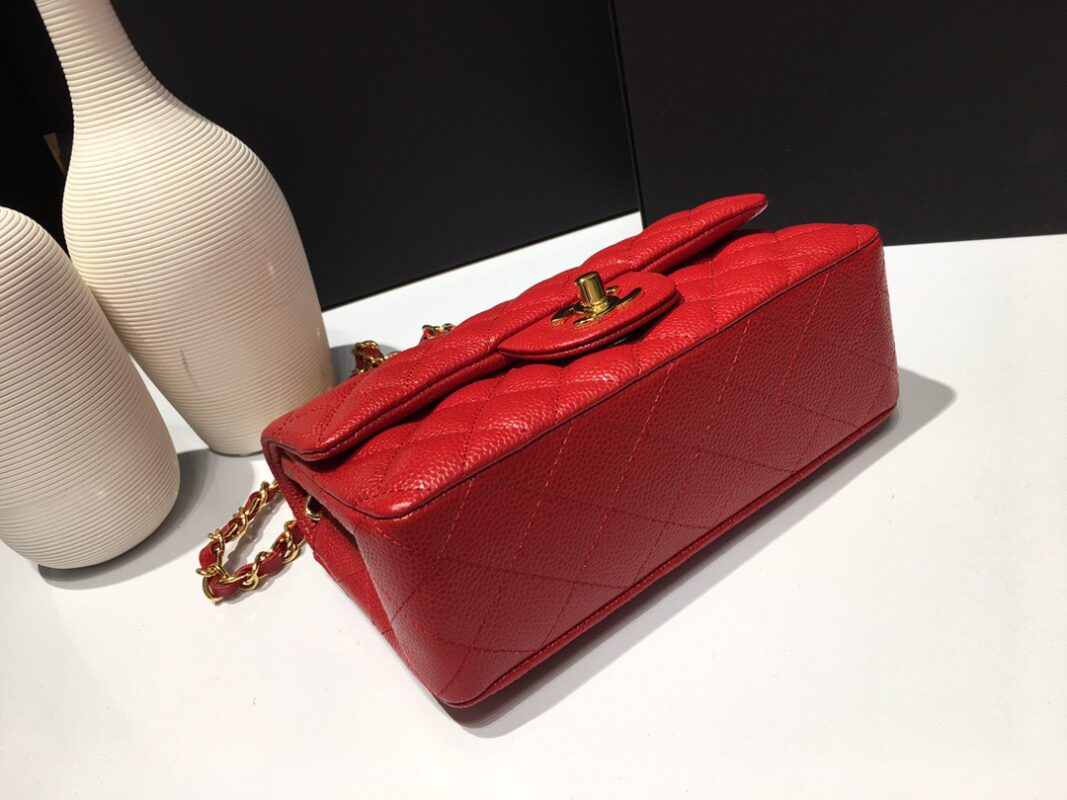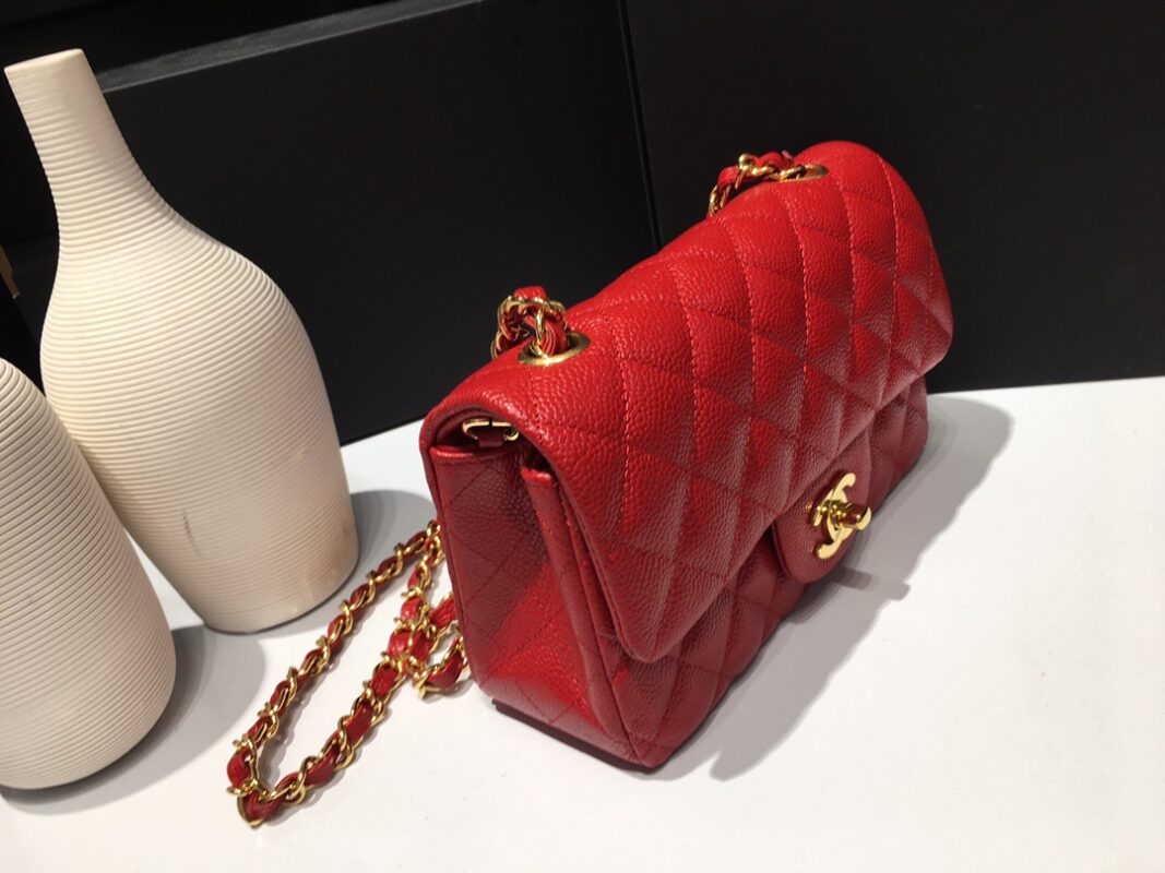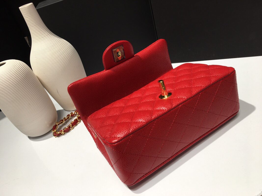 Chanel Classic Flap Mini Size Calfskin caviar leather. All copper hardware. Red 20cm