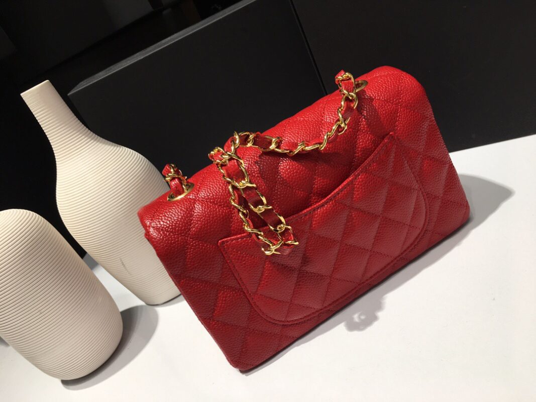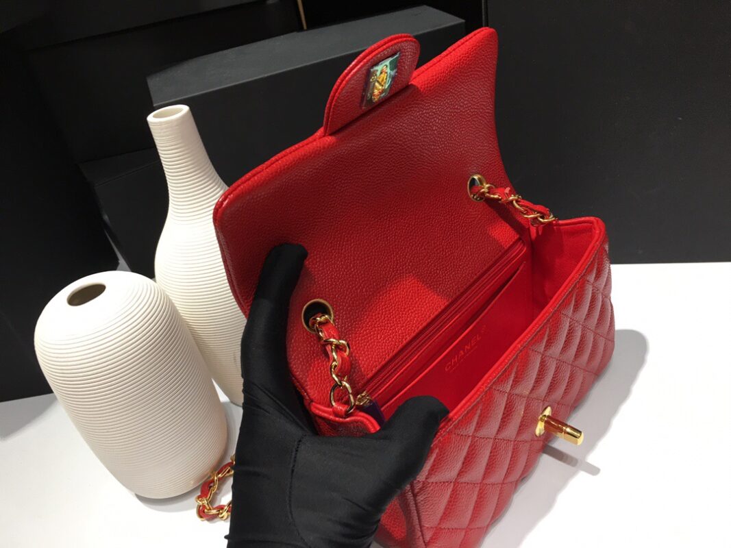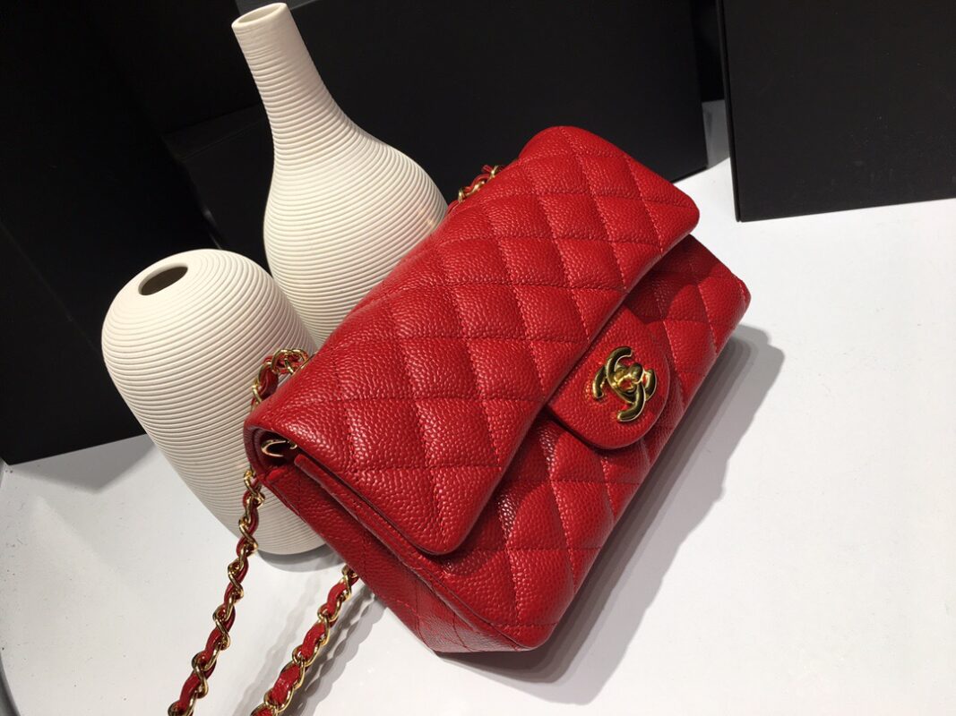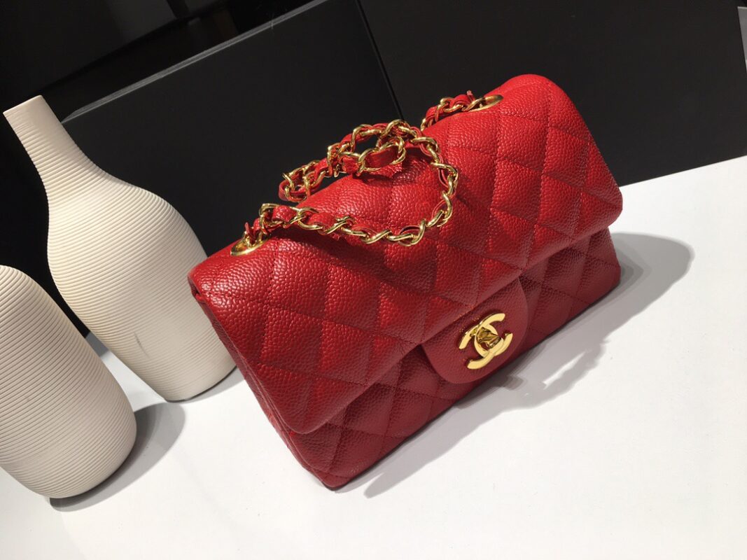 Chanel Classic Flap Mini Size Calfskin caviar leather. All copper hardware. Red 20cm