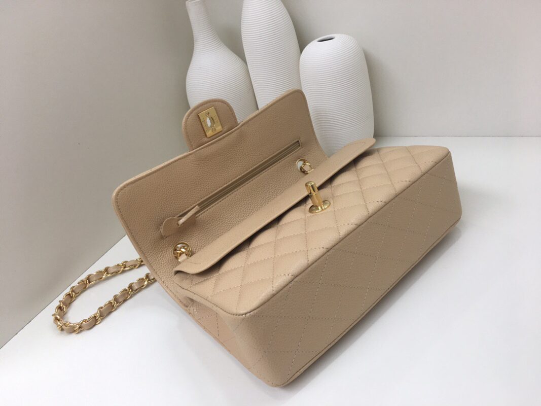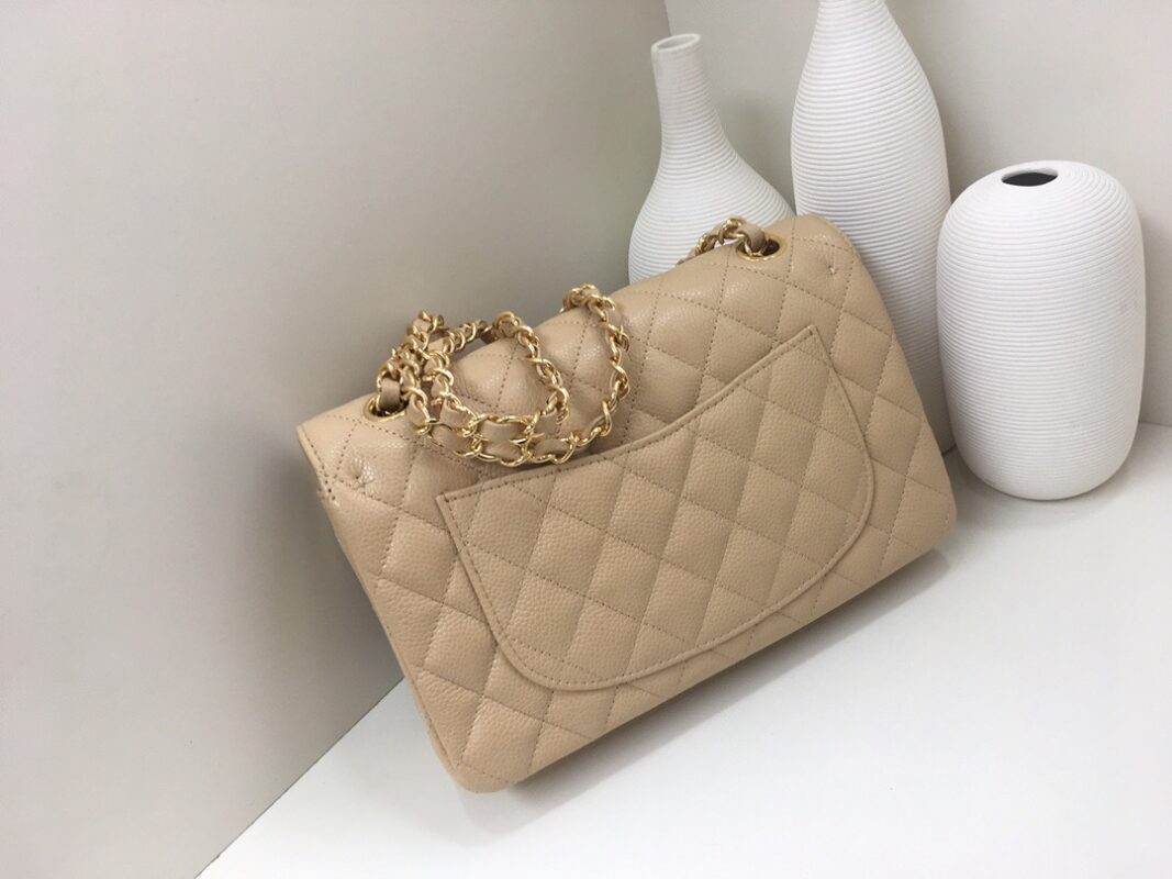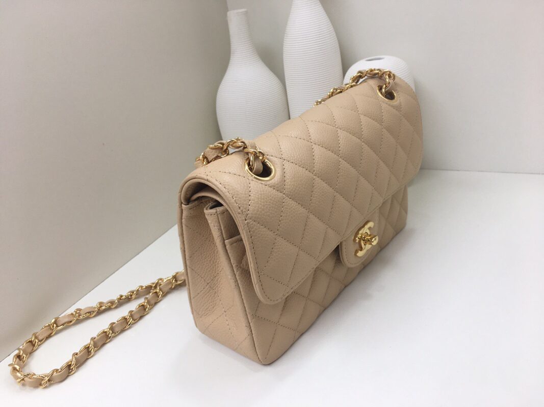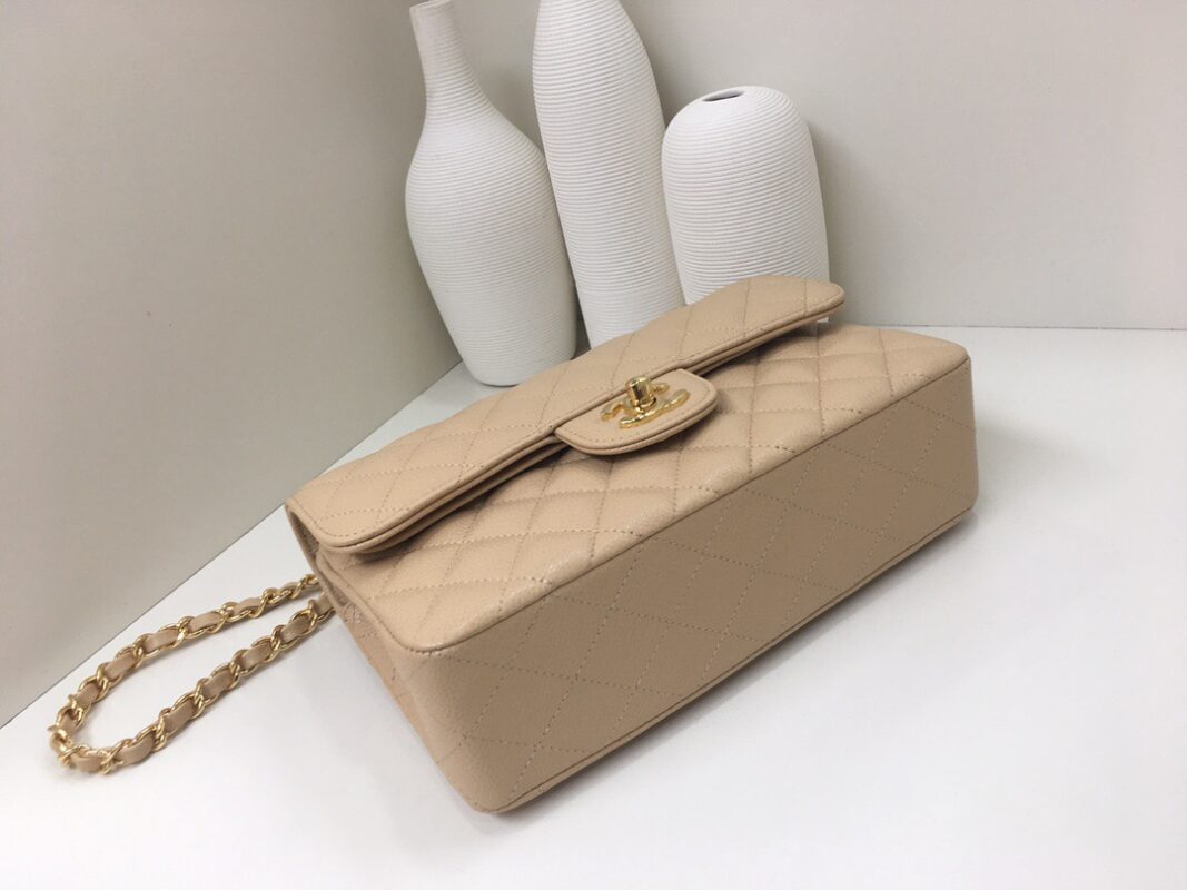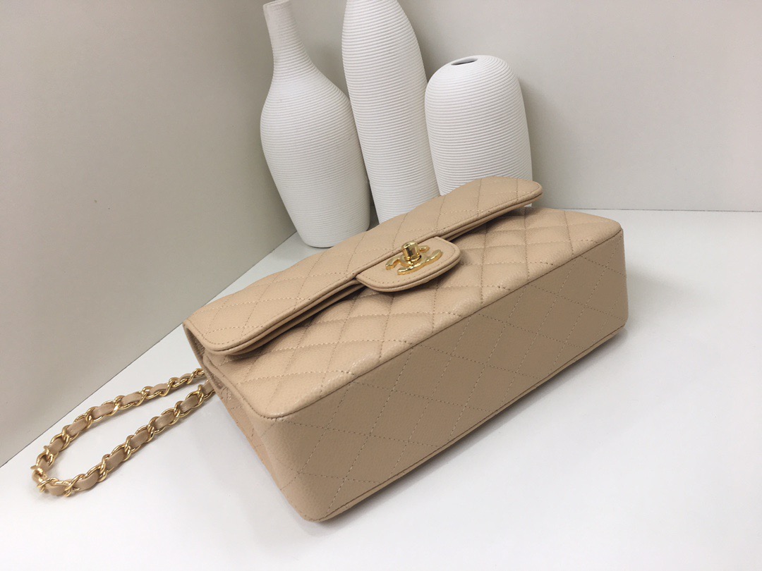 Chanel Classic Flap Calfskin Caviar leather. All copper hardware. Apricot. Gold Buckle 23cm