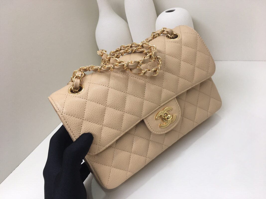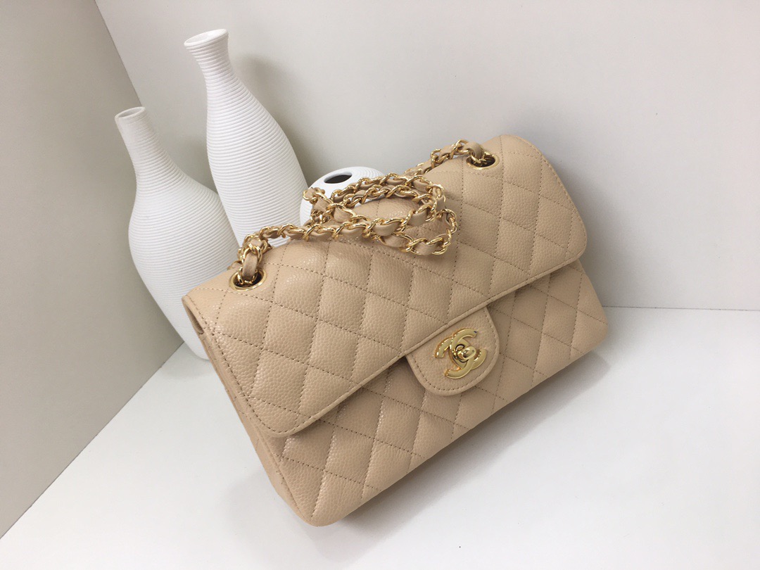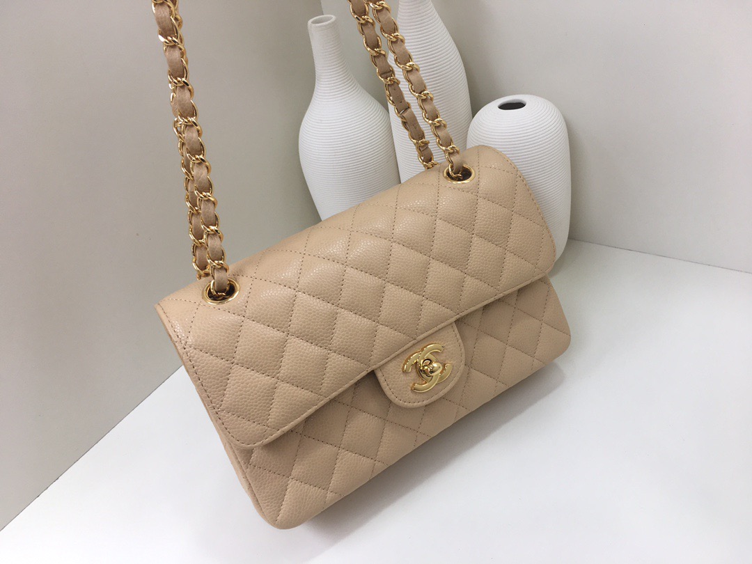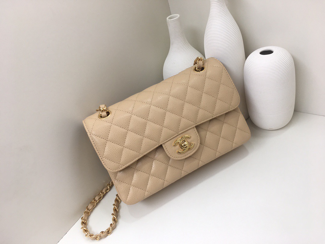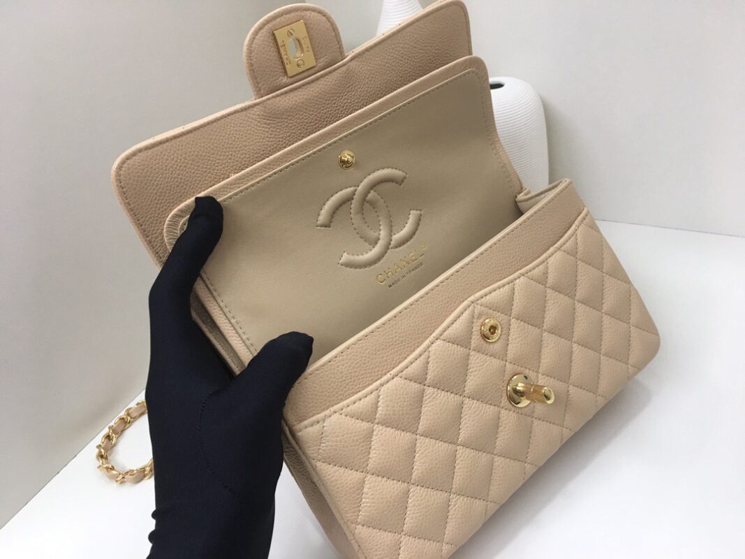 Chanel Classic Flap Calfskin Caviar leather. All copper hardware. Apricot. Gold Buckle 23cm