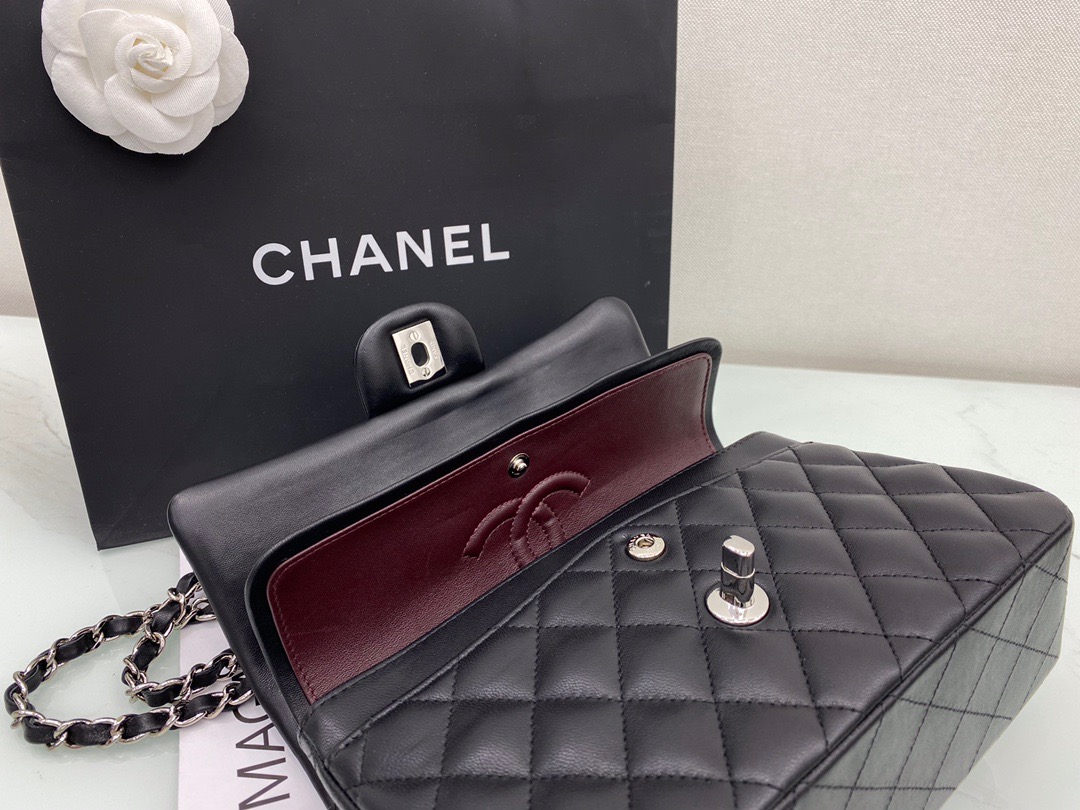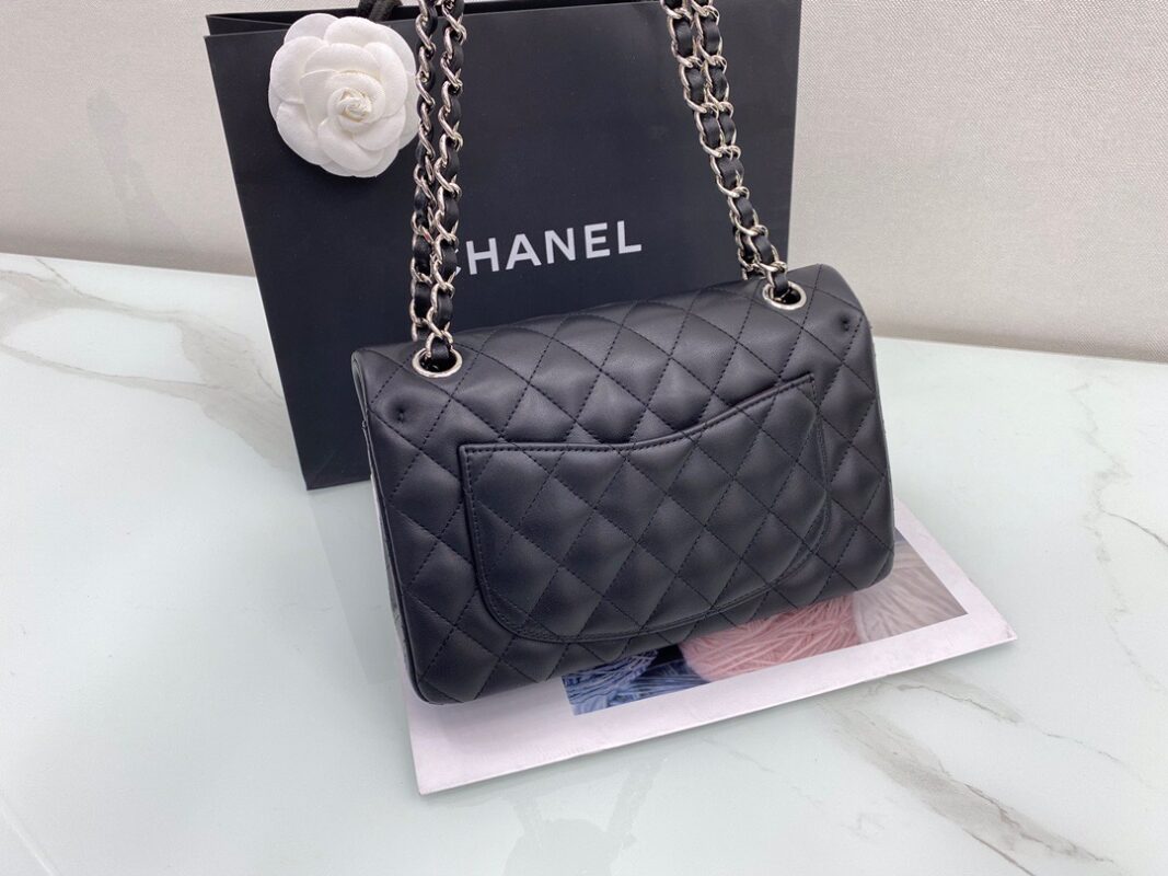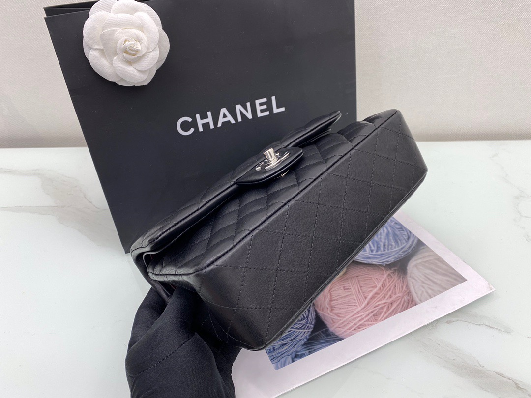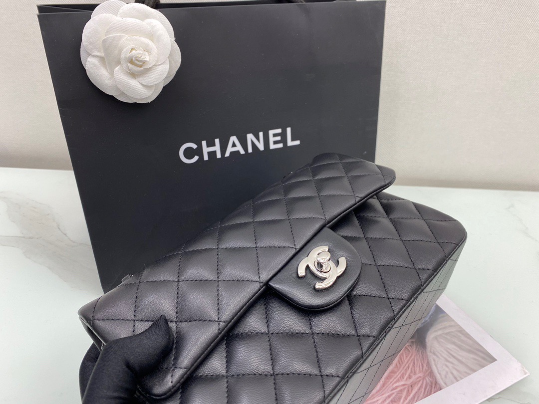 Chanel Classic Flap Imported lambskin. All copper hardware. Black. Silver Buckle 23cm
