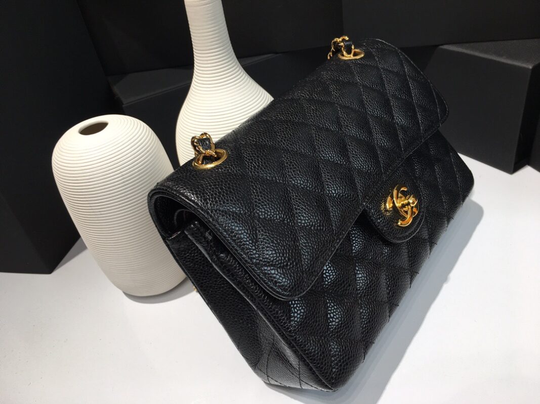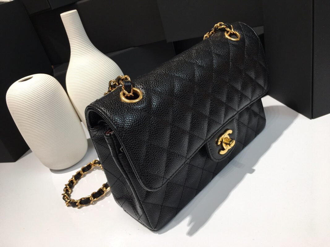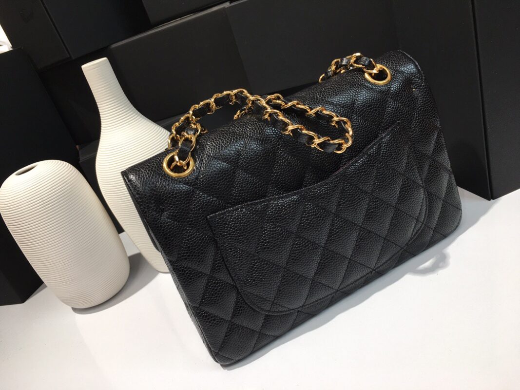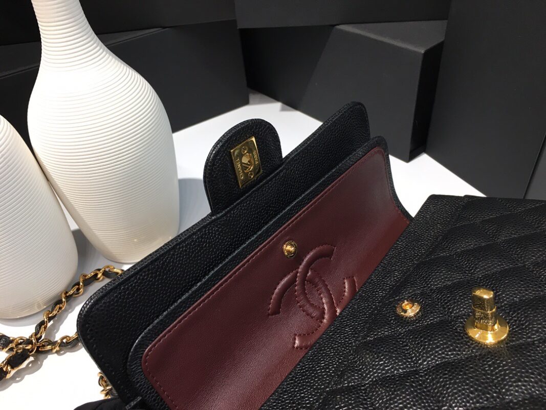 Classic Flap Classic Caviar leather. All copper hardware. Black. Gold Buckle 23cm