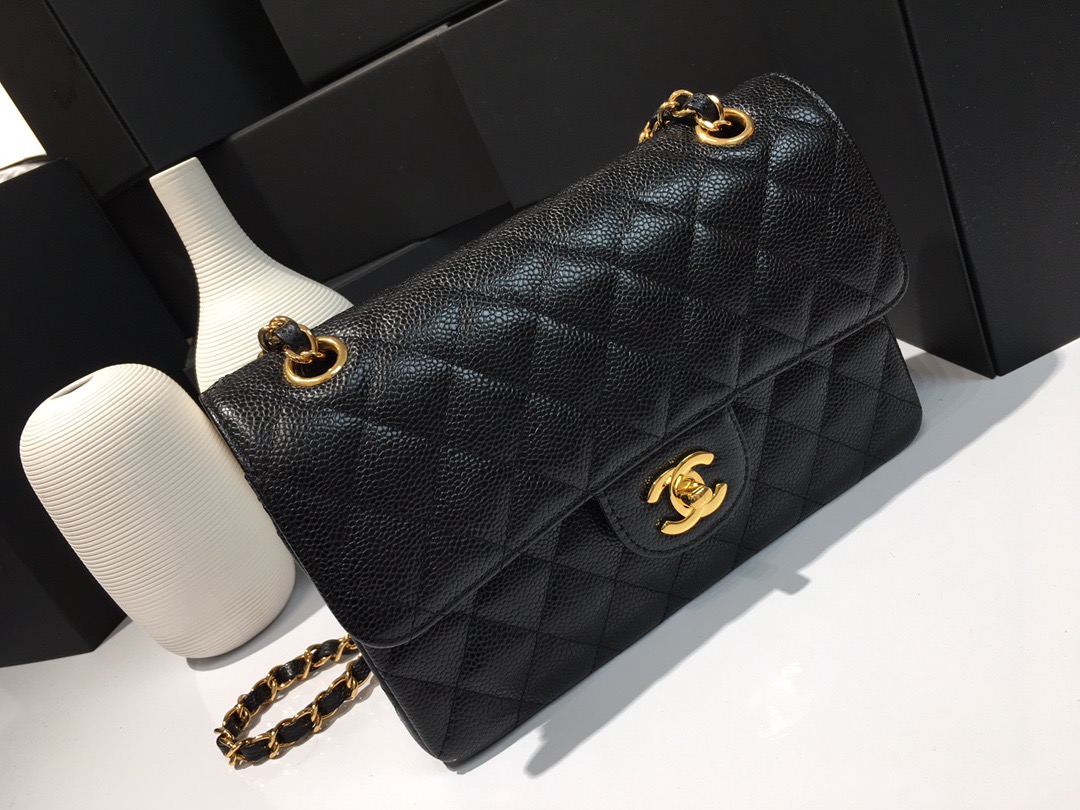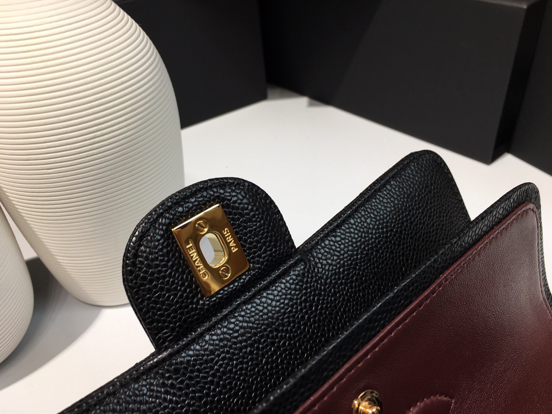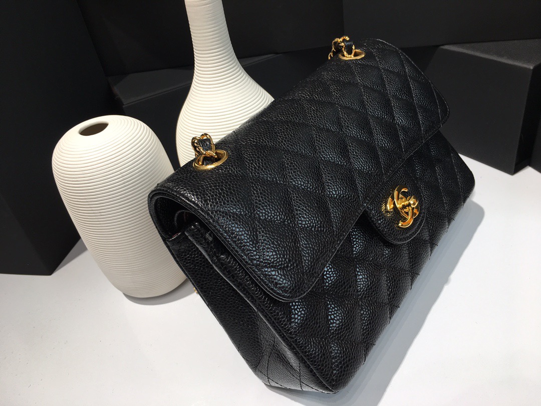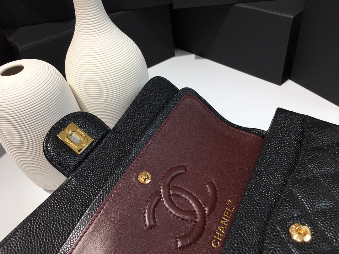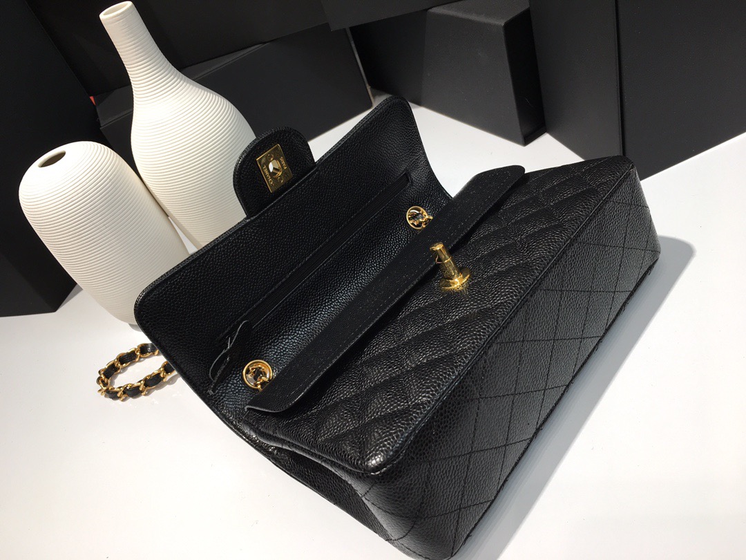 Classic Flap Classic Caviar leather. All copper hardware. Black. Gold Buckle 23cm