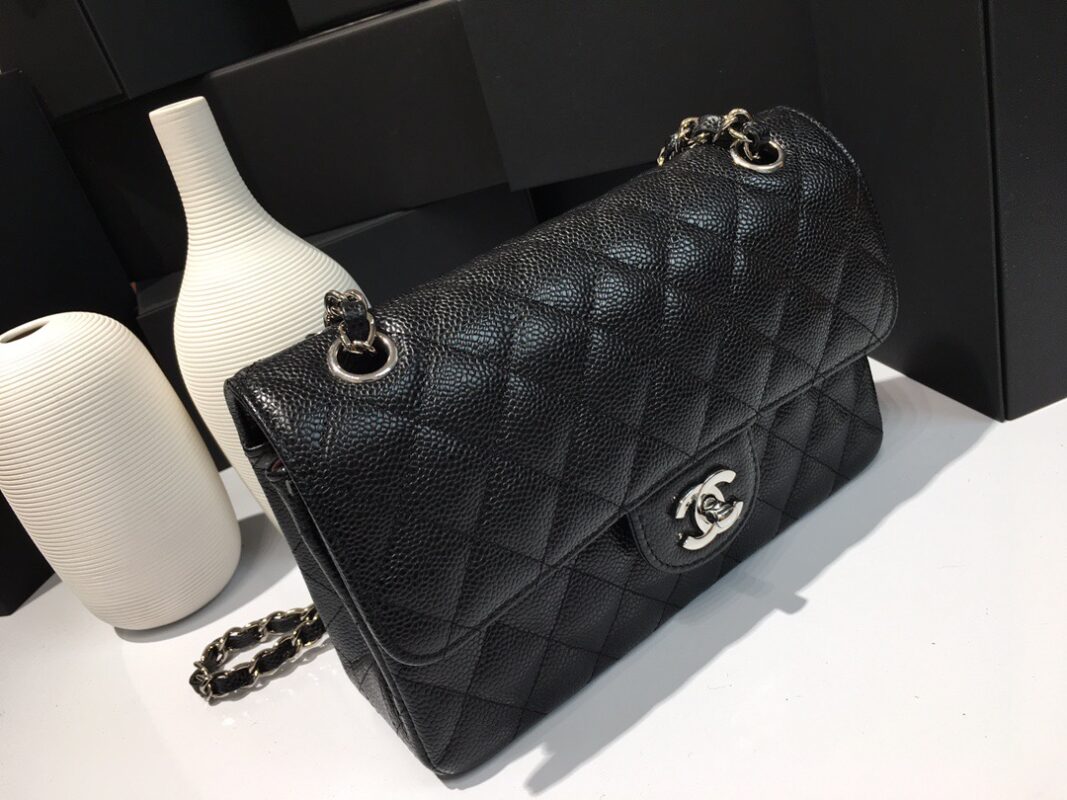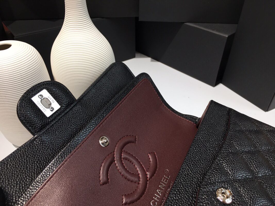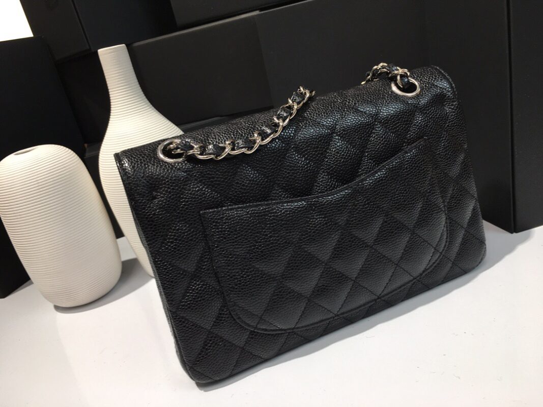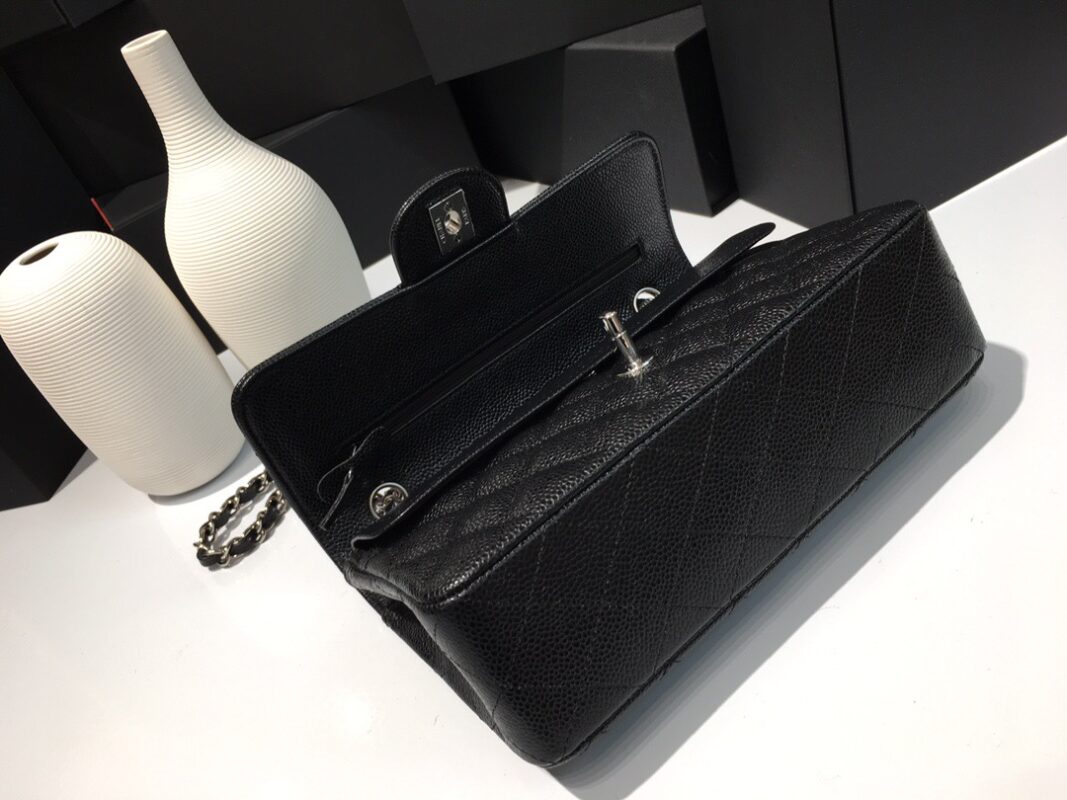 Chanel Classic Flap Caviar leather. All copper hardware. Black. Silver Buckle 23cm