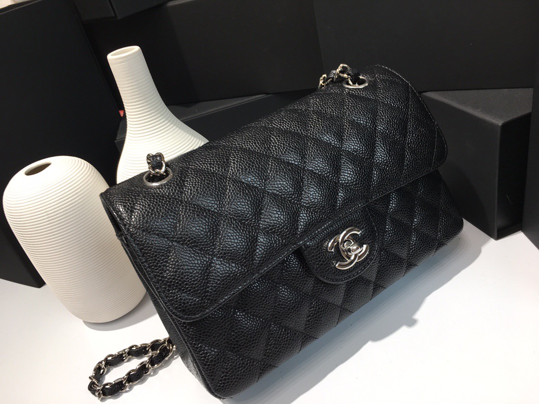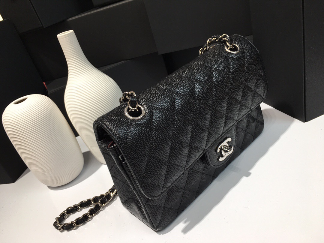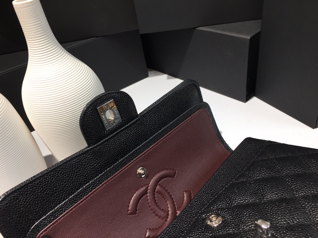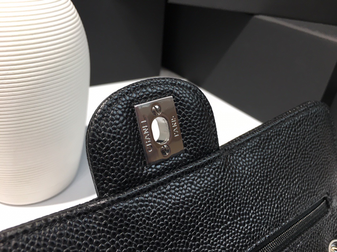 Chanel Classic Flap Caviar leather. All copper hardware. Black. Silver Buckle 23cm