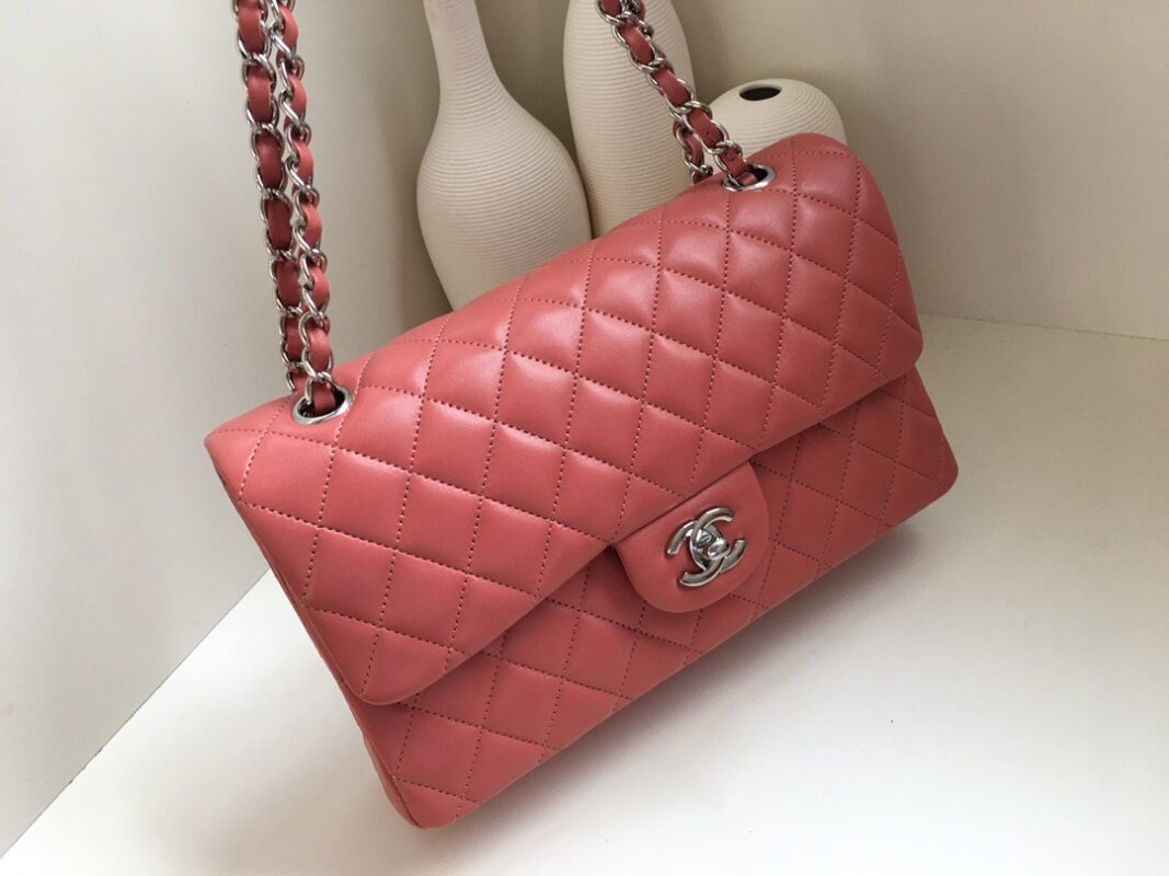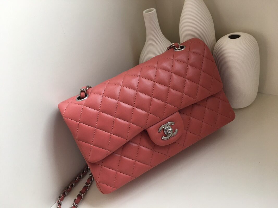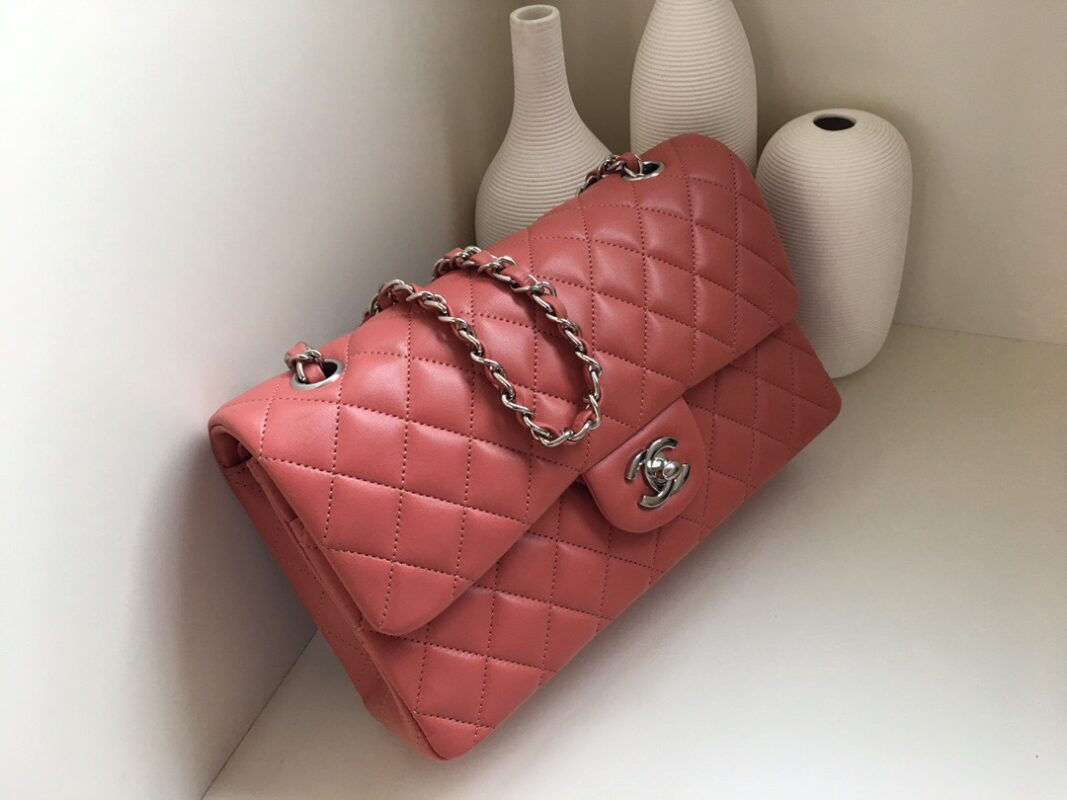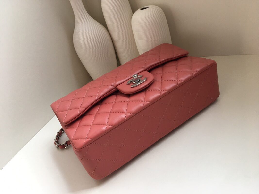 Chanel Flap Classic Lambskin. All copper hardware. Medium.Bean Paste Pink. Silver Buckle 25cm