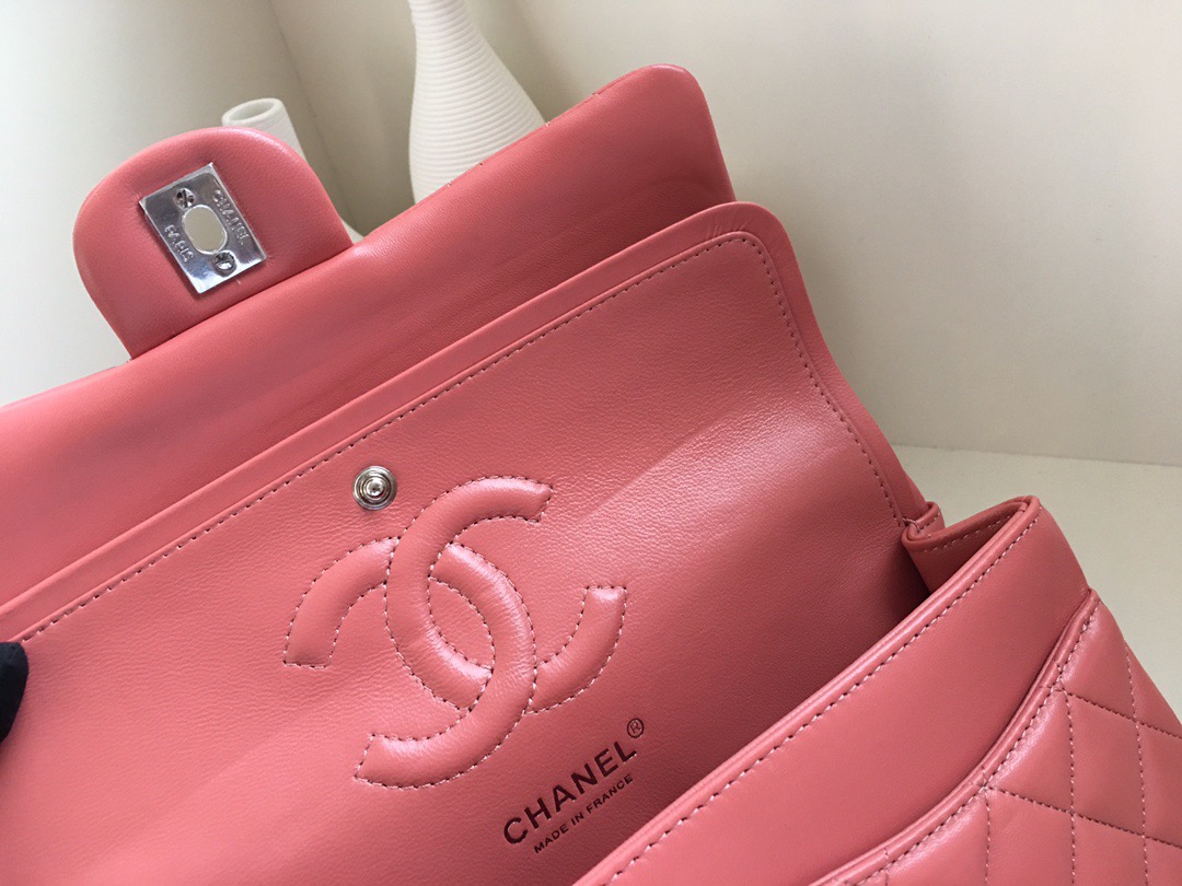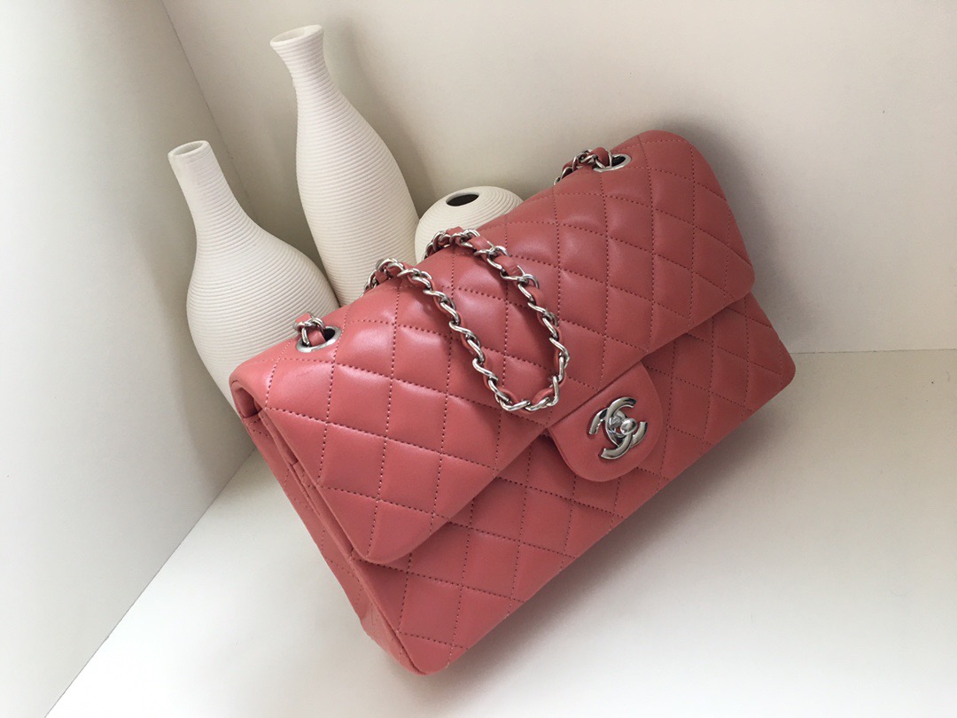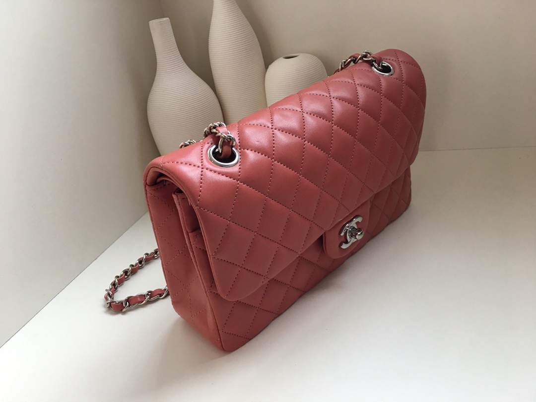 Chanel Flap Classic Lambskin. All copper hardware. Medium.Bean Paste Pink. Silver Buckle 25cm