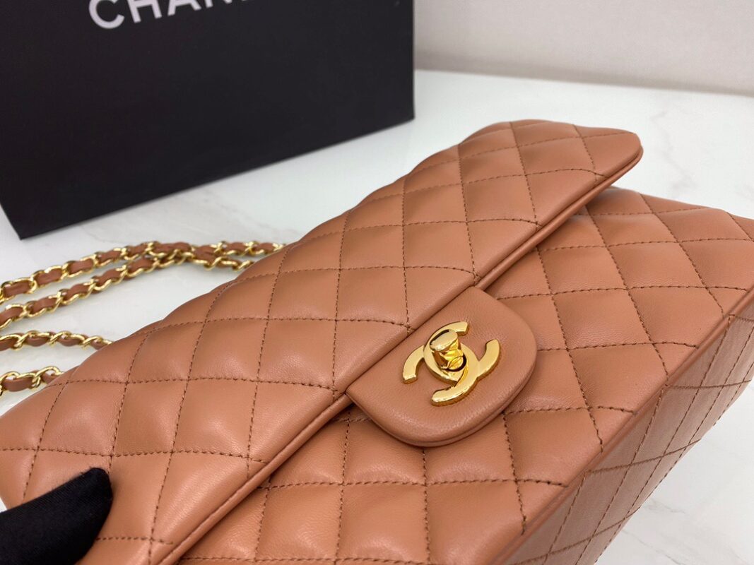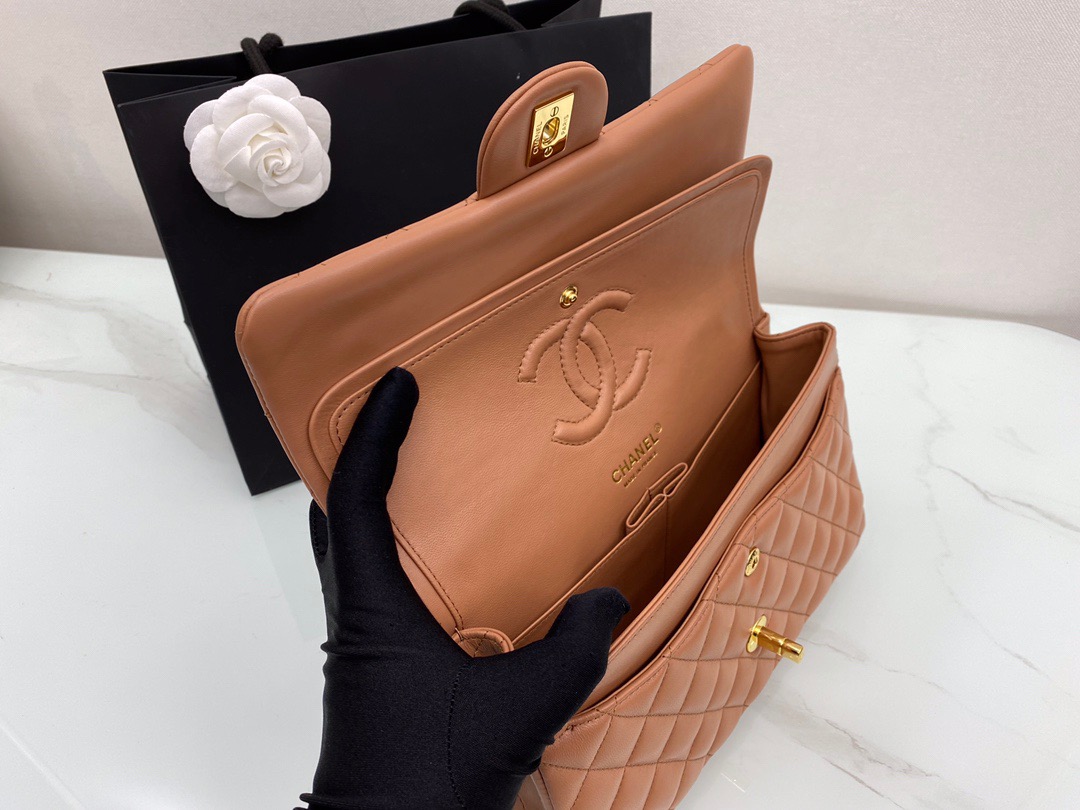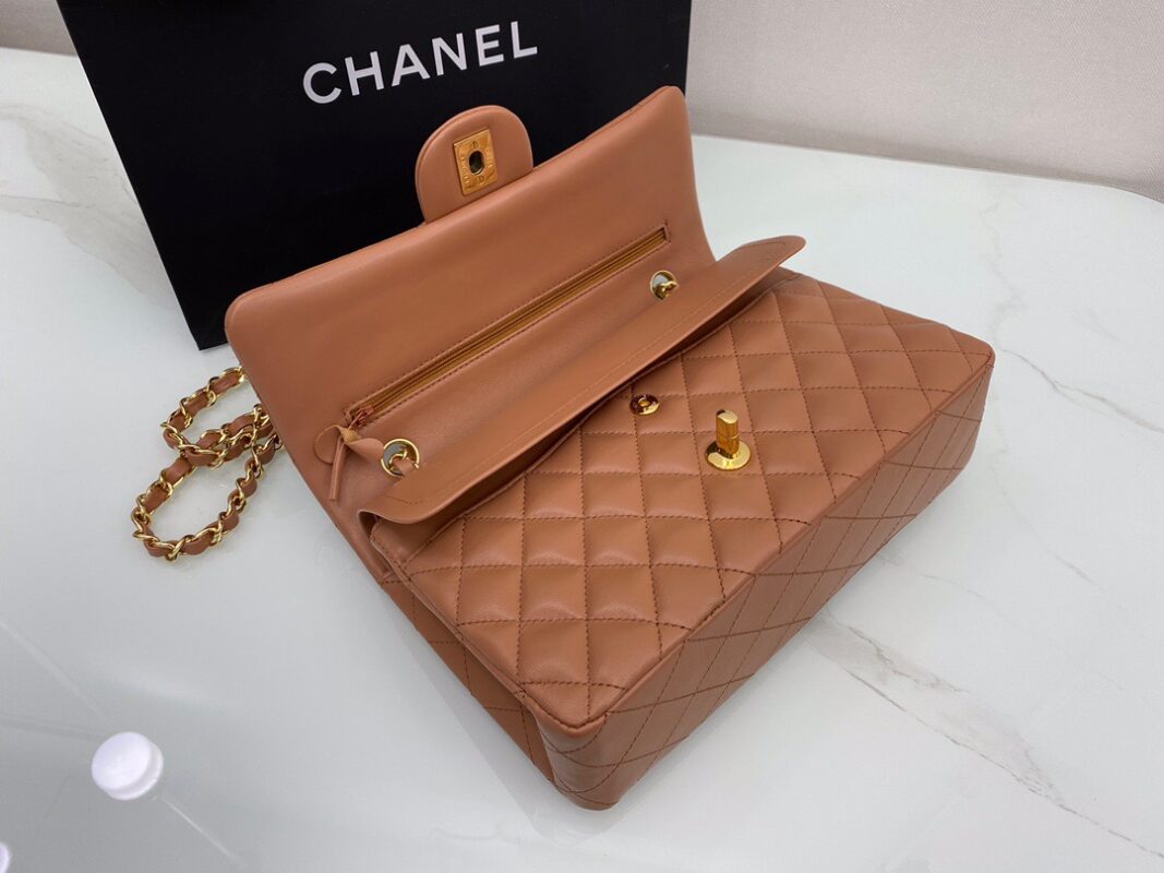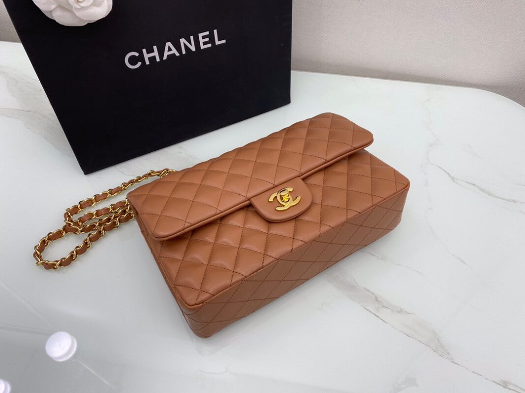 Chanel Classic FlapLambskin. Brown. Gold Buckle 25cm