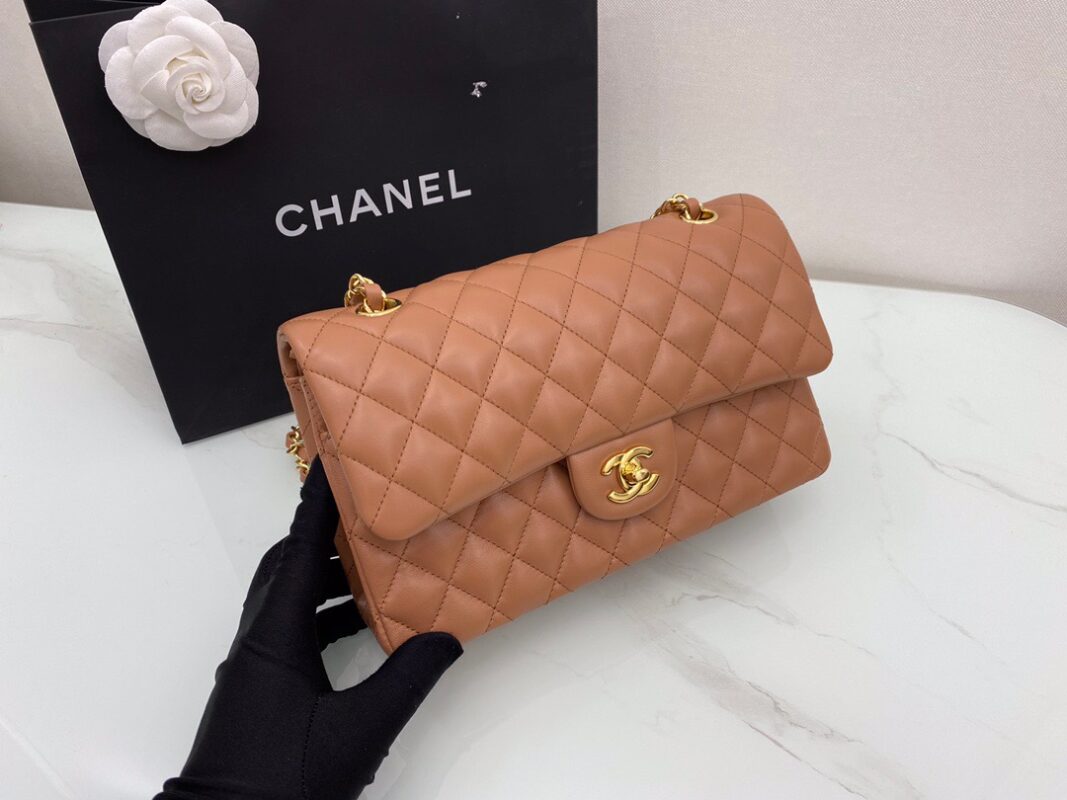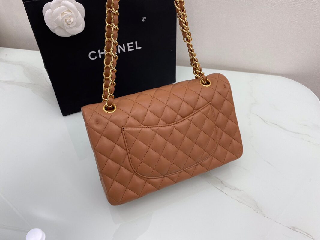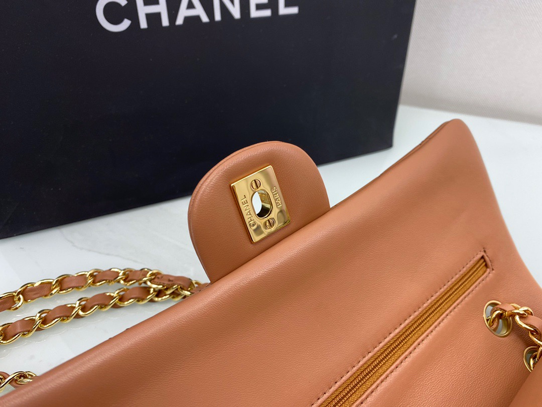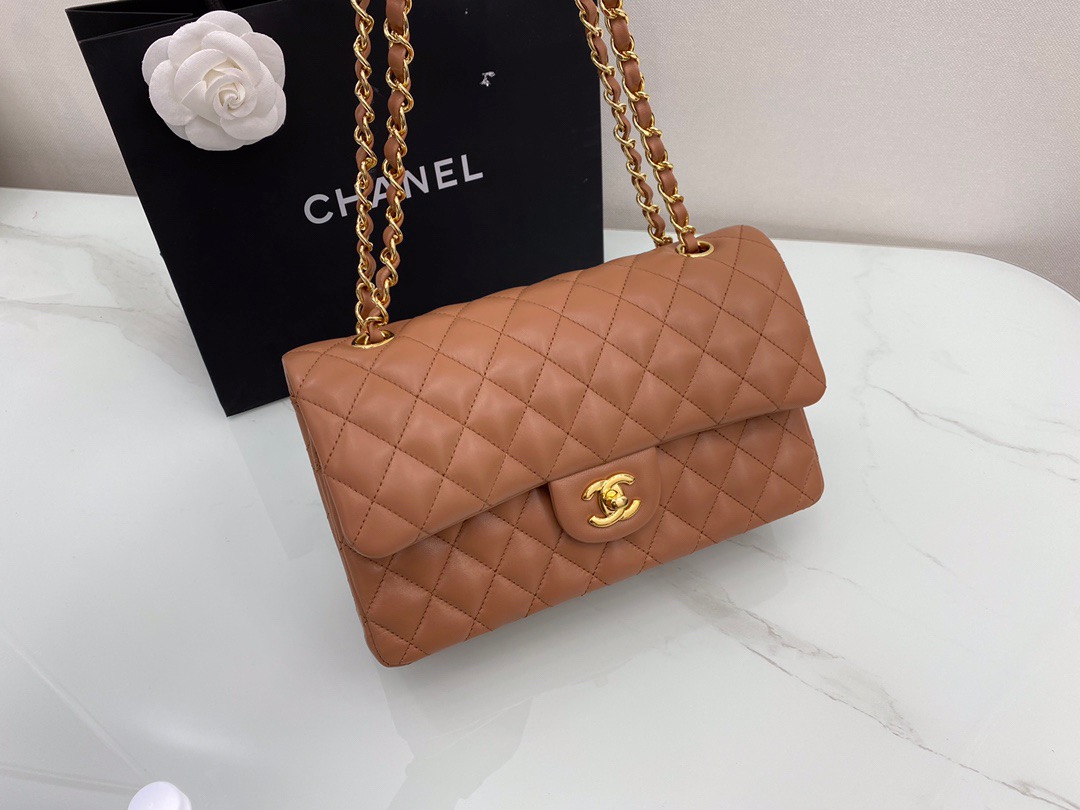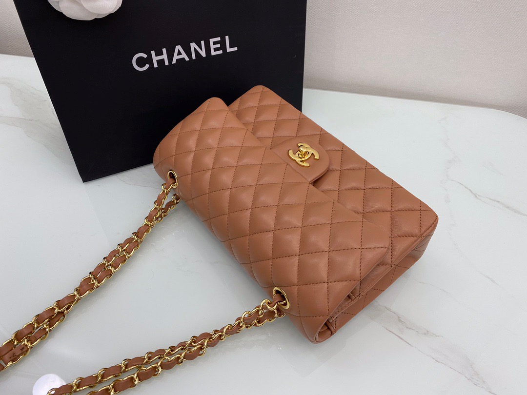 Chanel Classic FlapLambskin. Brown. Gold Buckle 25cm