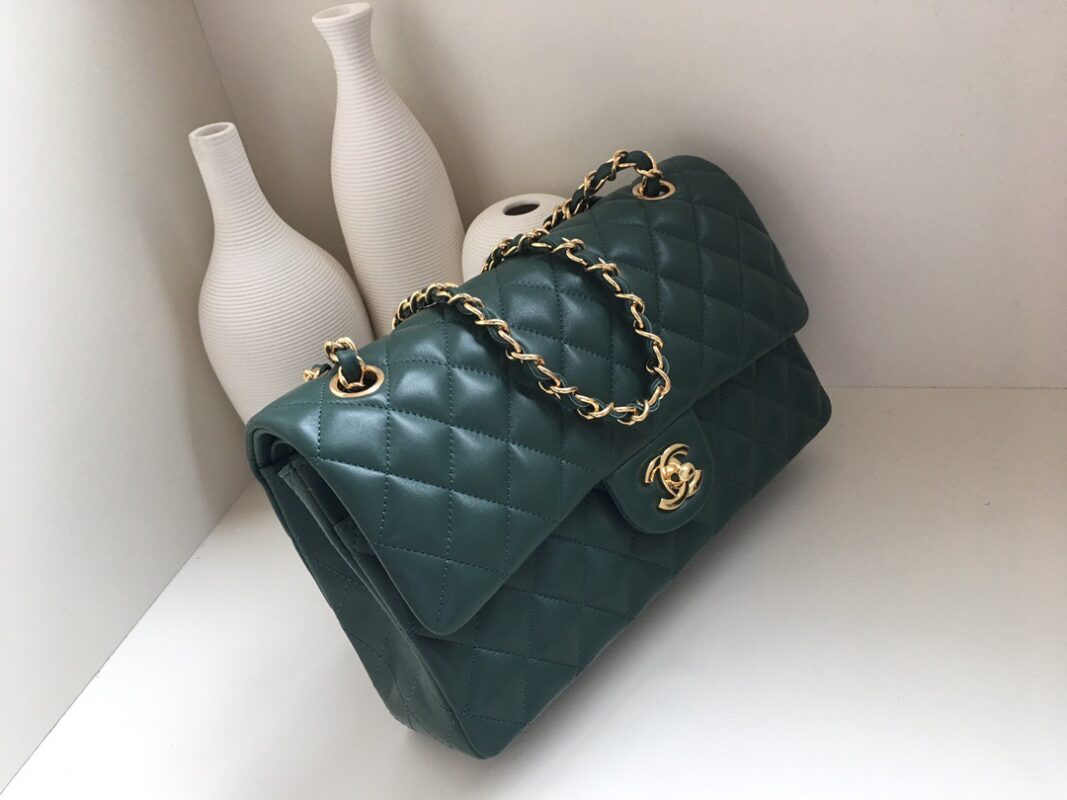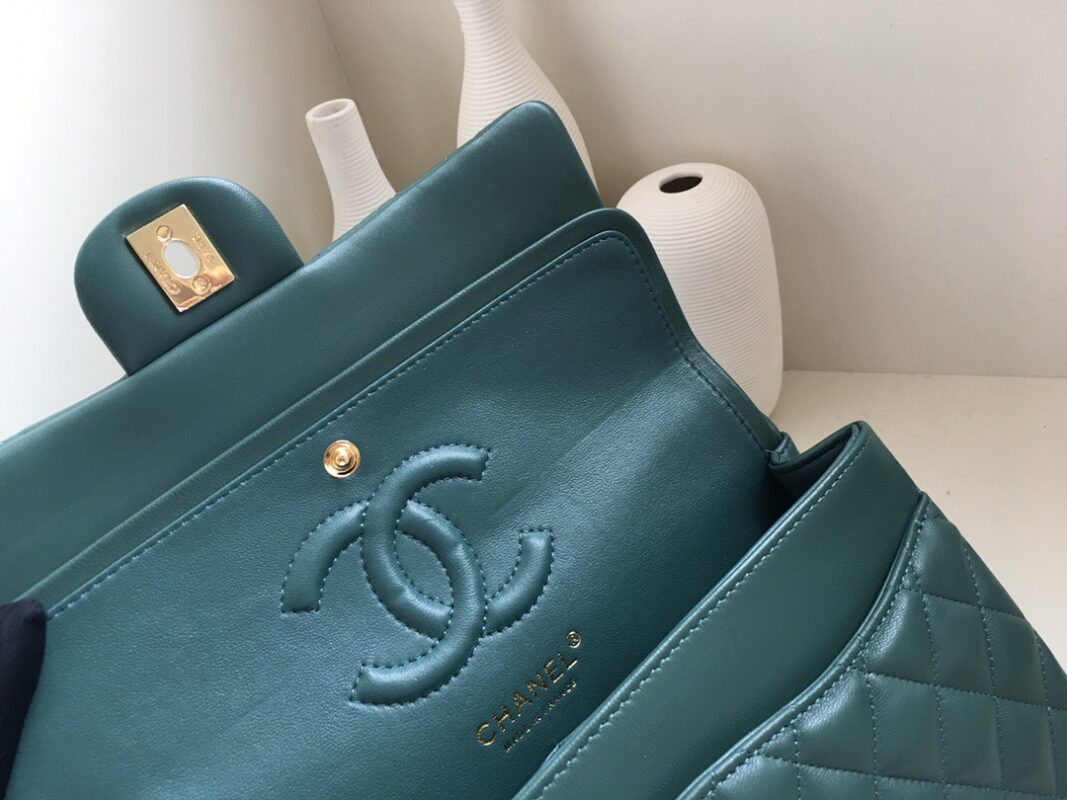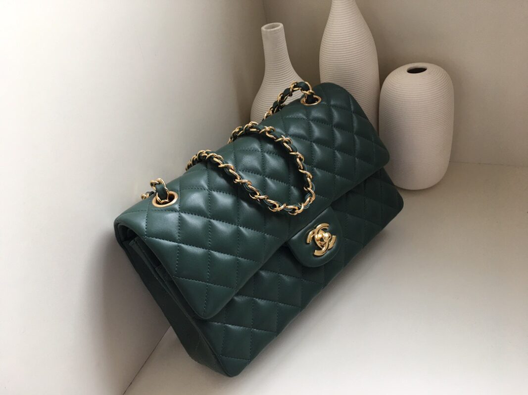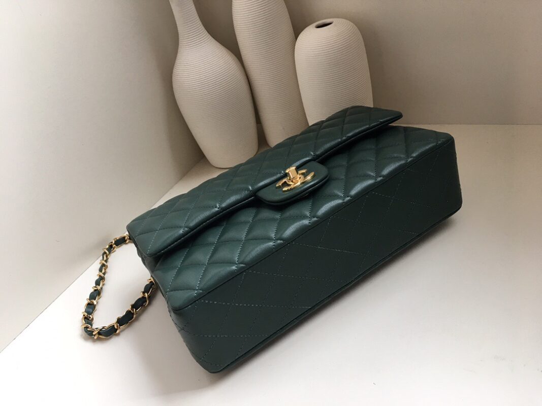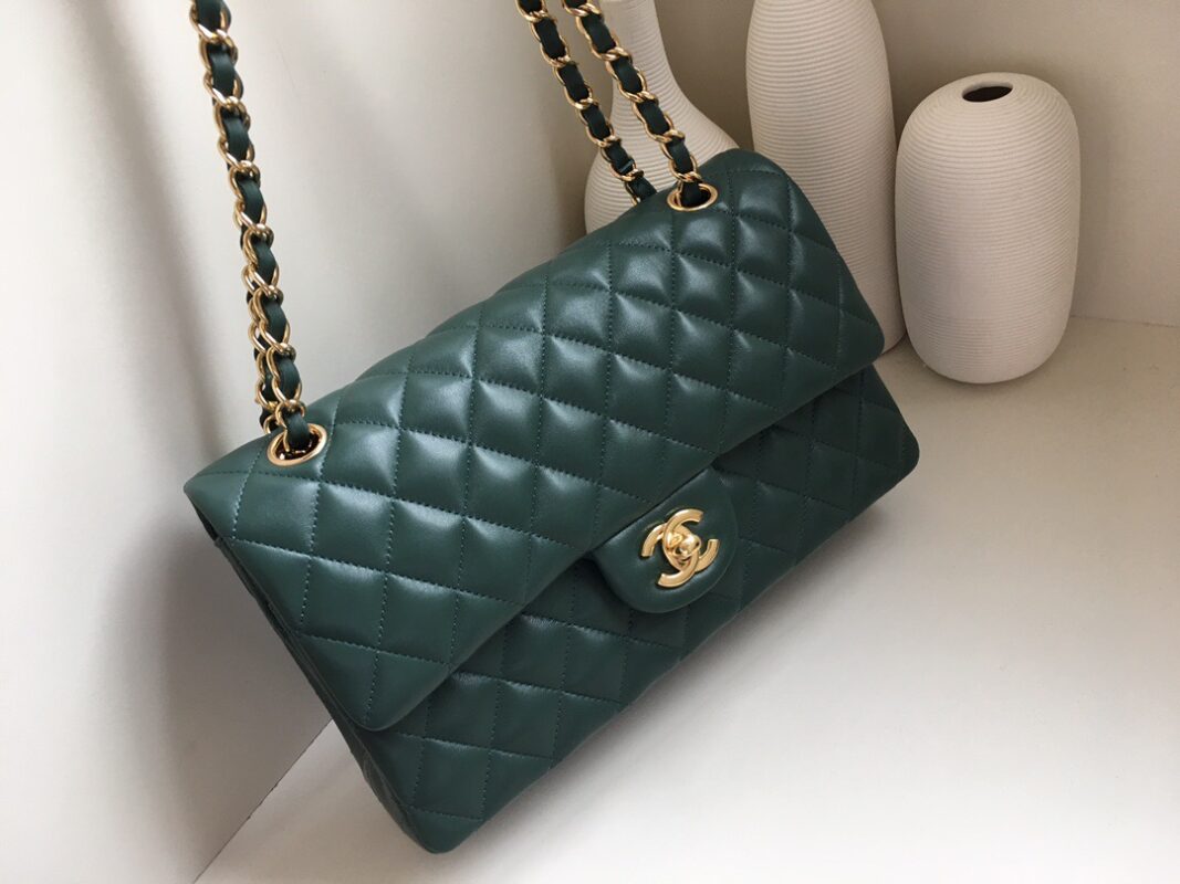 Chanel Flap Classic Lambskin. All copper hardware. Medium. Forest Green. Gold Buckle 25cm