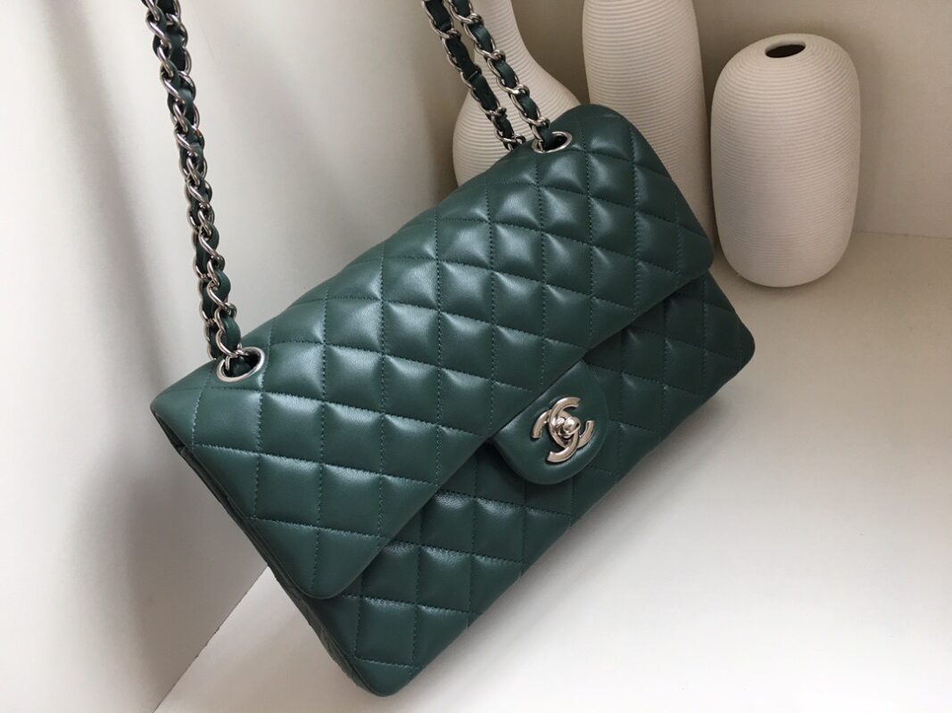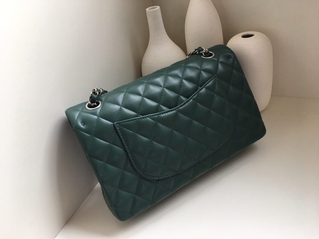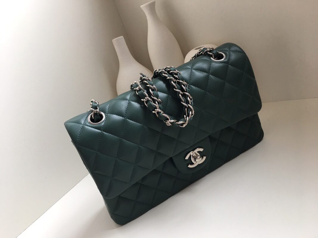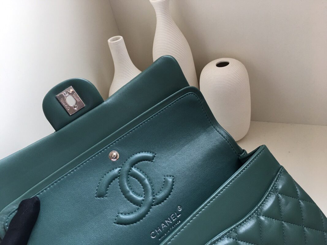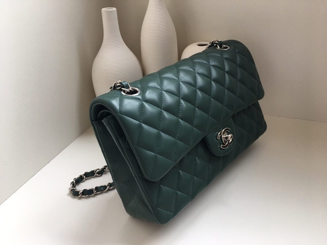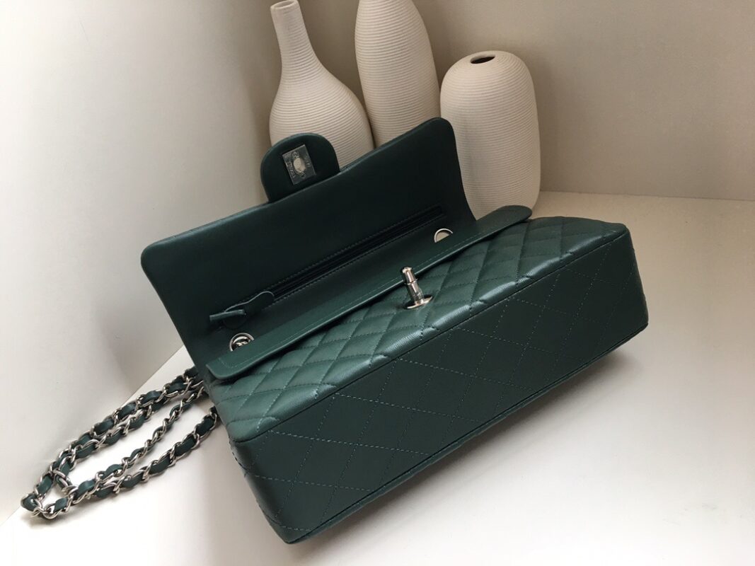 Chanel Flap Classic Lambskin. All copper hardware. Medium. Forest Green. Silver Buckle 25cm